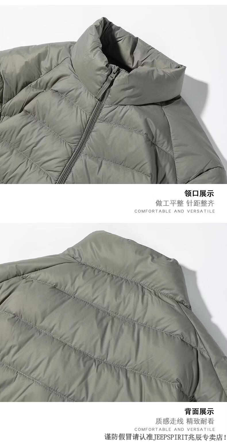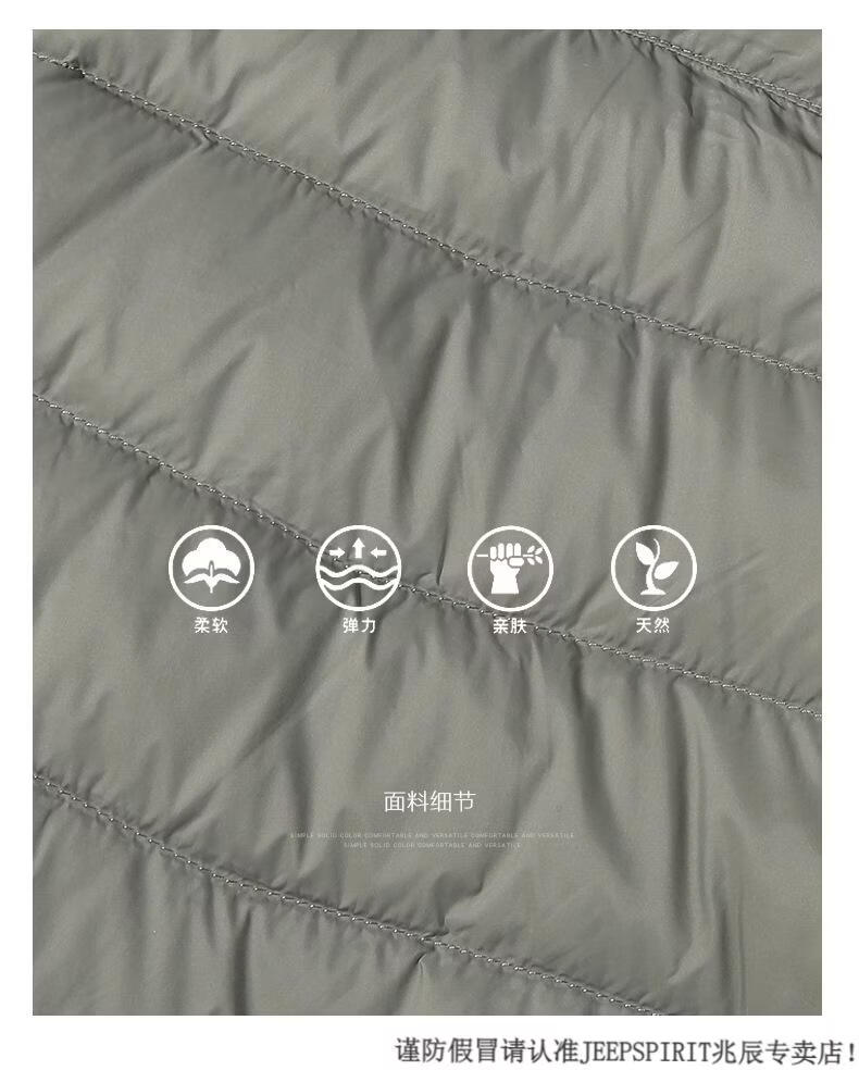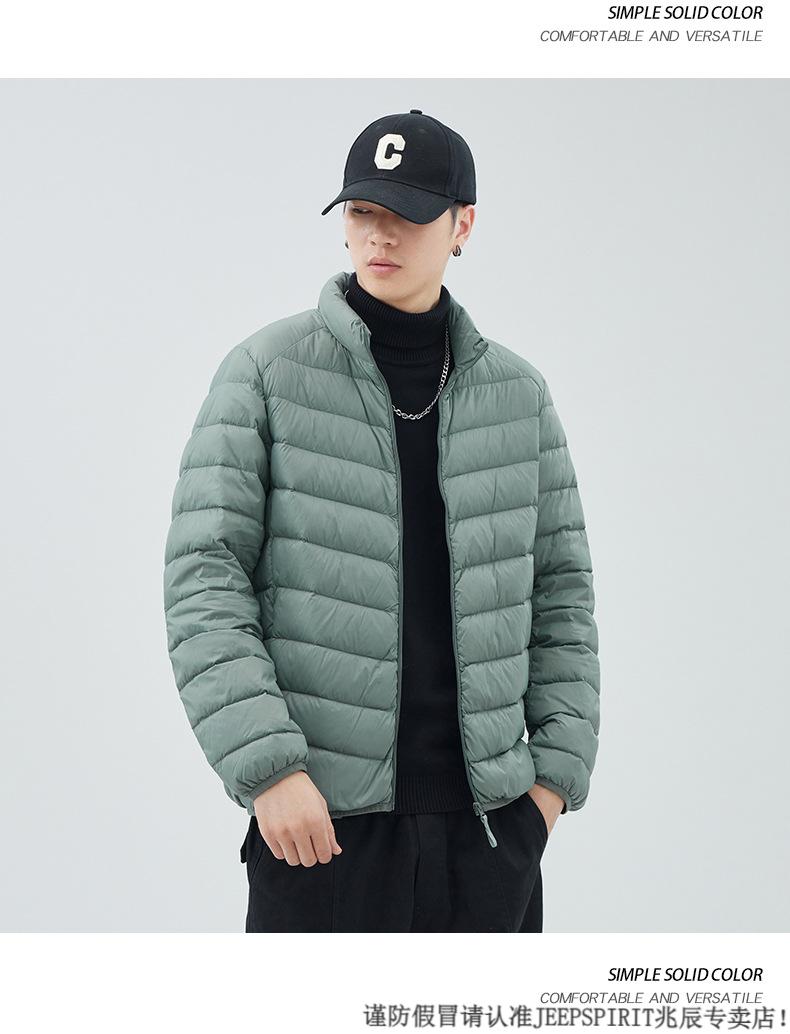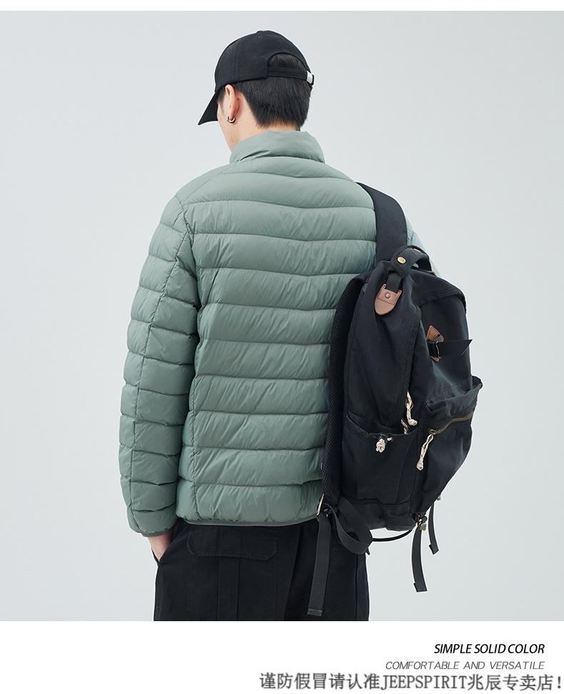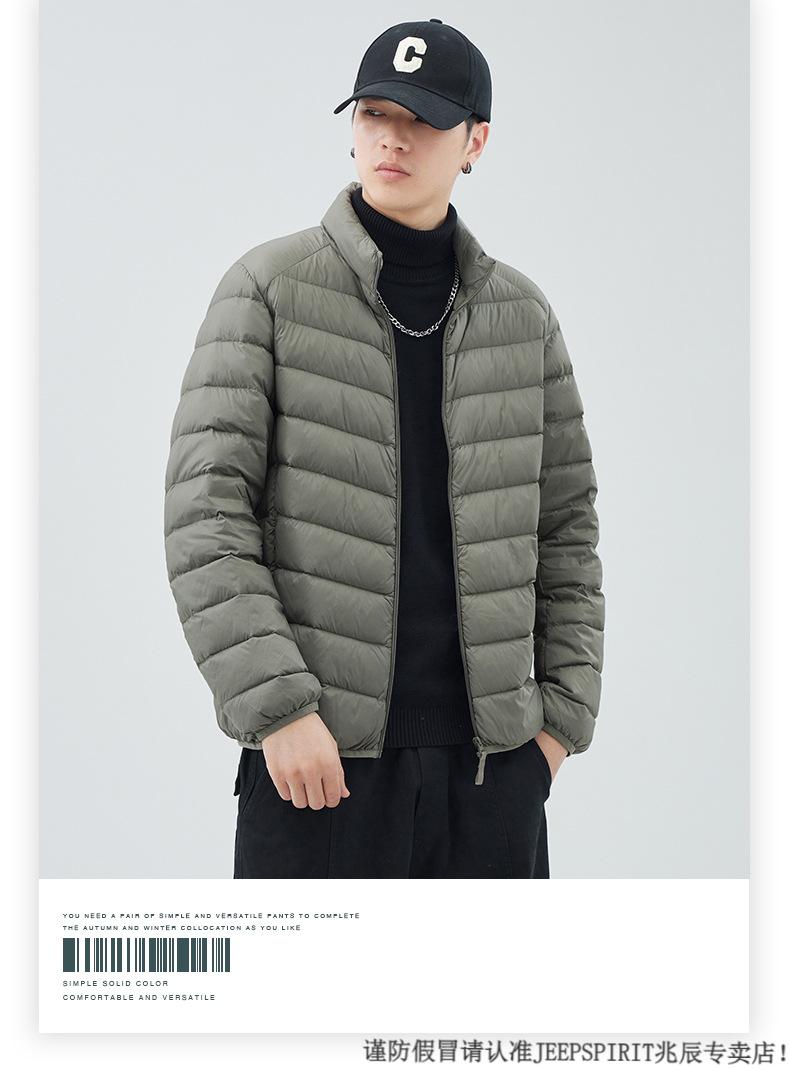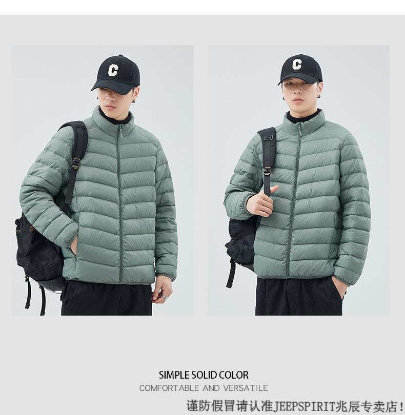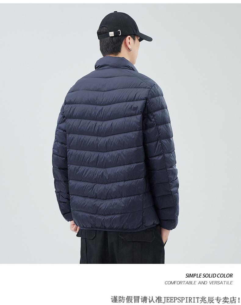 JEEP SPIRIT短款轻薄便携羽绒服男士2025冬季新款鸭绒立领保暖排骨内胆外套潮 黑色 M 适合90-110斤