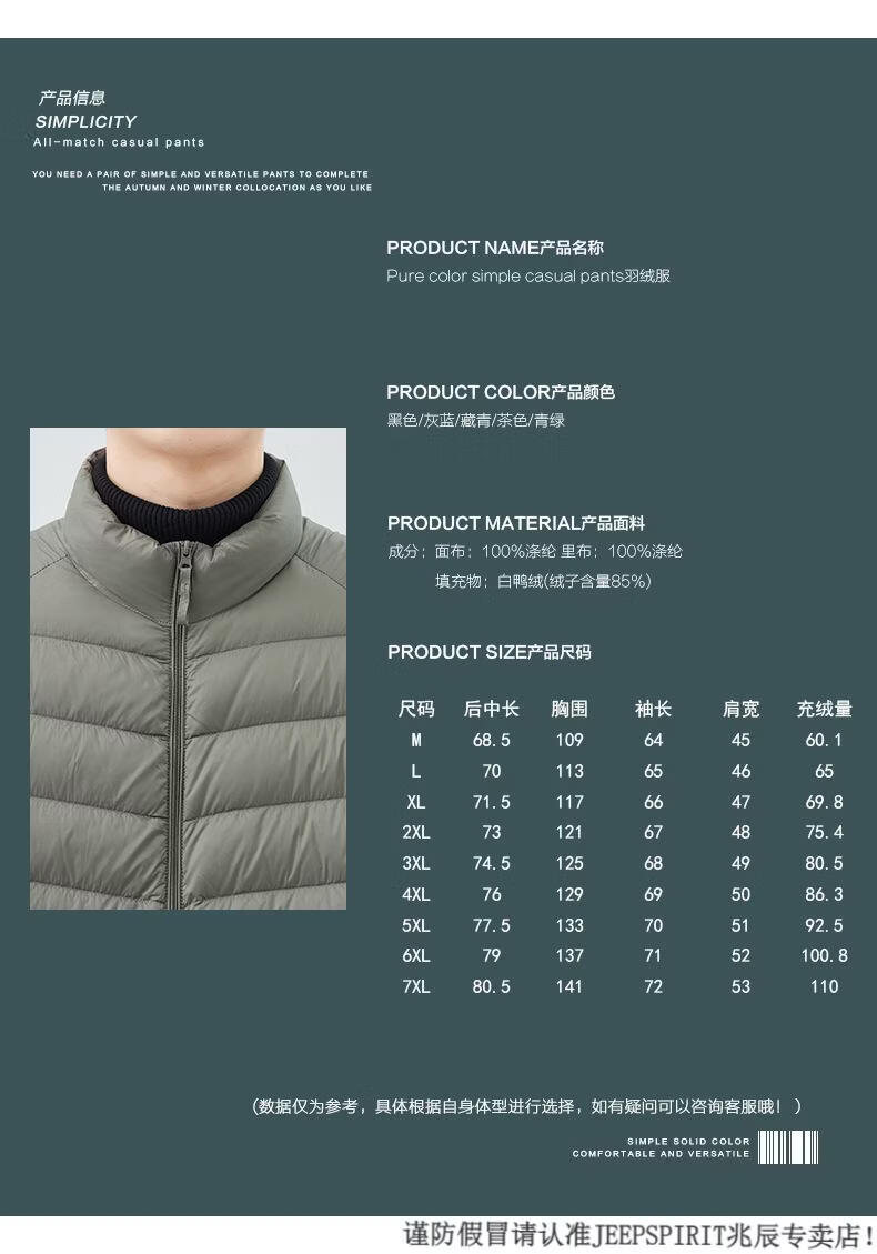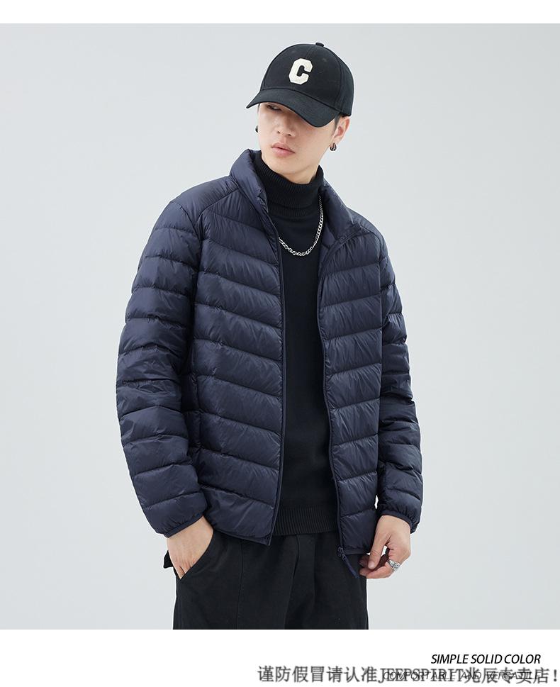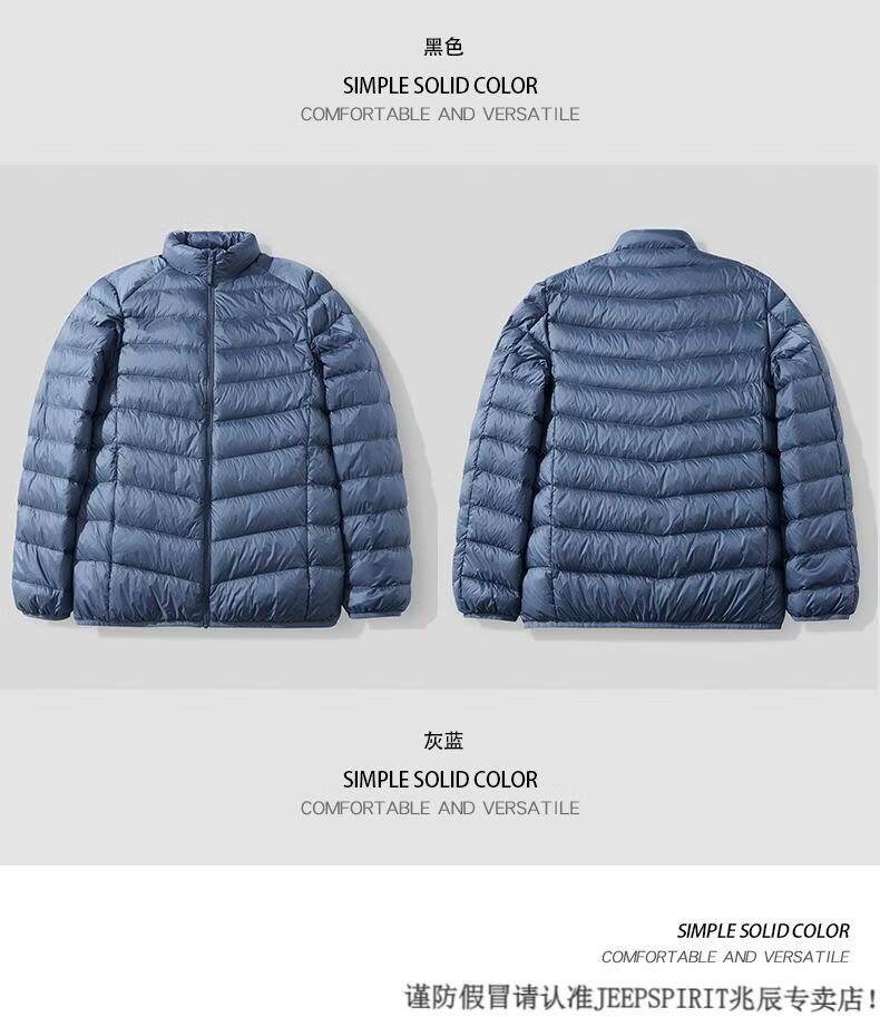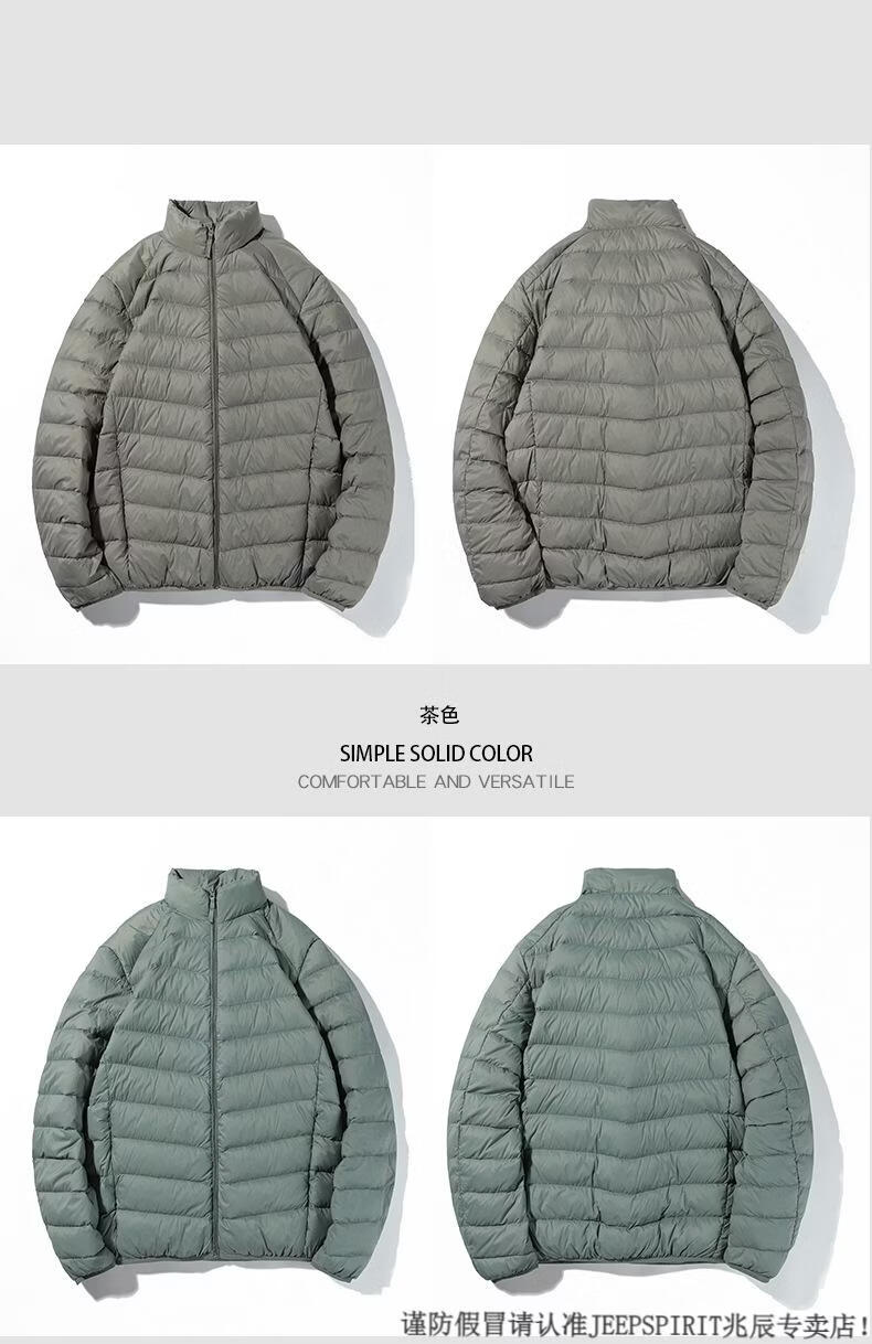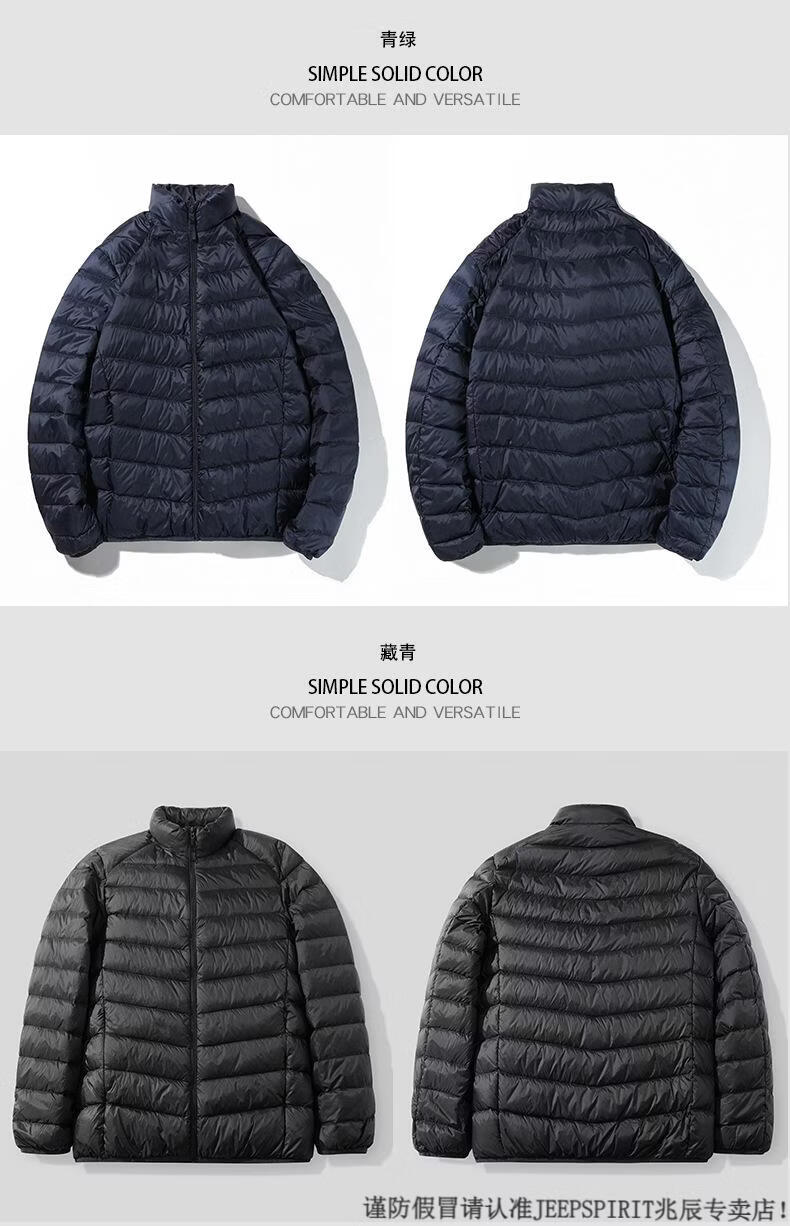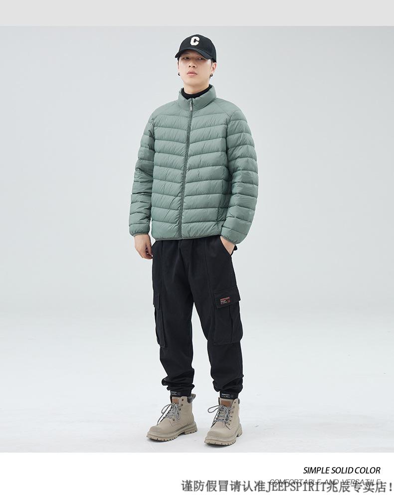 JEEP SPIRIT短款轻薄便携羽绒服男士2025冬季新款鸭绒立领保暖排骨内胆外套潮 黑色 M 适合90-110斤