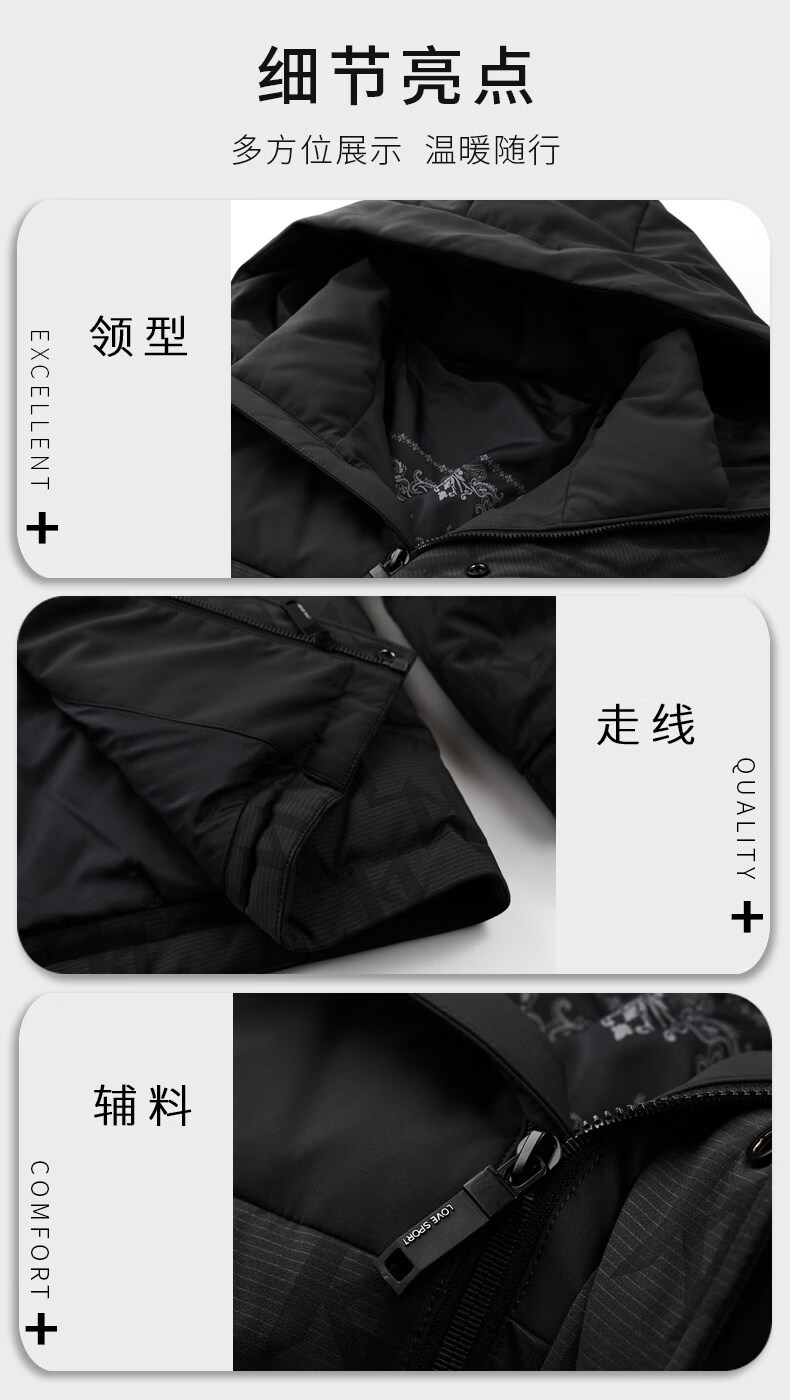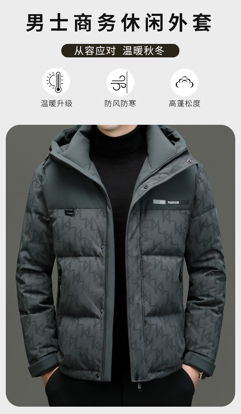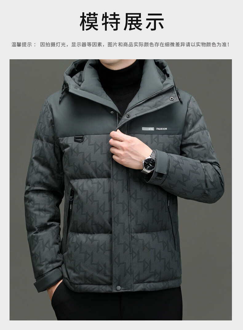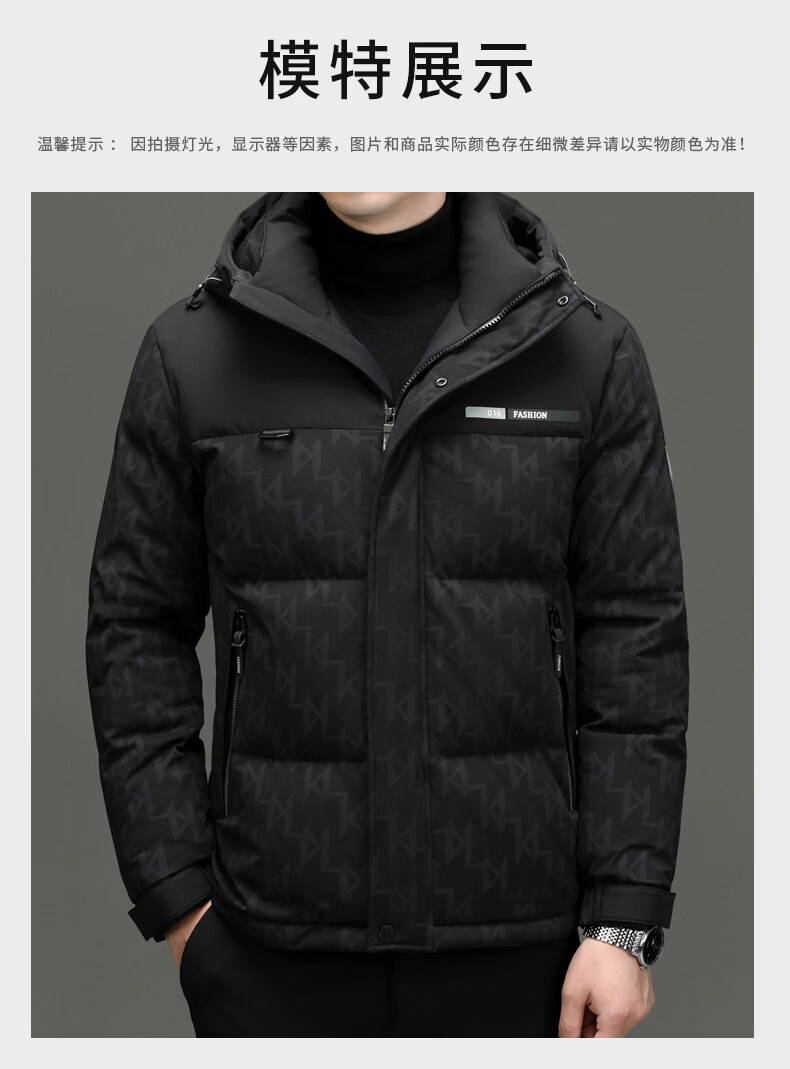 罗蒙(ROMON)【90白鸭绒】羽绒服男外套冬季加厚连帽男款2025新款男士 黑色 M 170/100-120斤