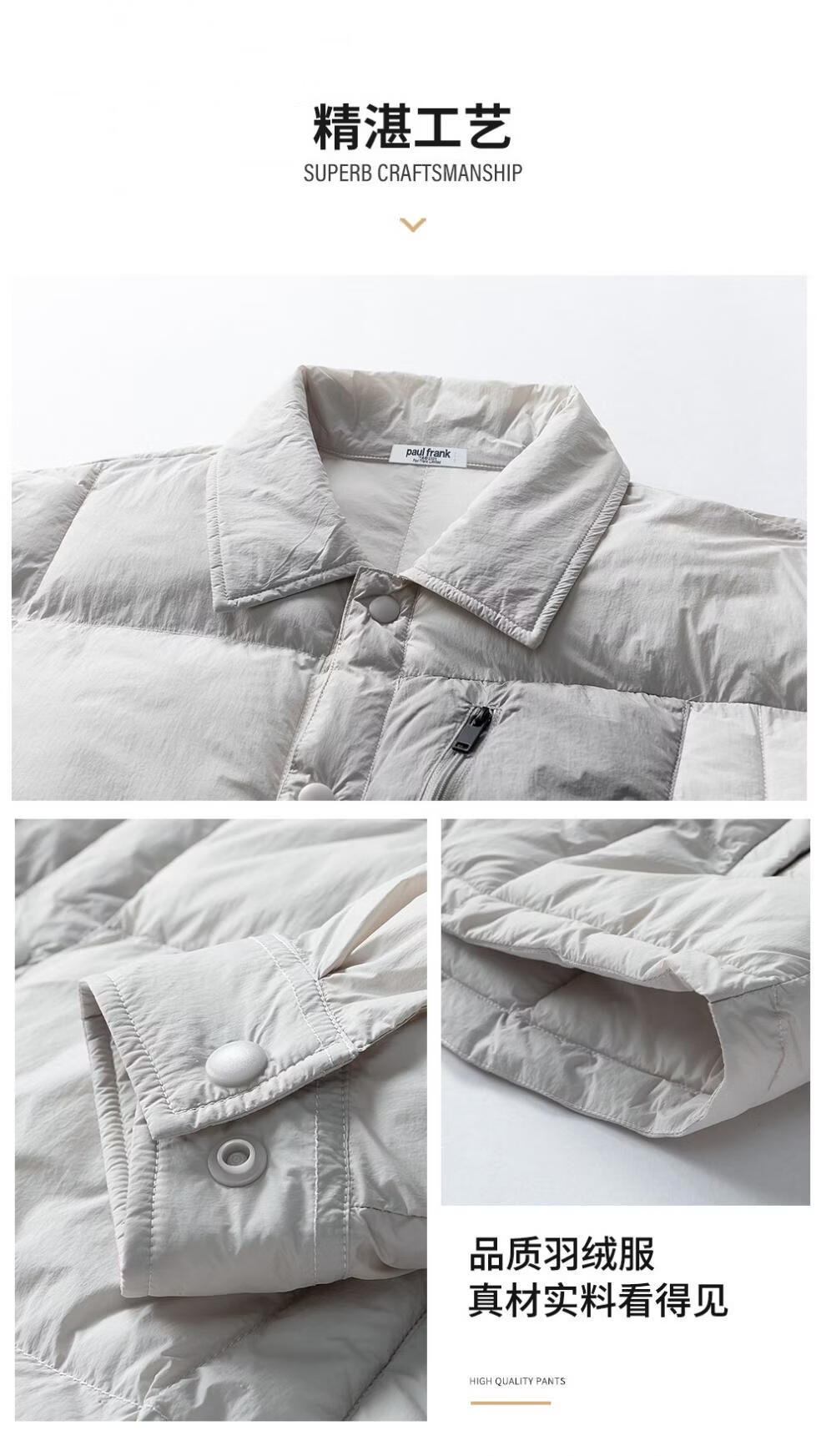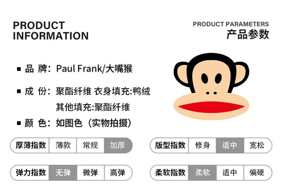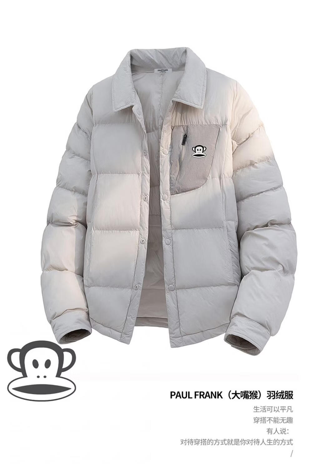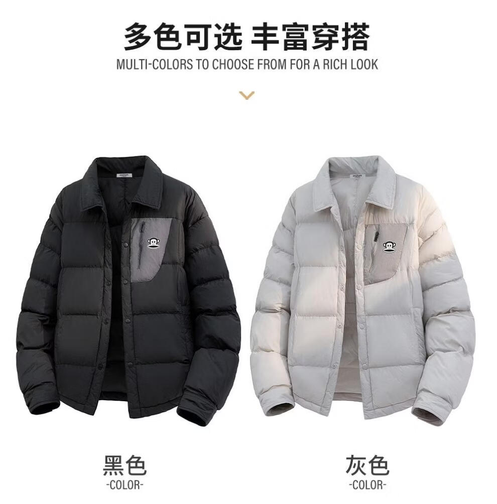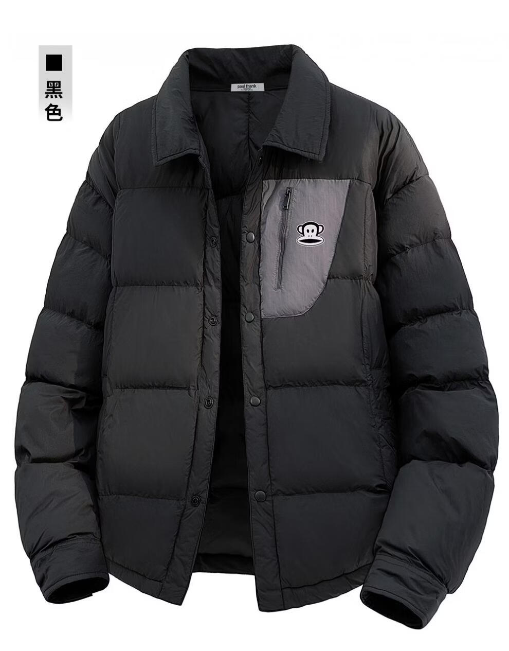 大嘴猴(paul frank)日系简约休闲羽绒服男士2026年春季新款宽松保暖防寒时尚百搭上衣 黑色 【90%白鸭绒】 M 【建议90-125斤】