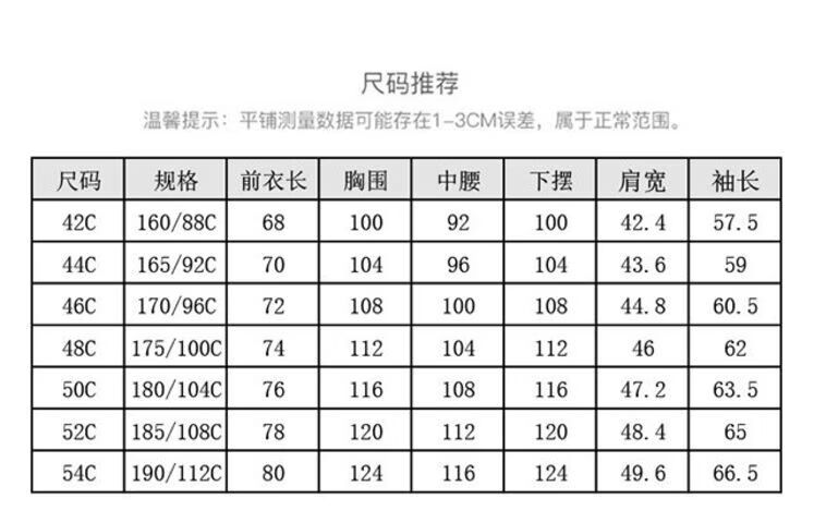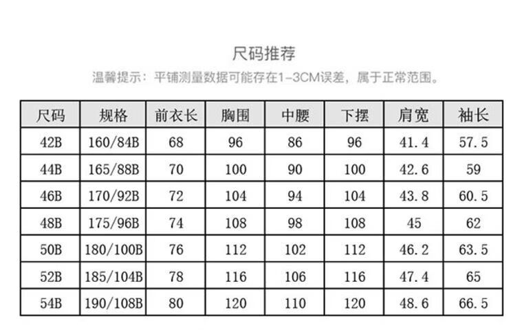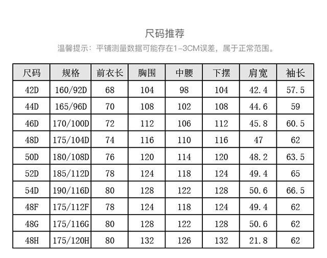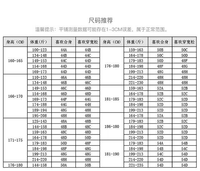 China (cm) 160-165/84-86 165-170 / 88-90 167-172 / 92-96 168-173 / 98-102 170-176 / 106-110