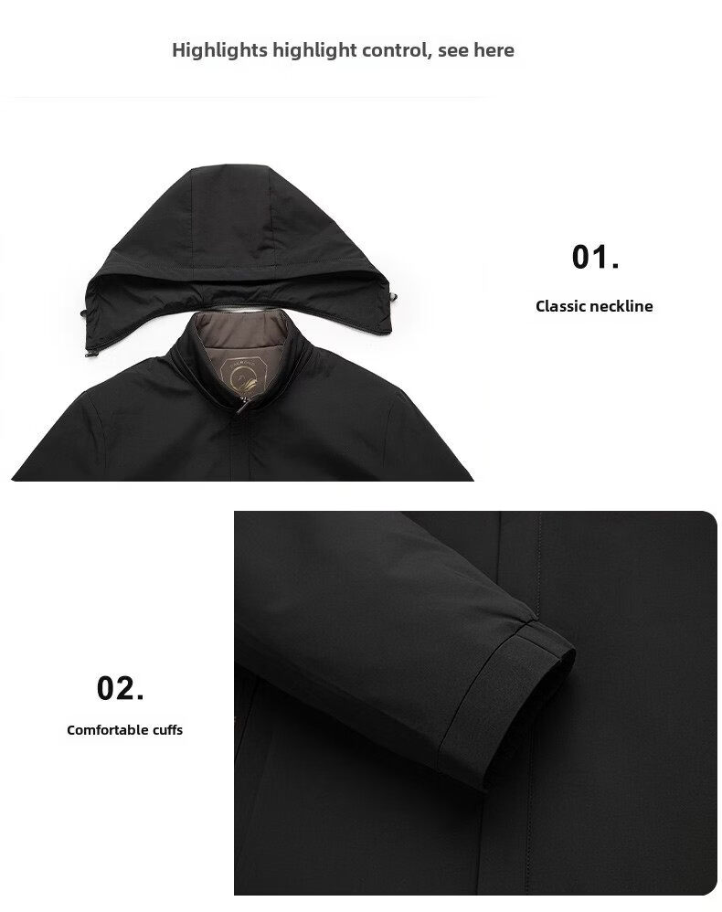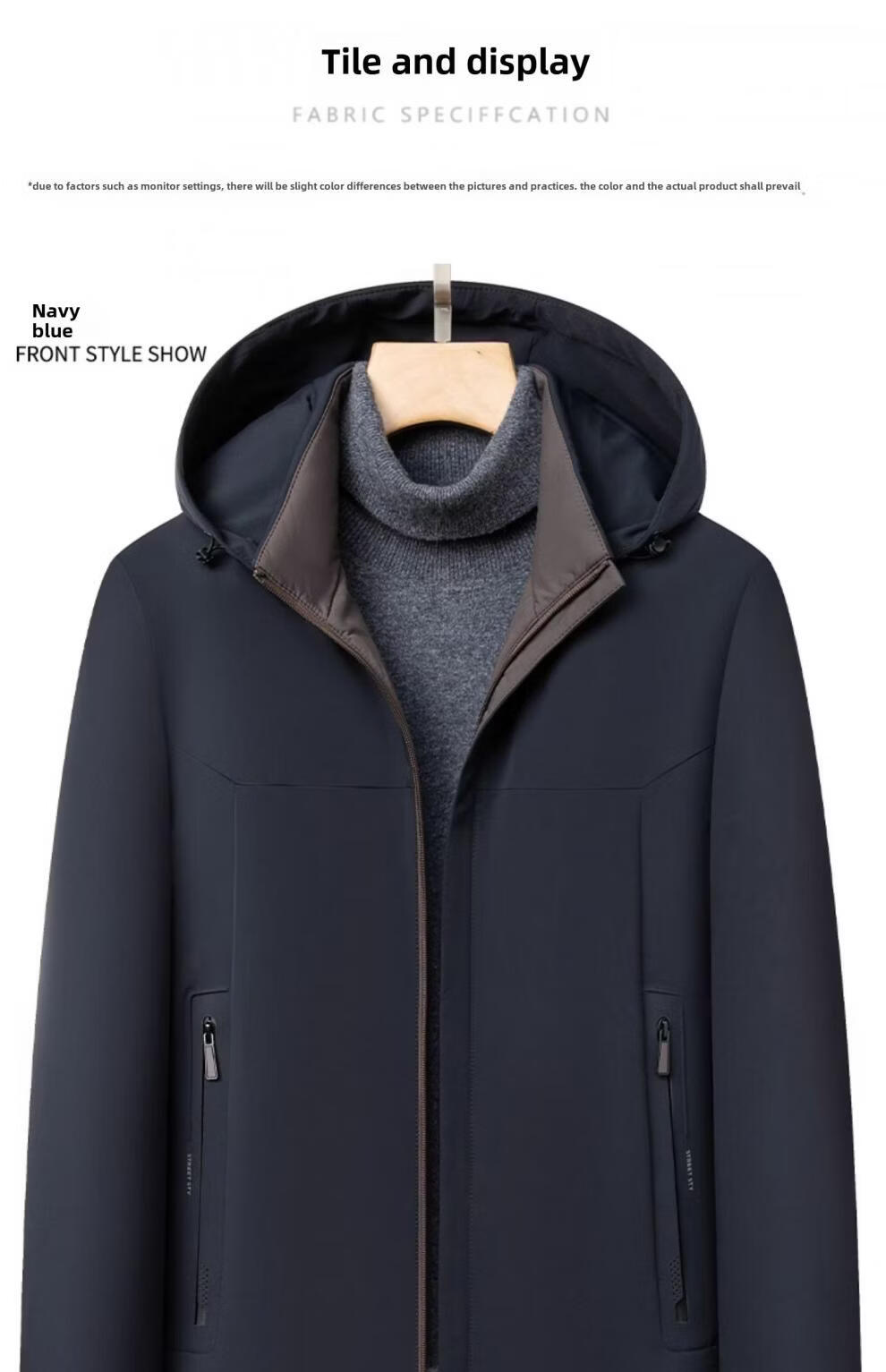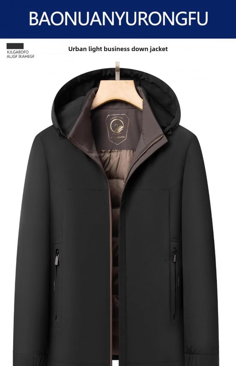KBXNG Jinba высококачественный деловой легкий пуховик мужской зимний новый стиль мужская теплая и удобная зимняя куртка среднего возраста с капюшоном темно-синего цвета M 170