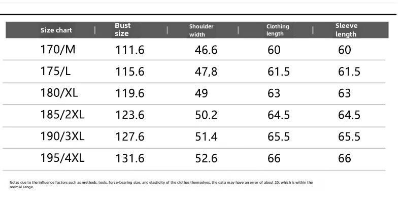 China (cm) 165 / 88-90 170 / 96-98 175 / 108-110 180 / 118-122 185 / 126-130
