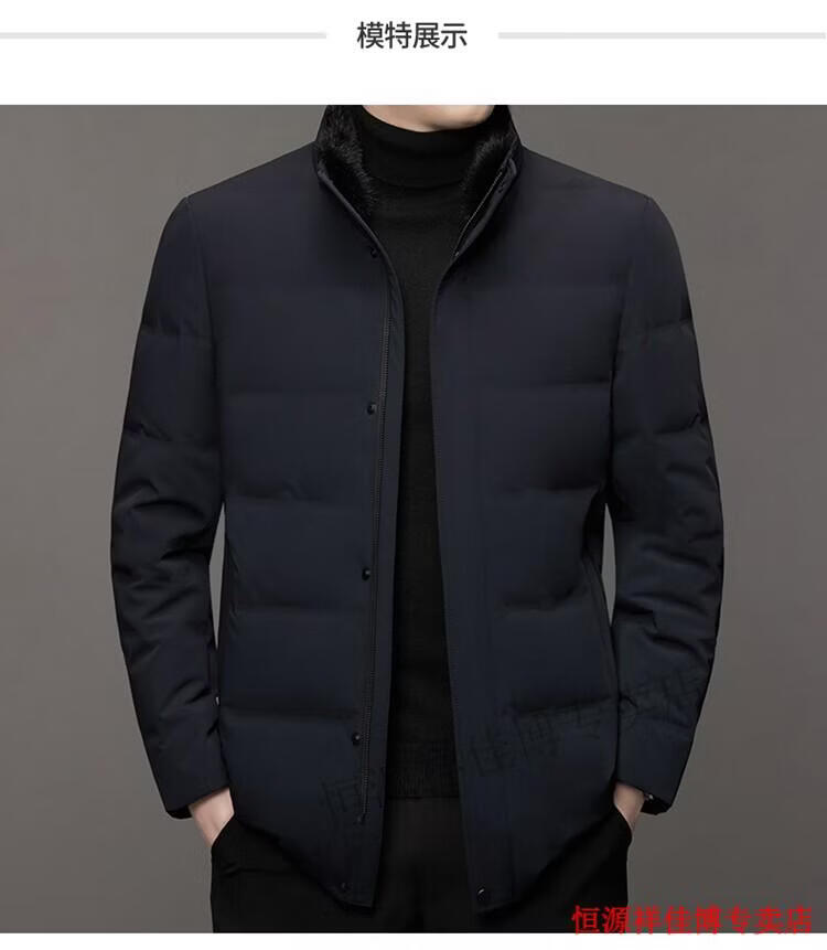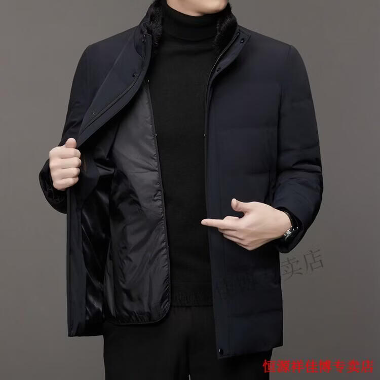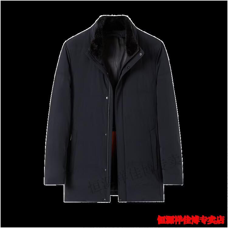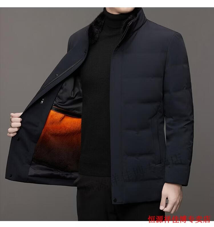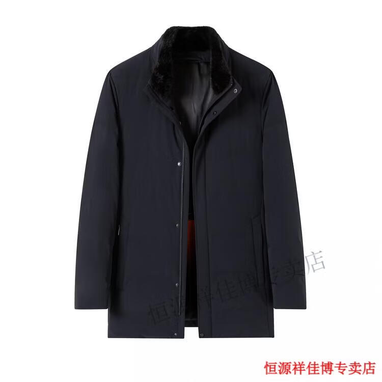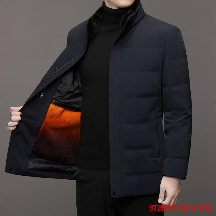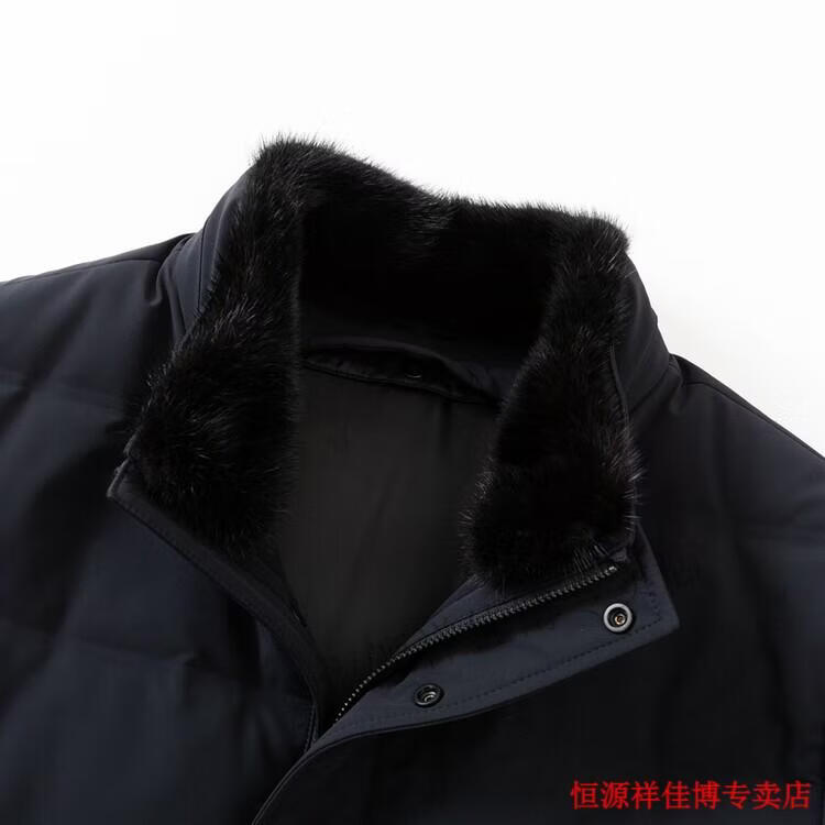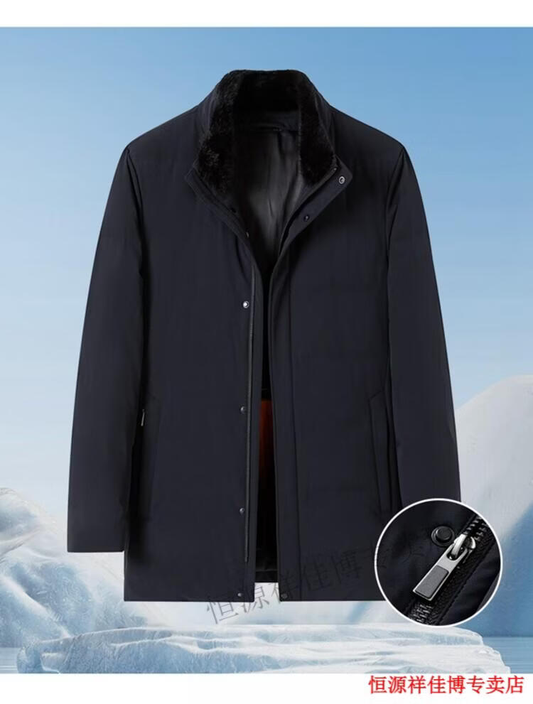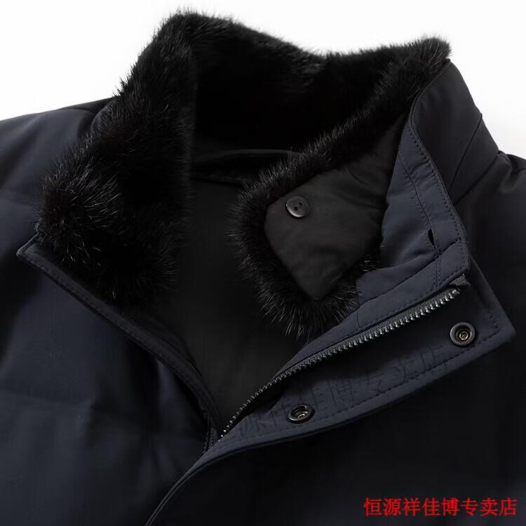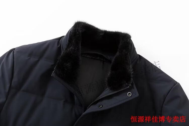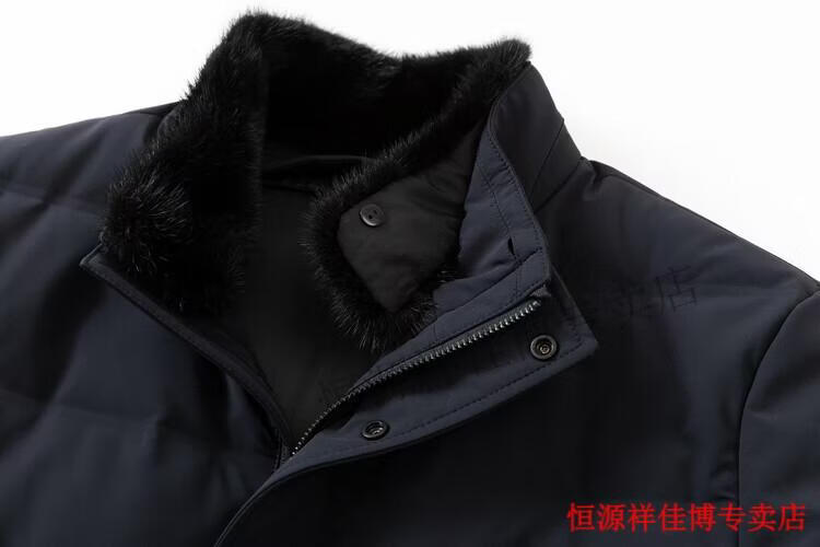 恒源祥中长款水貂毛立领羽绒服男高端加厚保暖鹅绒外套爸爸装派克服 图片色 M 170