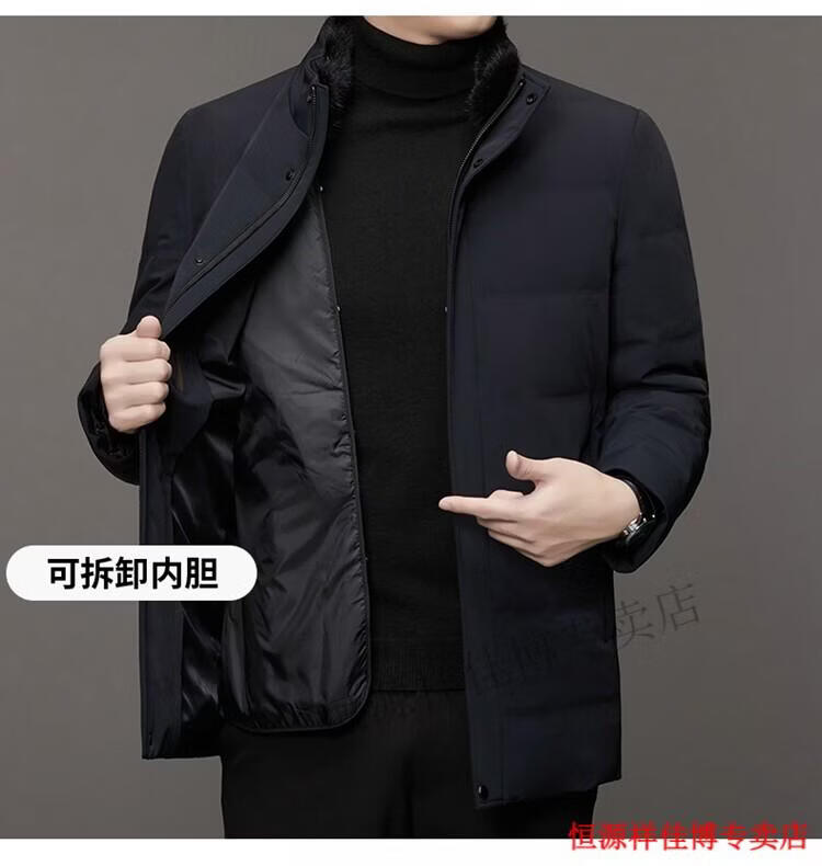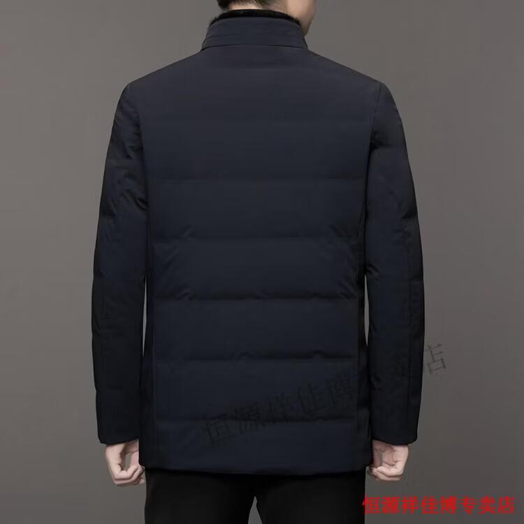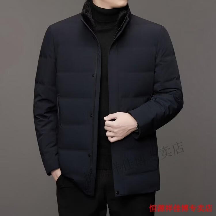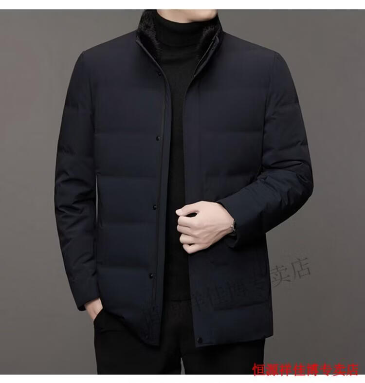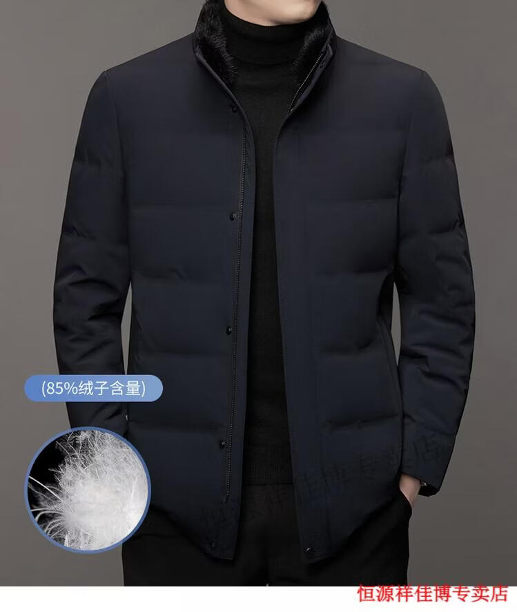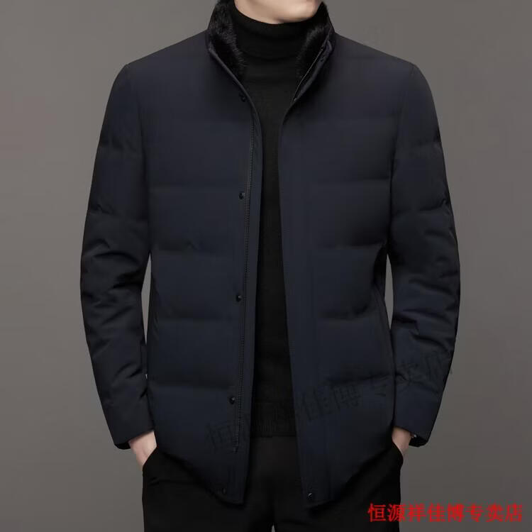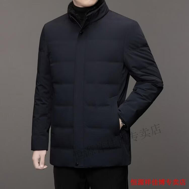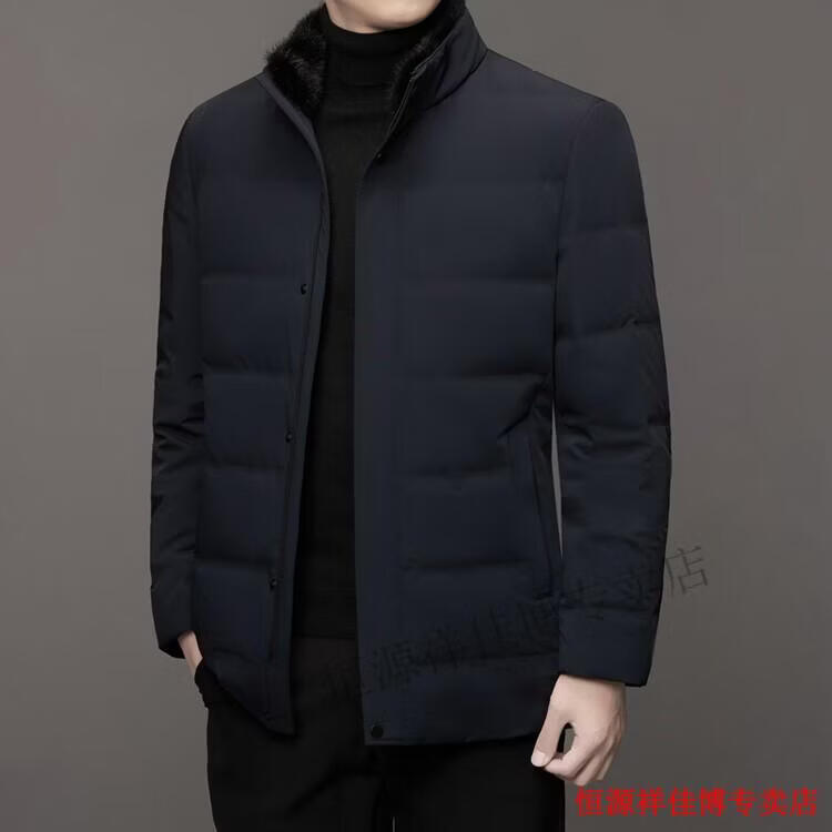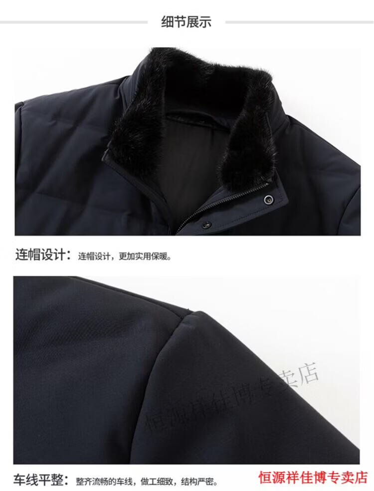 恒源祥中长款水貂毛立领羽绒服男高端加厚保暖鹅绒外套爸爸装派克服 图片色 M 170