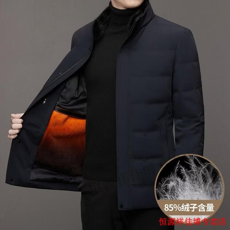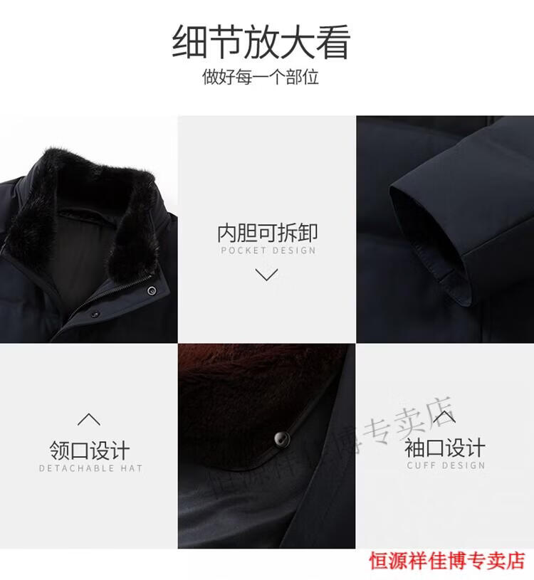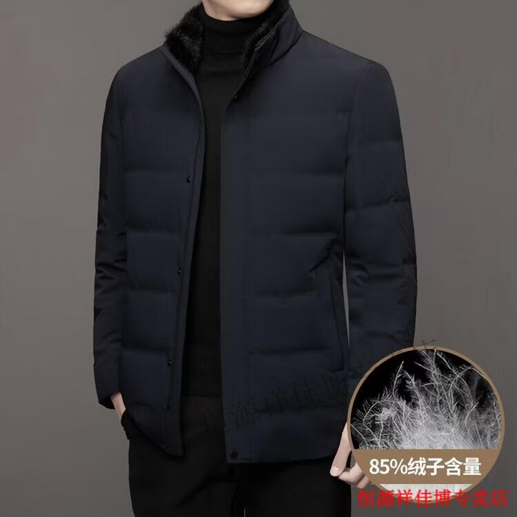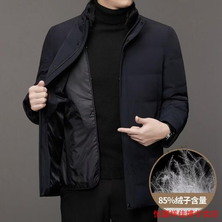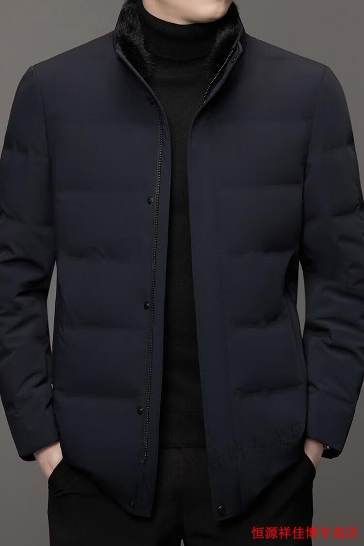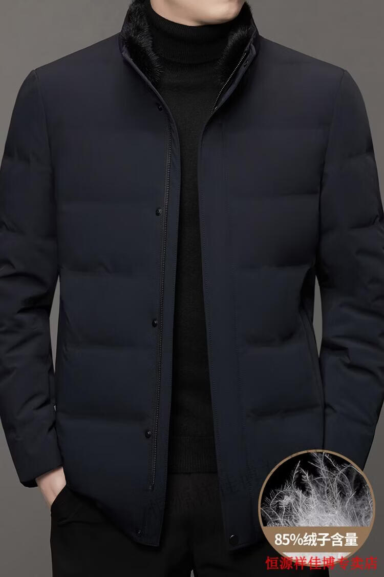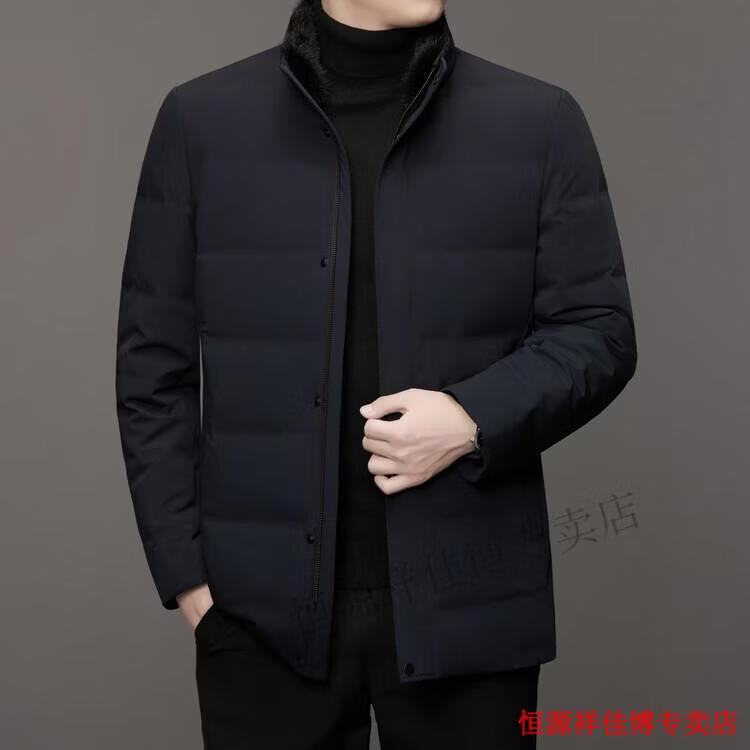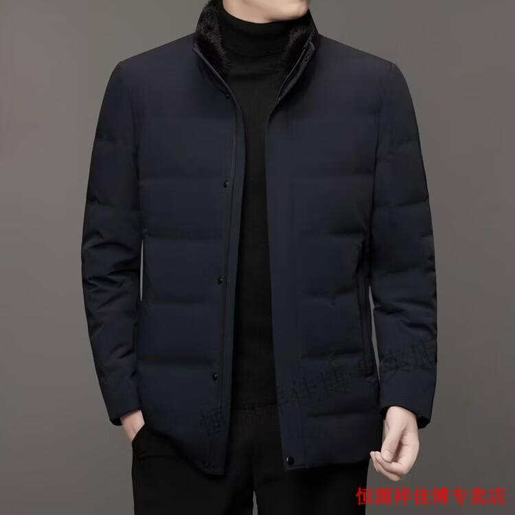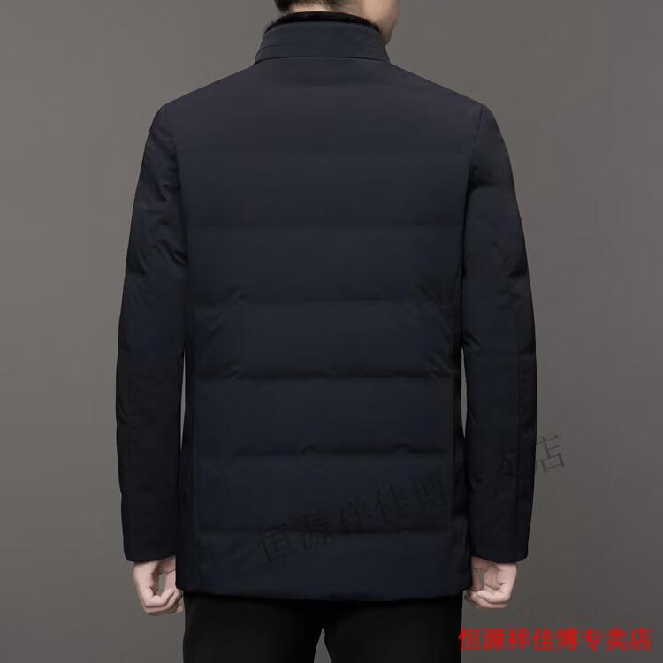恒源祥中长款水貂毛立领羽绒服男高端加厚保暖鹅绒外套爸爸装派克服 图片色 M 170