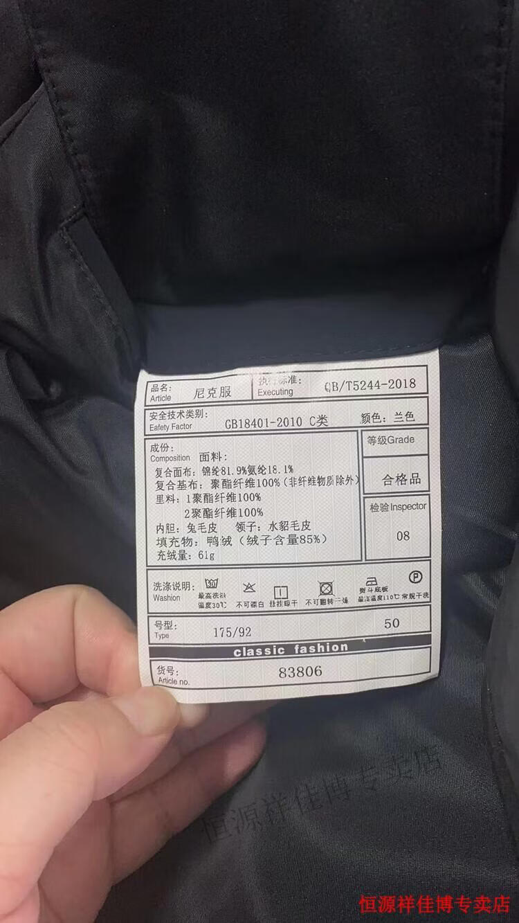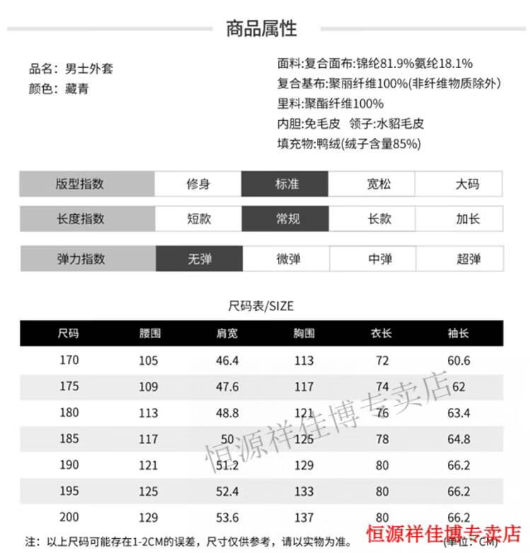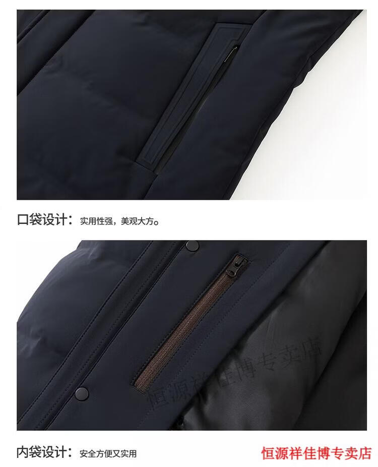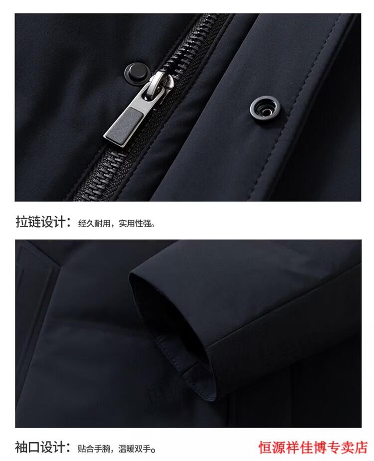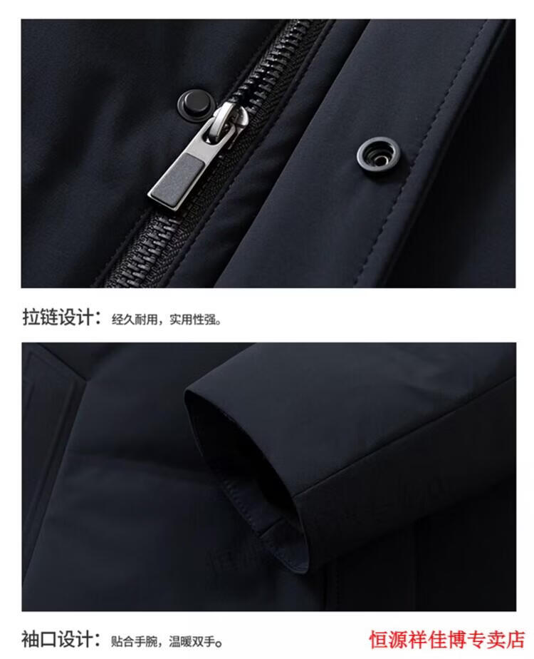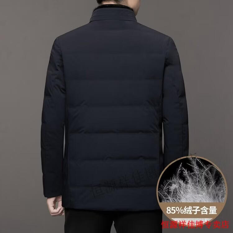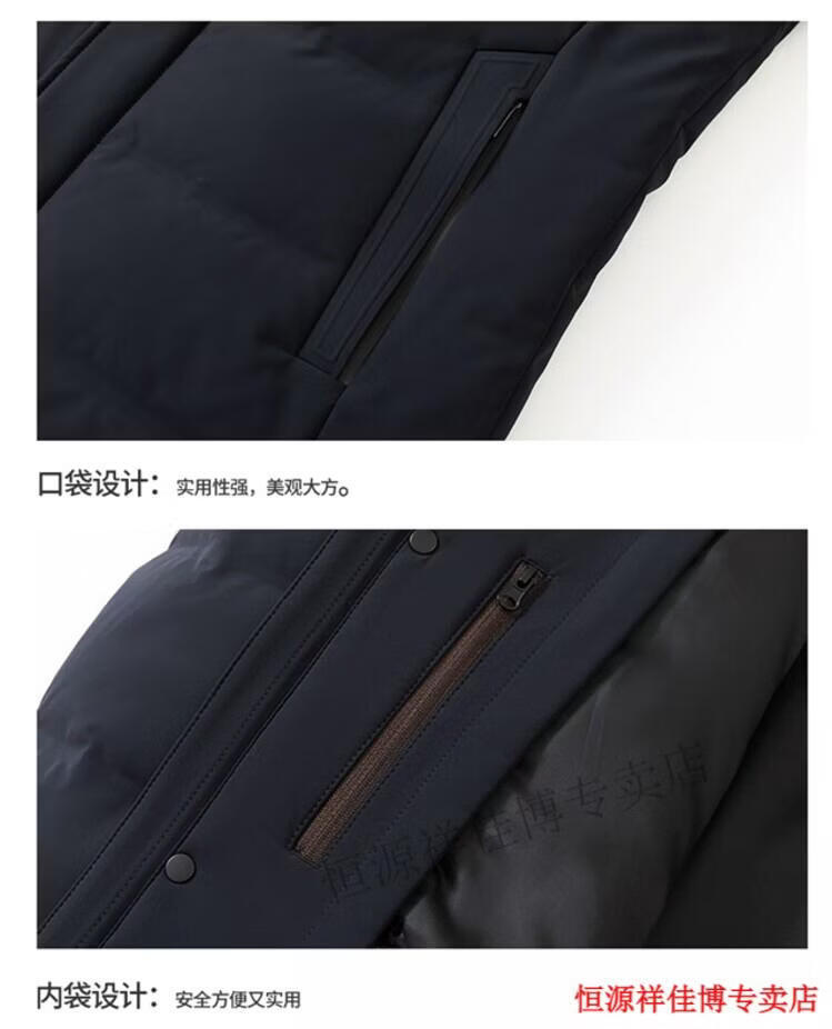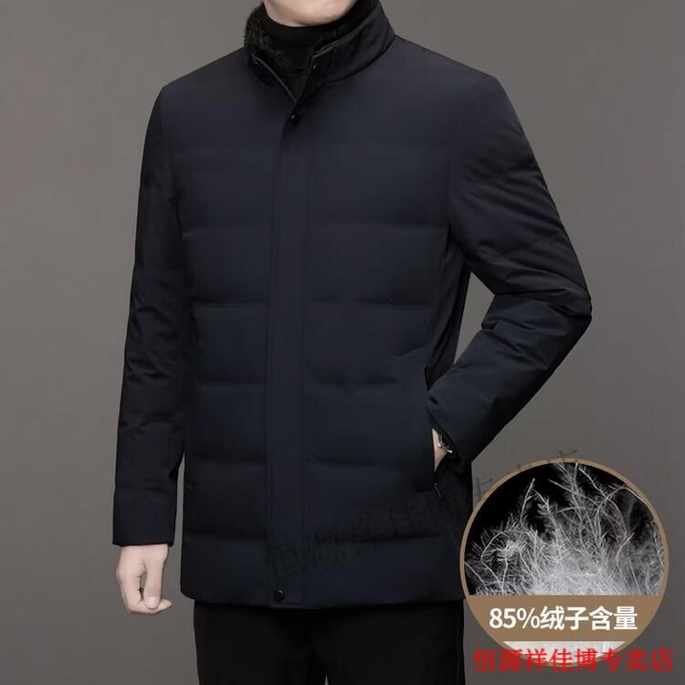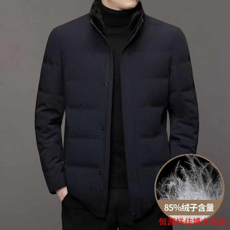 恒源祥中长款水貂毛立领羽绒服男高端加厚保暖鹅绒外套爸爸装派克服 图片色 M 170