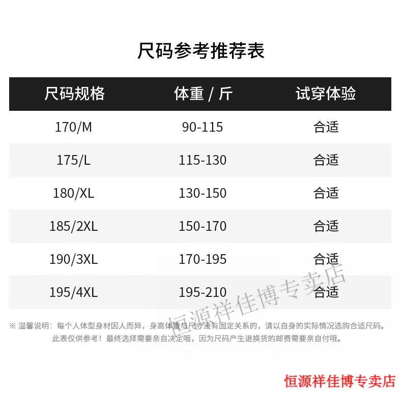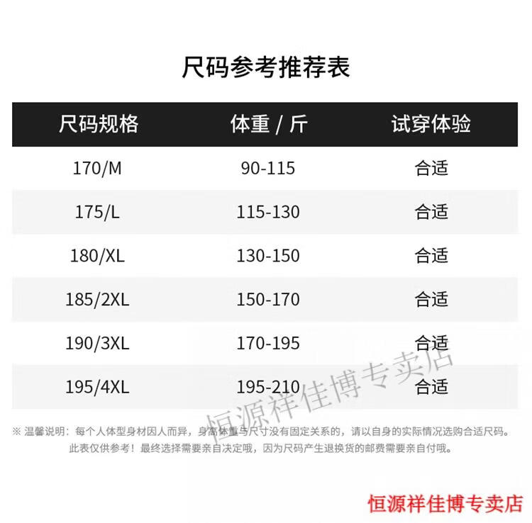 China (cm) 165 / 88-90 170 / 96-98 175 / 108-110 180 / 118-122 185 / 126-130