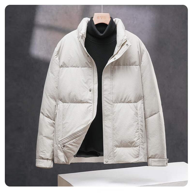 Yalu 2025 New Down Jacket Short Warm Stand-up Collar 90 Duck Down Loose and Comfortable Coldproof Autumn and Winter Men's Daily Jacket Black L Recommended 130-145 Jin Jin equals 0.5 kg