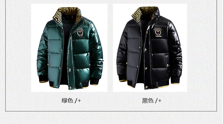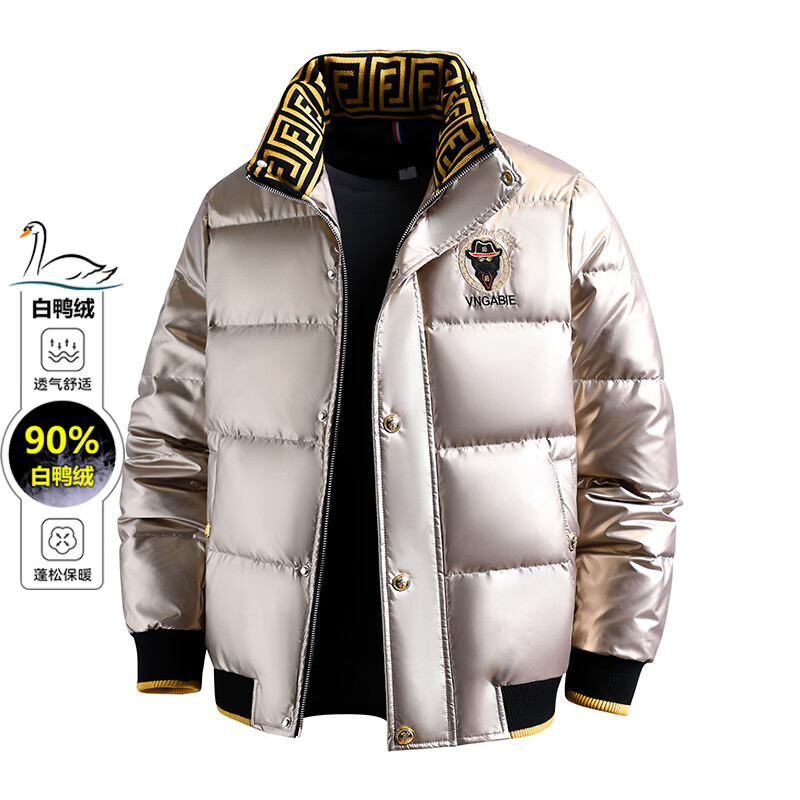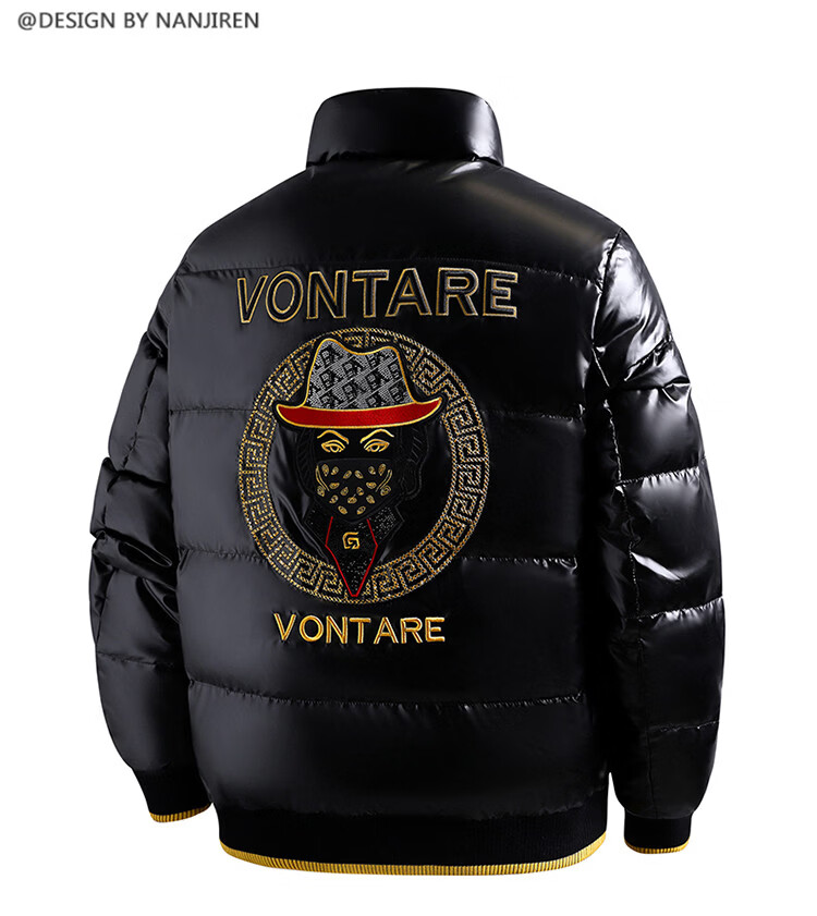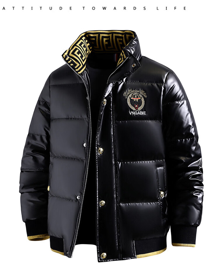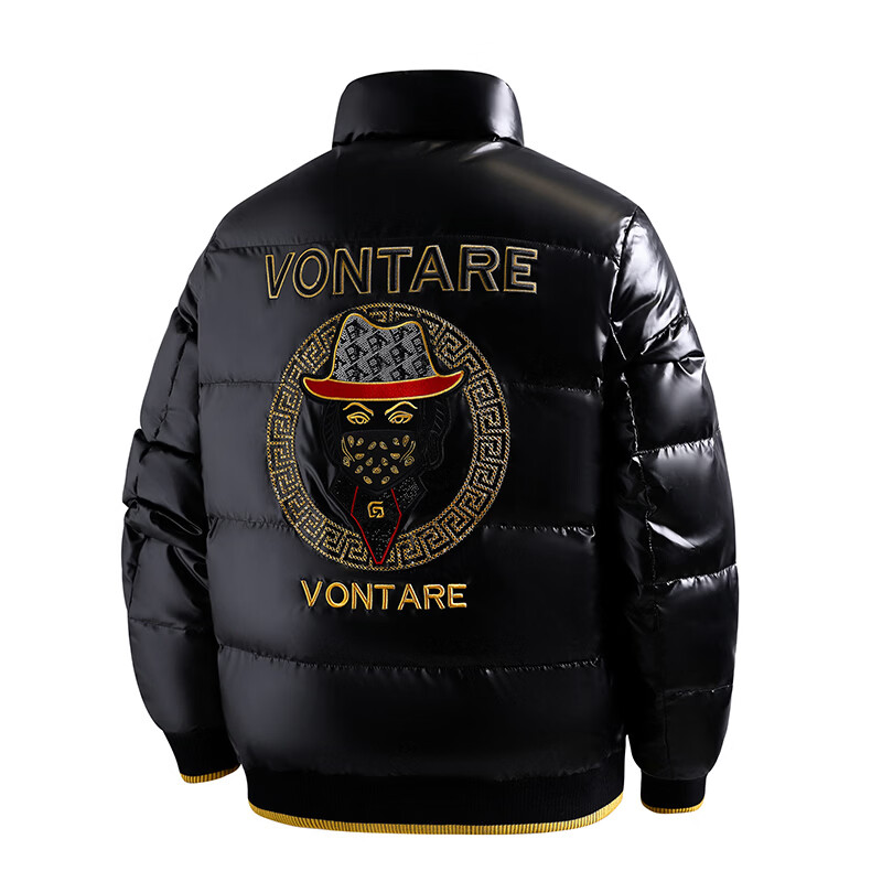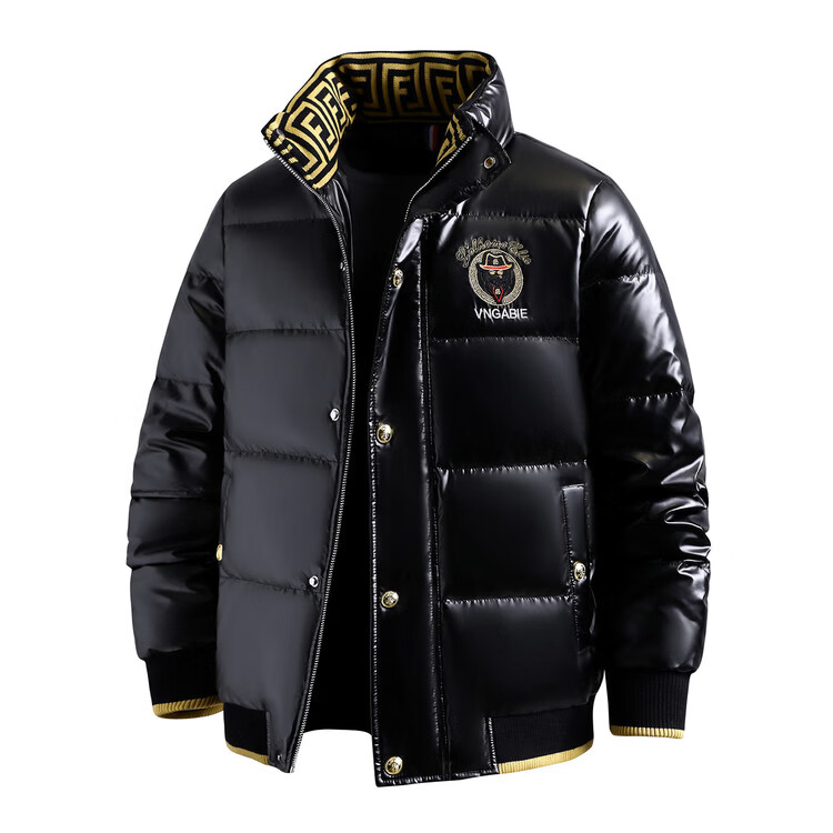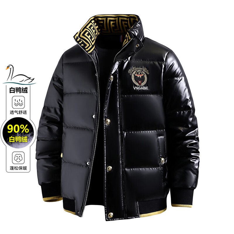 恒源祥欧洲ins潮流痞帅个性羽绒服男冬装重工刺绣立领高级感外套厚款 黑色 L
