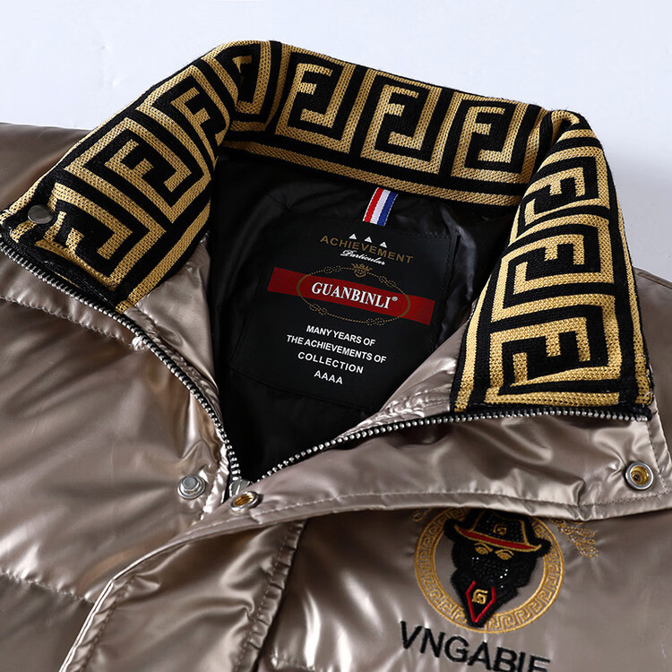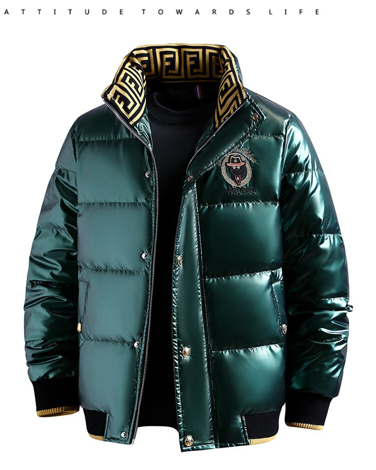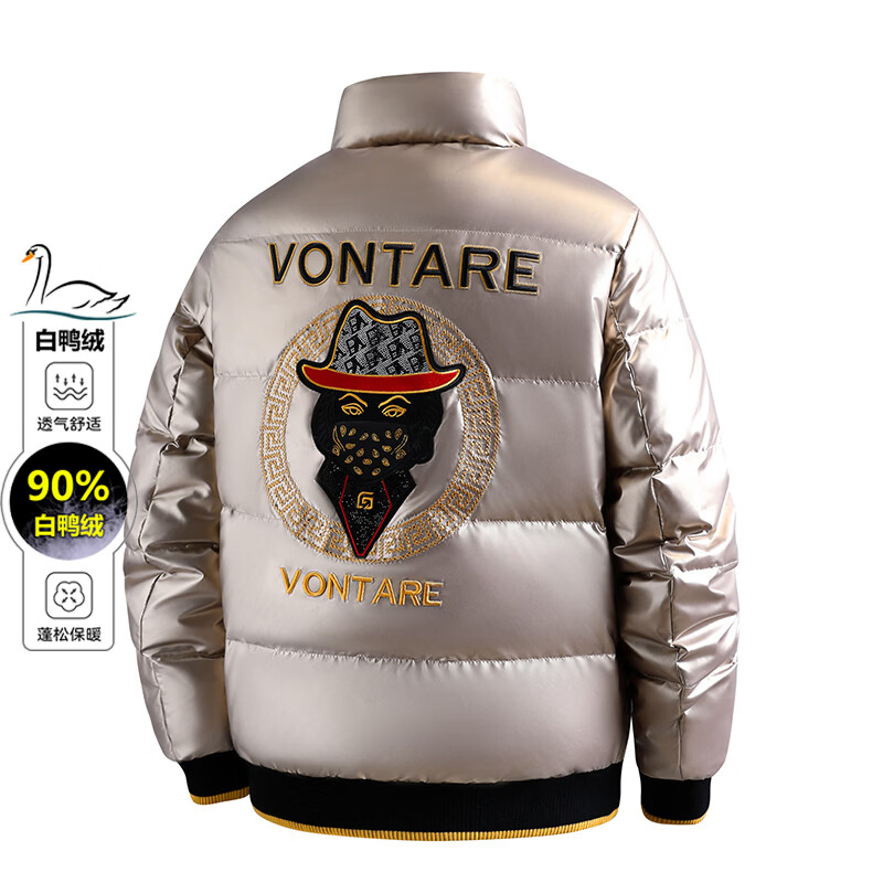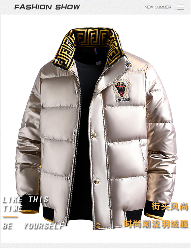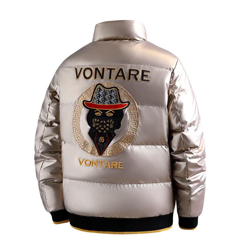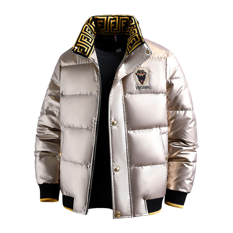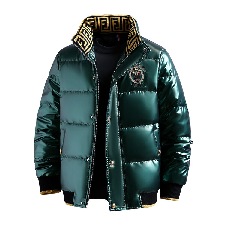 恒源祥欧洲ins潮流痞帅个性羽绒服男冬装重工刺绣立领高级感外套厚款 黑色 L