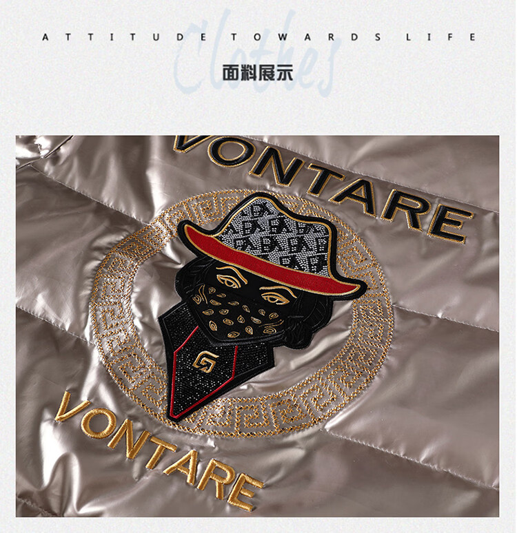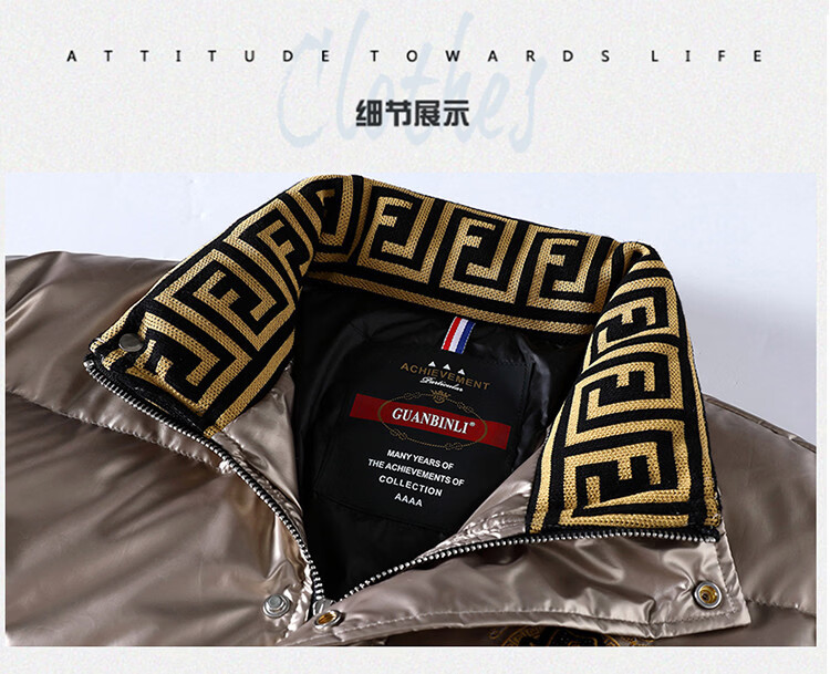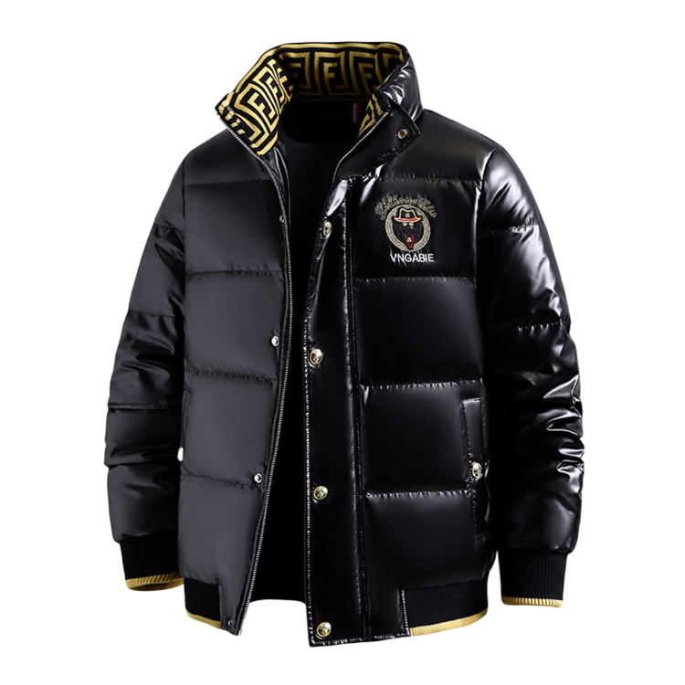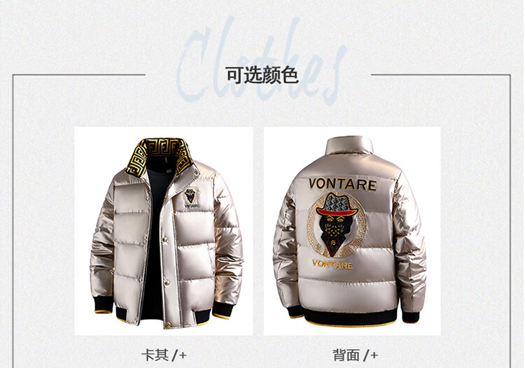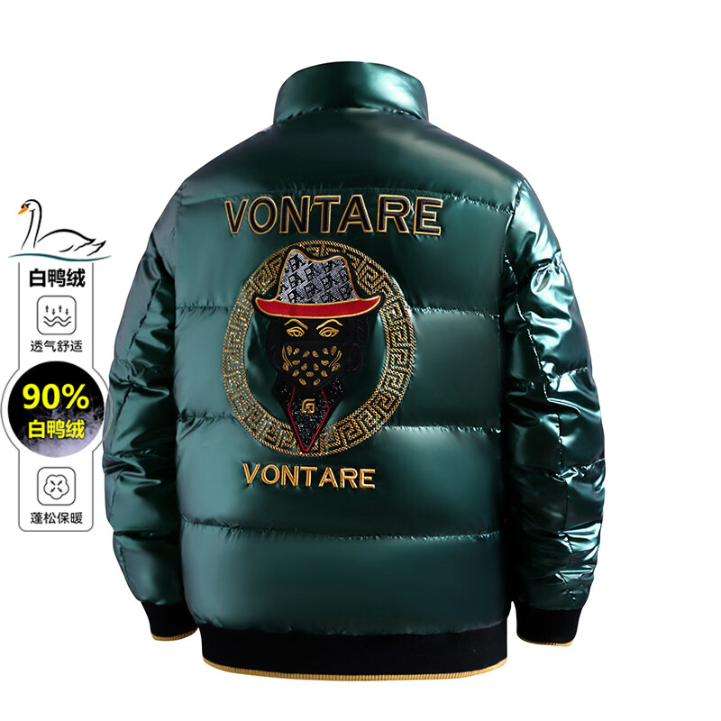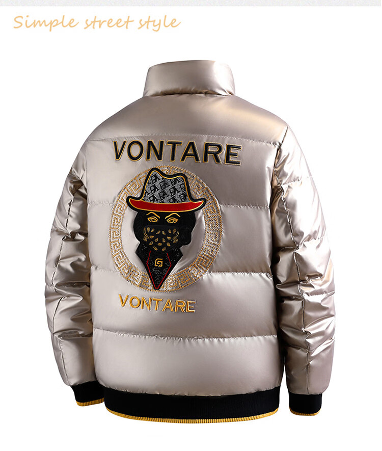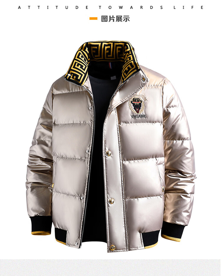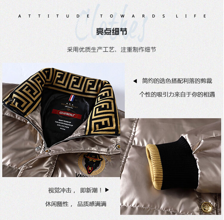 恒源祥欧洲ins潮流痞帅个性羽绒服男冬装重工刺绣立领高级感外套厚款 黑色 L
