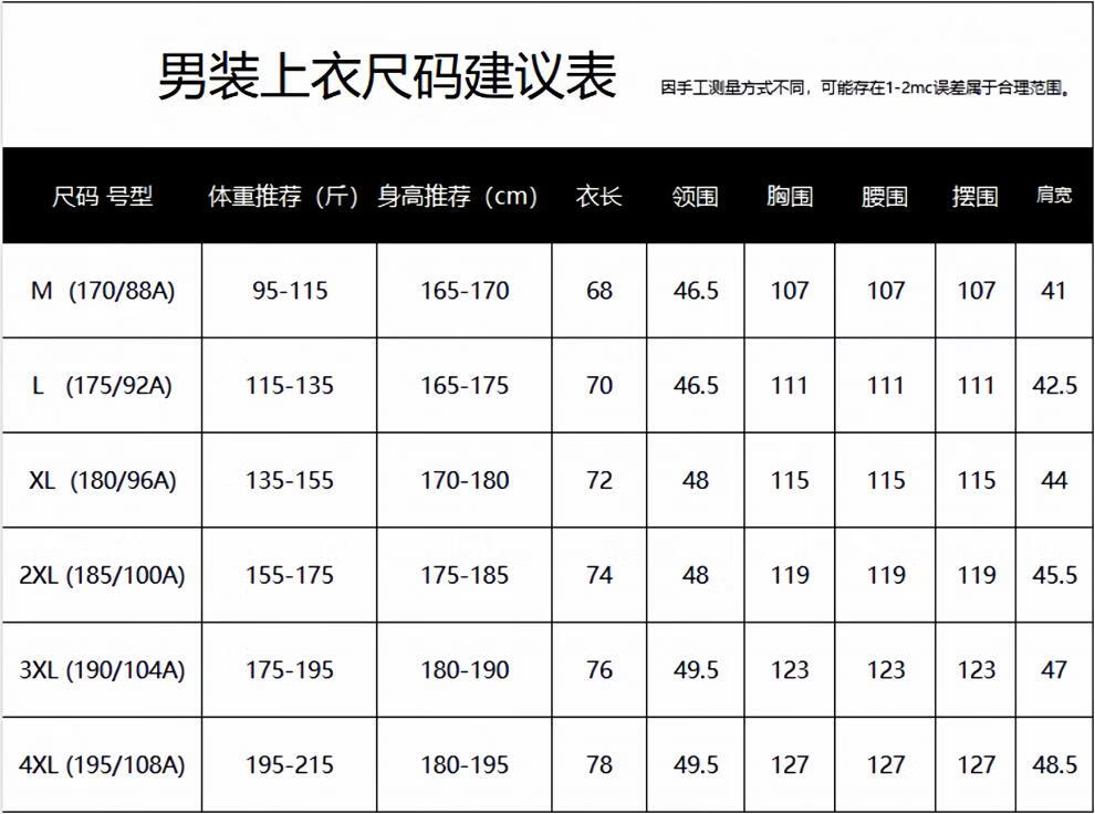 China (cm) 165 / 88-90 170 / 96-98 175 / 108-110 180 / 118-122 185 / 126-130