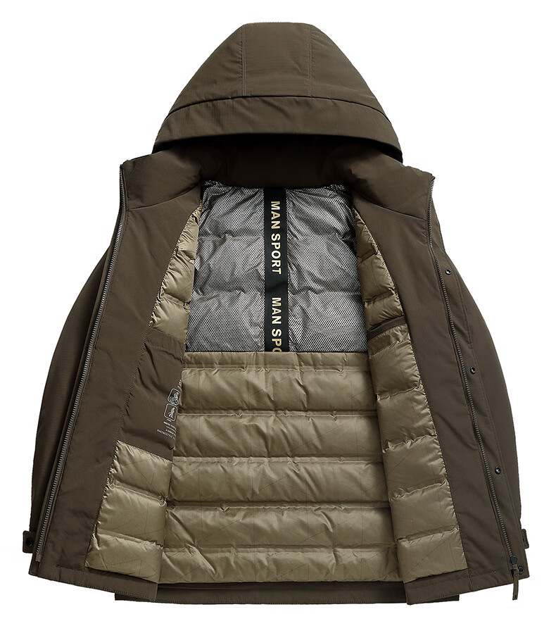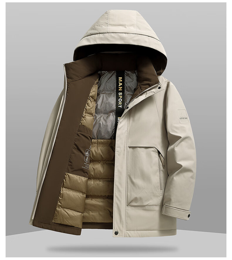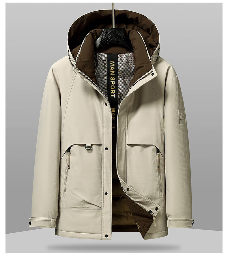 罗蒙(ROMON)三防户外羽绒服男士连帽冲锋衣秋冬新款石墨烯蓄热羽绒服 米色 M 170/