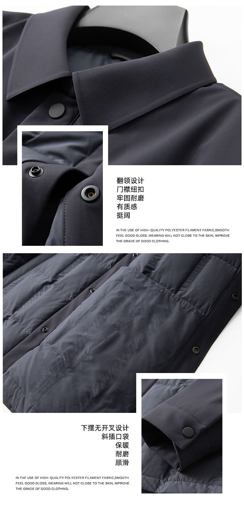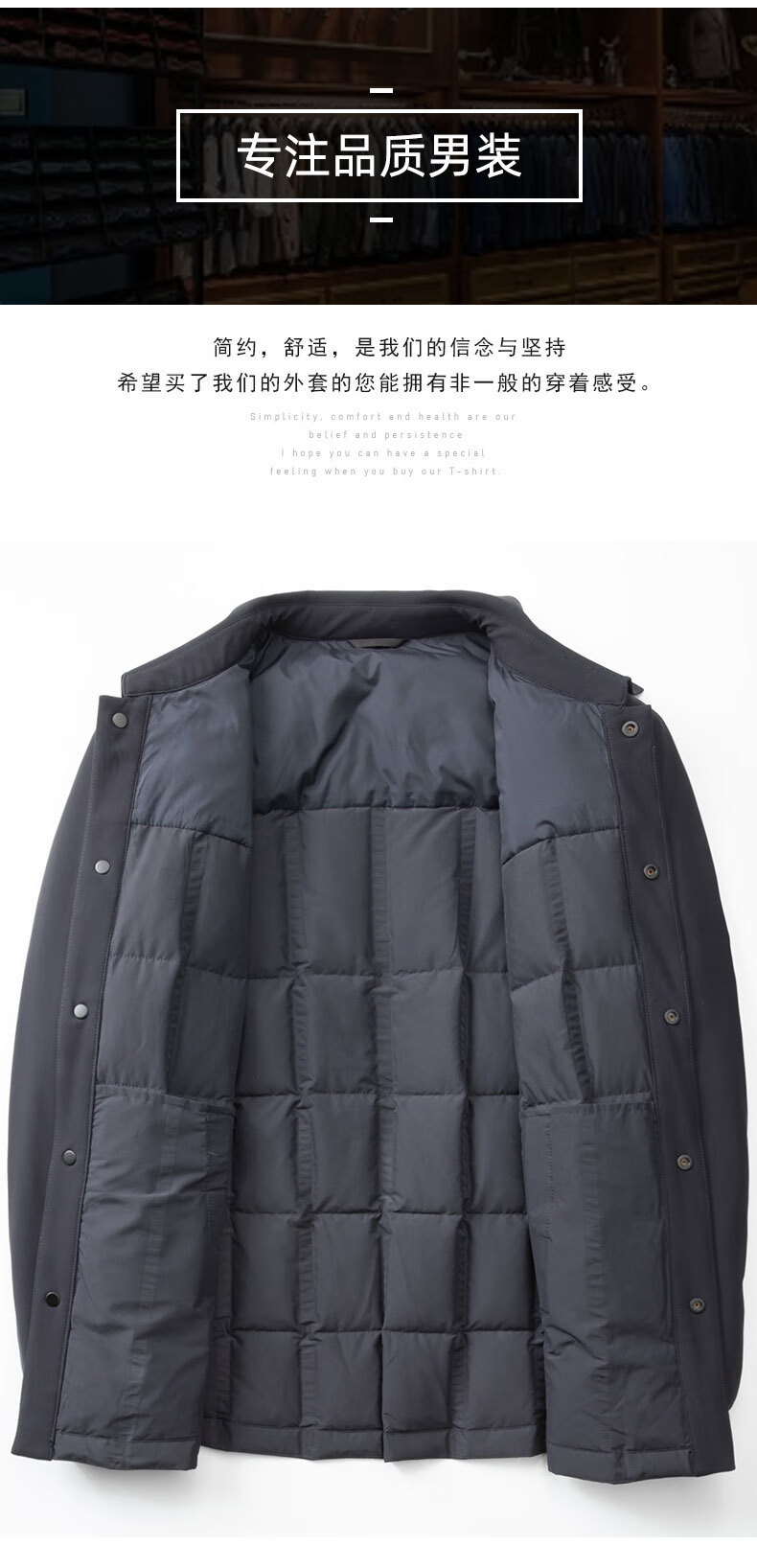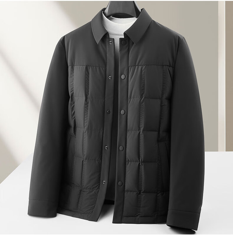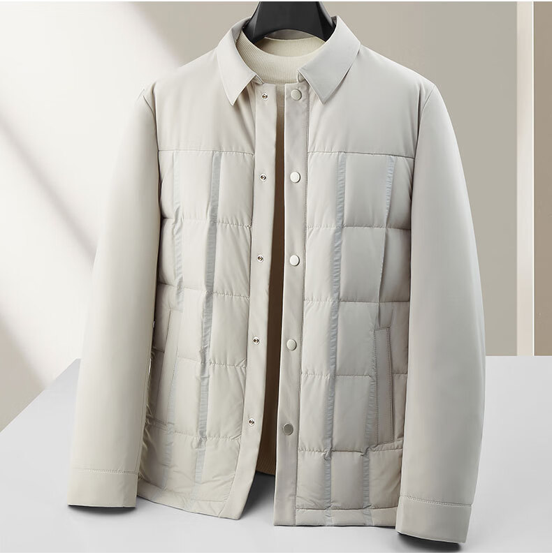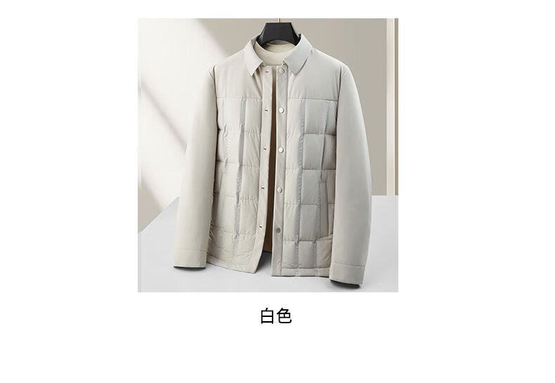 罗蒙(ROMON)男式羽绒服秋冬90白鸭绒保暖衬衣版无痕一体青年高奢商务老钱外套 白色 M 170