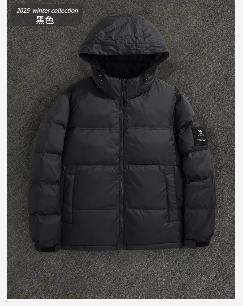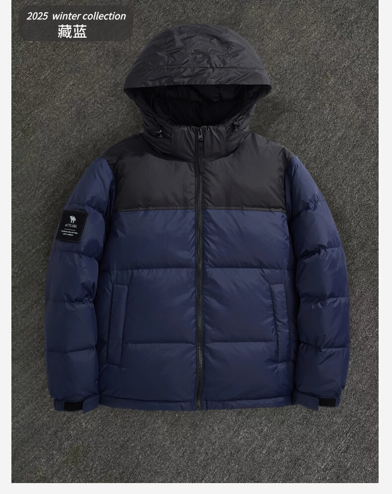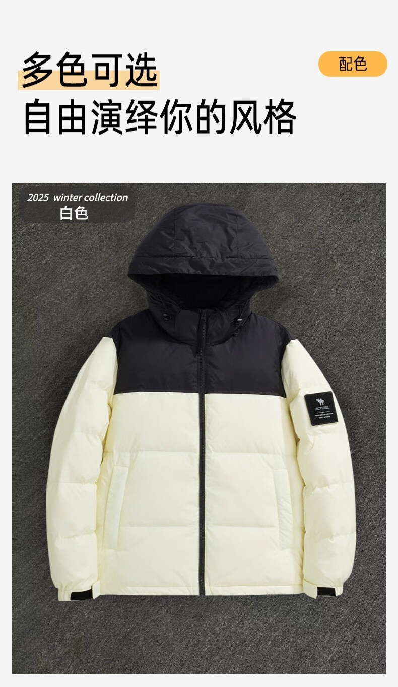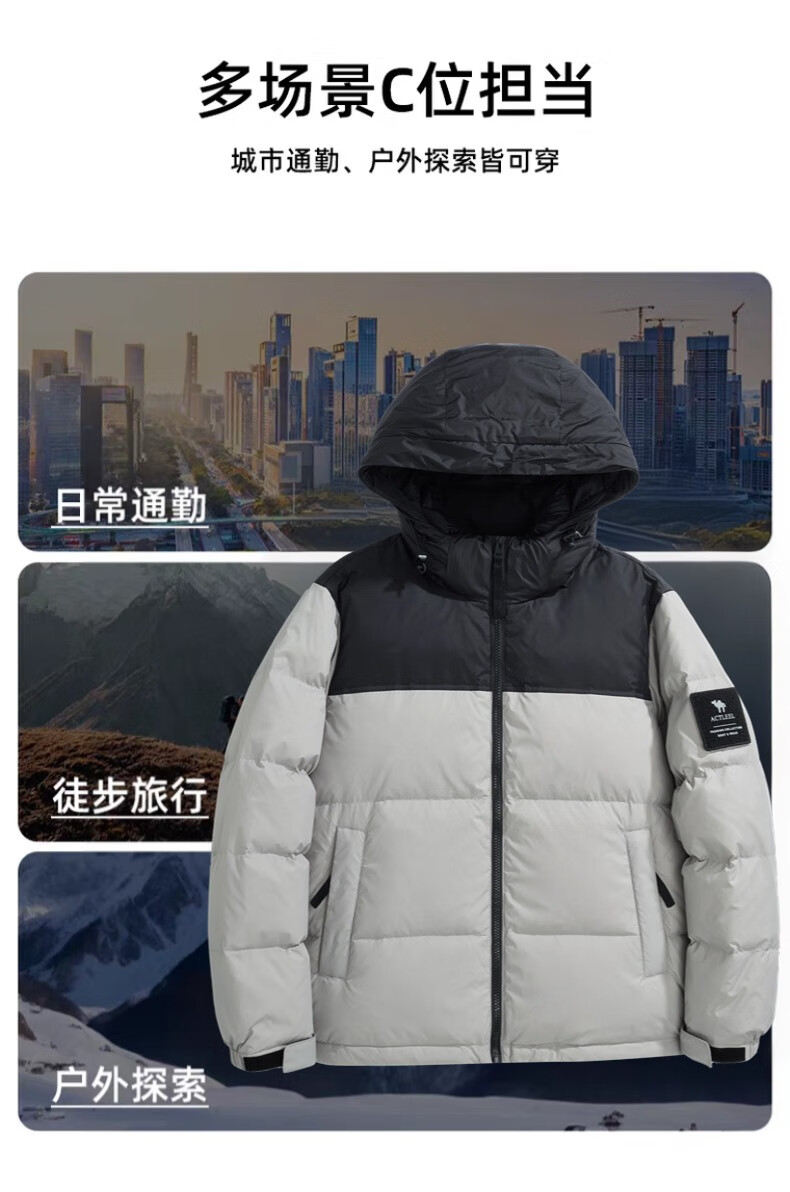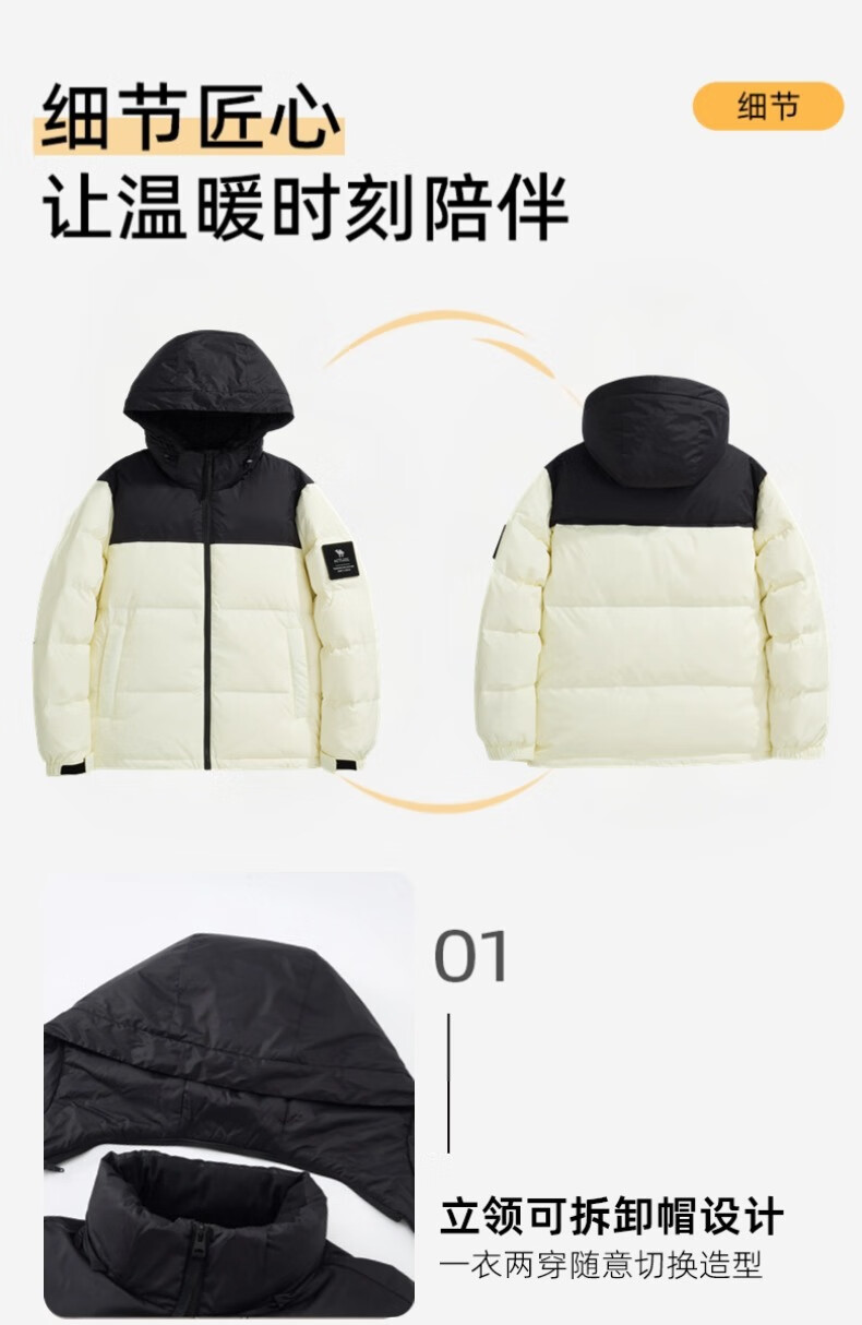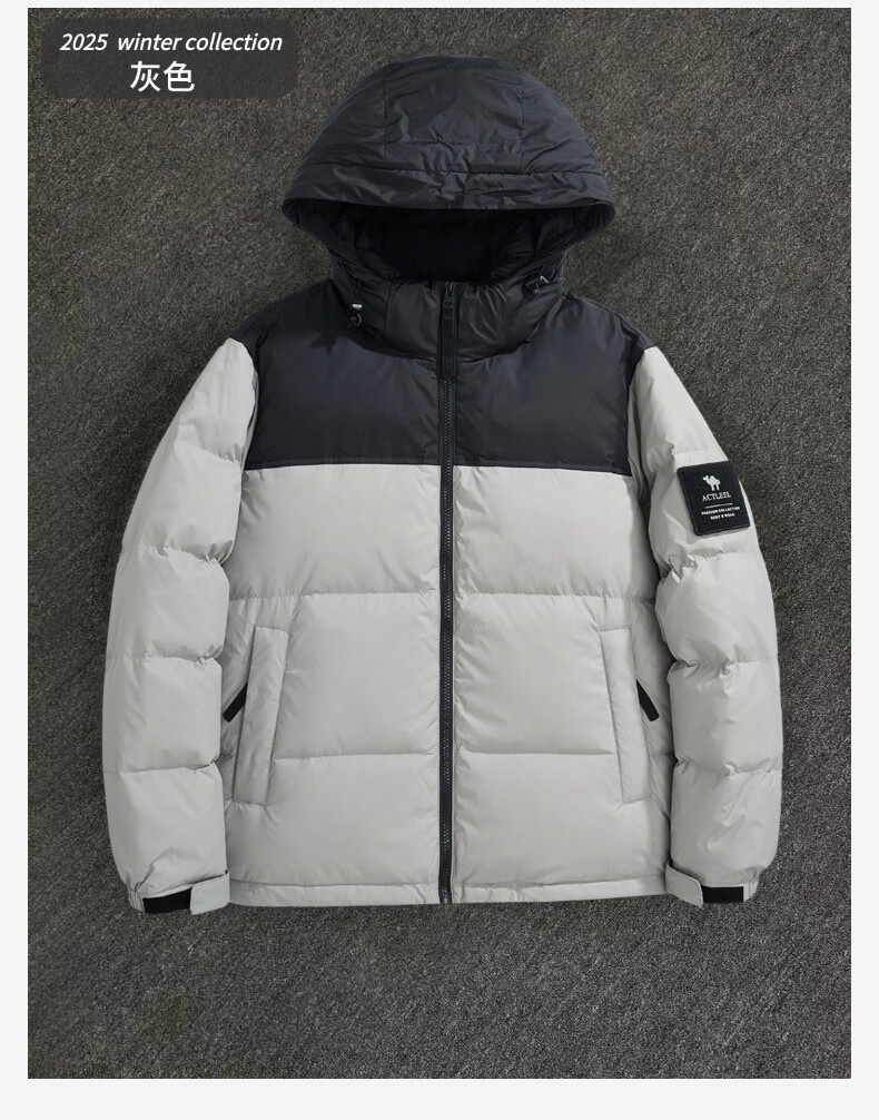 罗蒙(ROMON)国标50绒羽绒服男白鸭绒连帽羽绒服夹克休闲外套潮流商务休闲外套 米白色 L