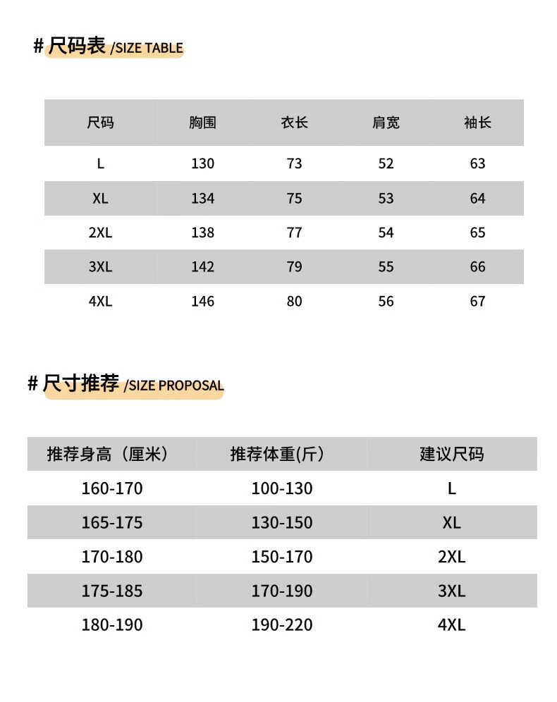 China (cm) 165 / 88-90 170 / 96-98 175 / 108-110 180 / 118-122 185 / 126-130