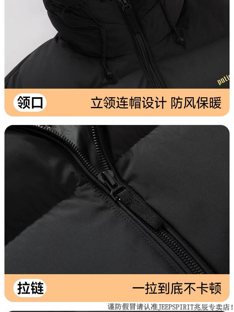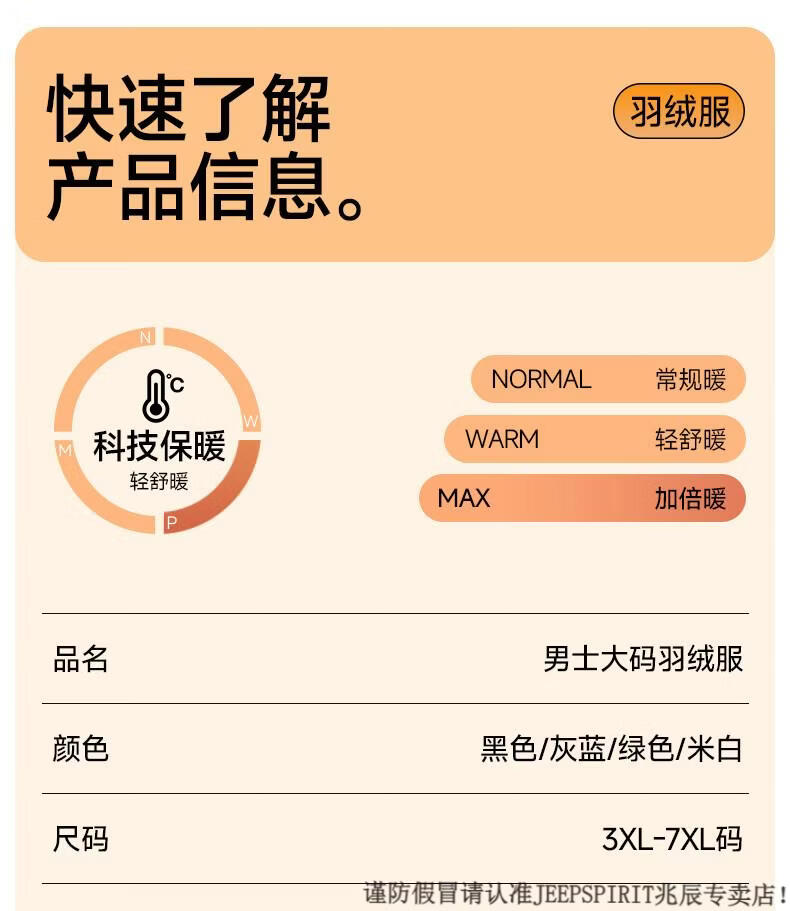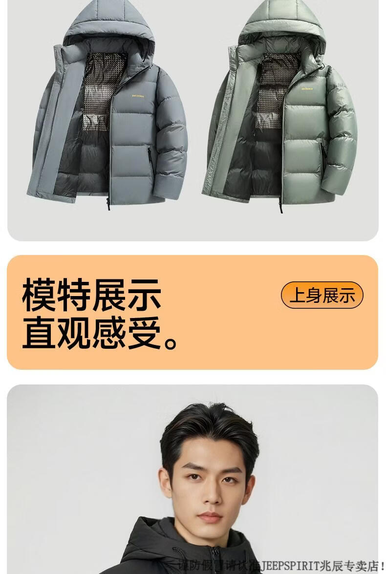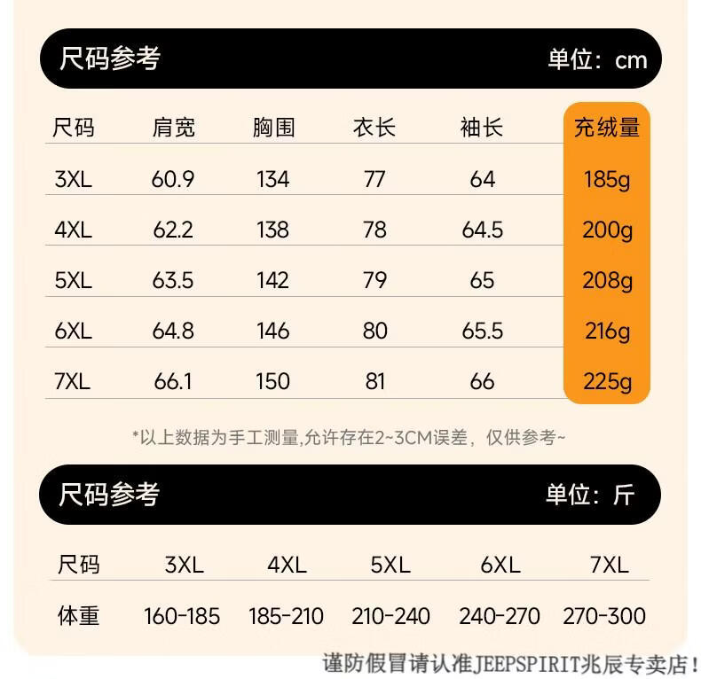 JEEP SPIRIT加肥加大男士羽绒服外套冬季新款胖子特大码爸爸300斤防寒服 灰蓝【防寒保暖超大充绒量】 3XL 【体重160-185斤】