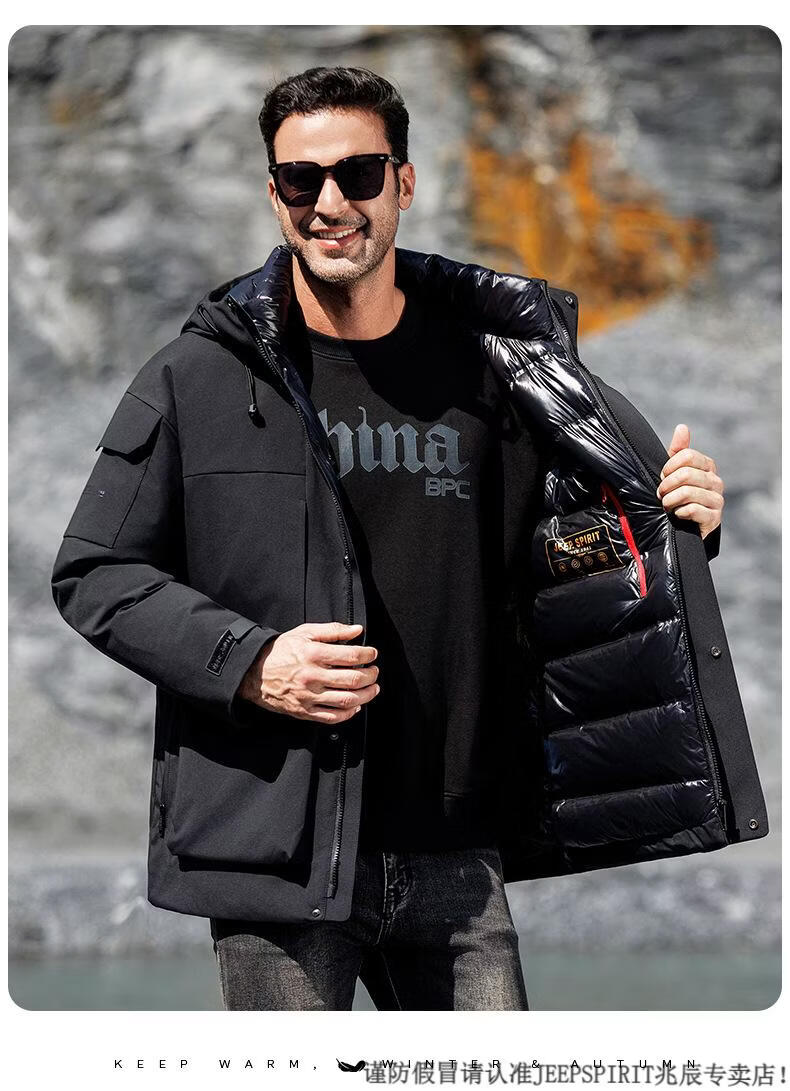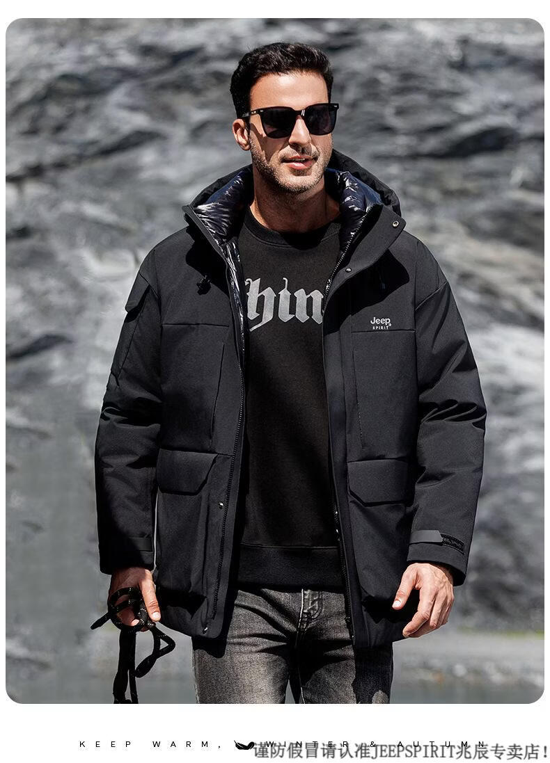JEEP SPIRIT Jeep новая мужская пуховая куртка осень-зима утолщенная с капюшоном уличная холодная куртка мужская черная M