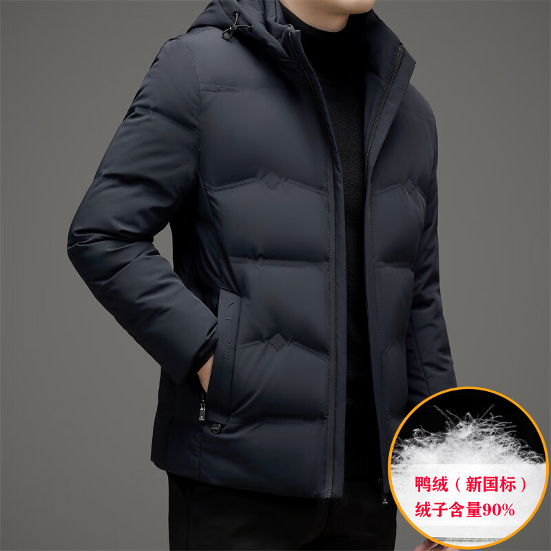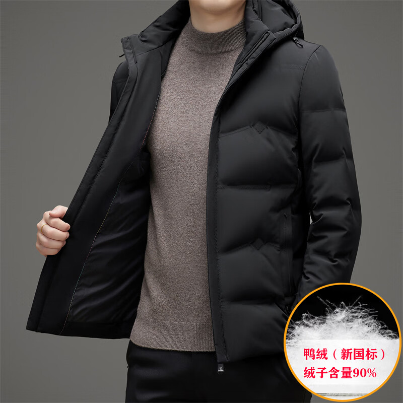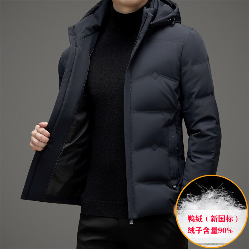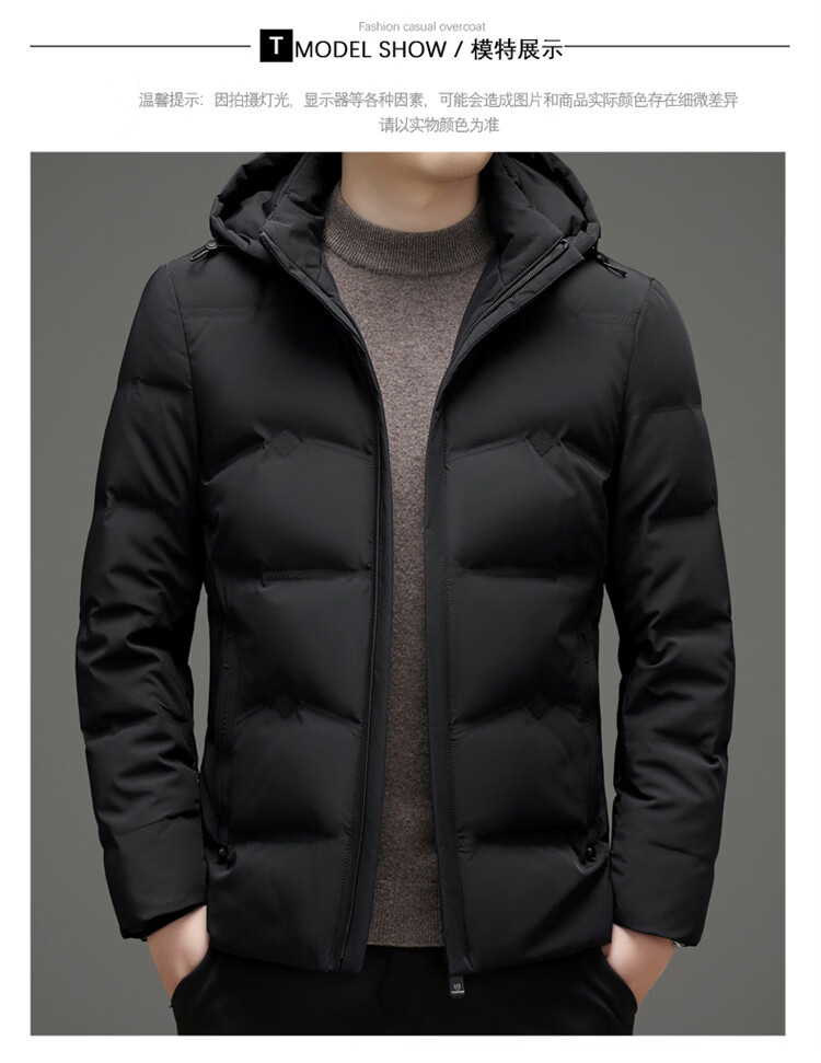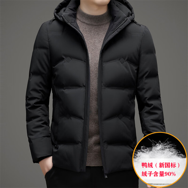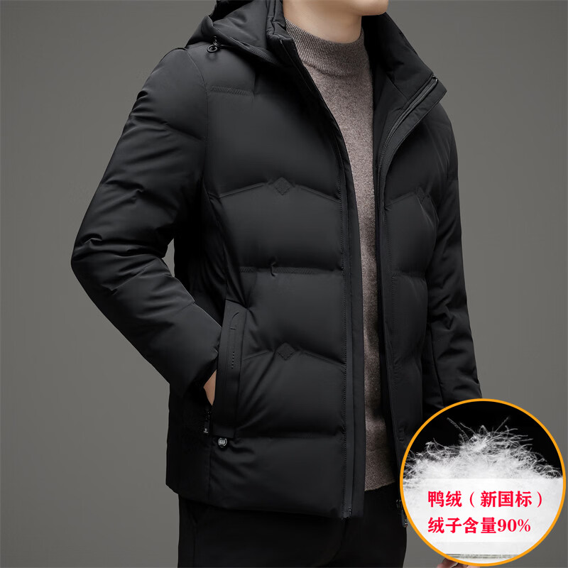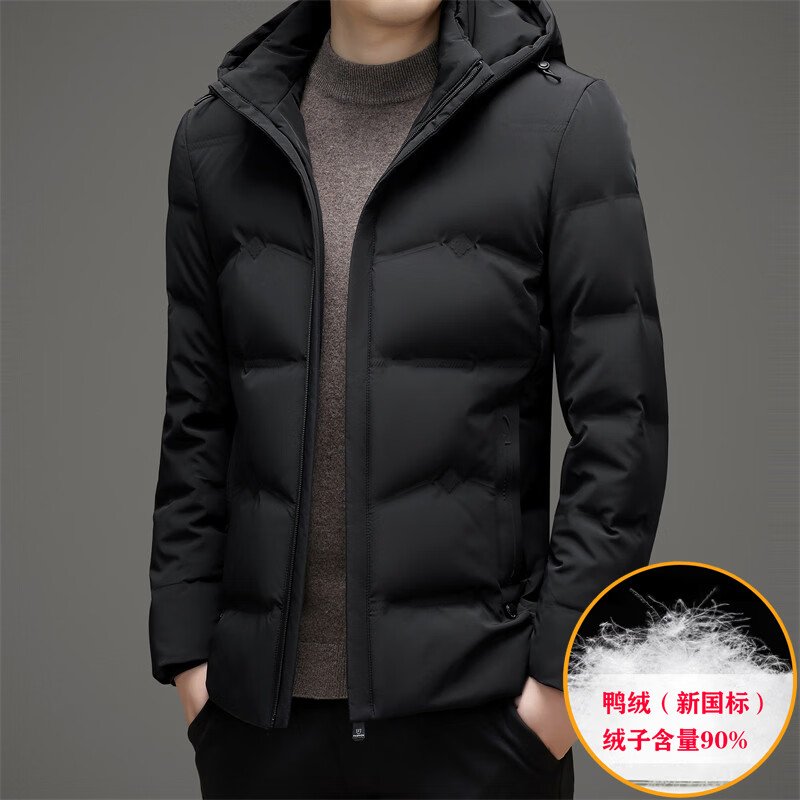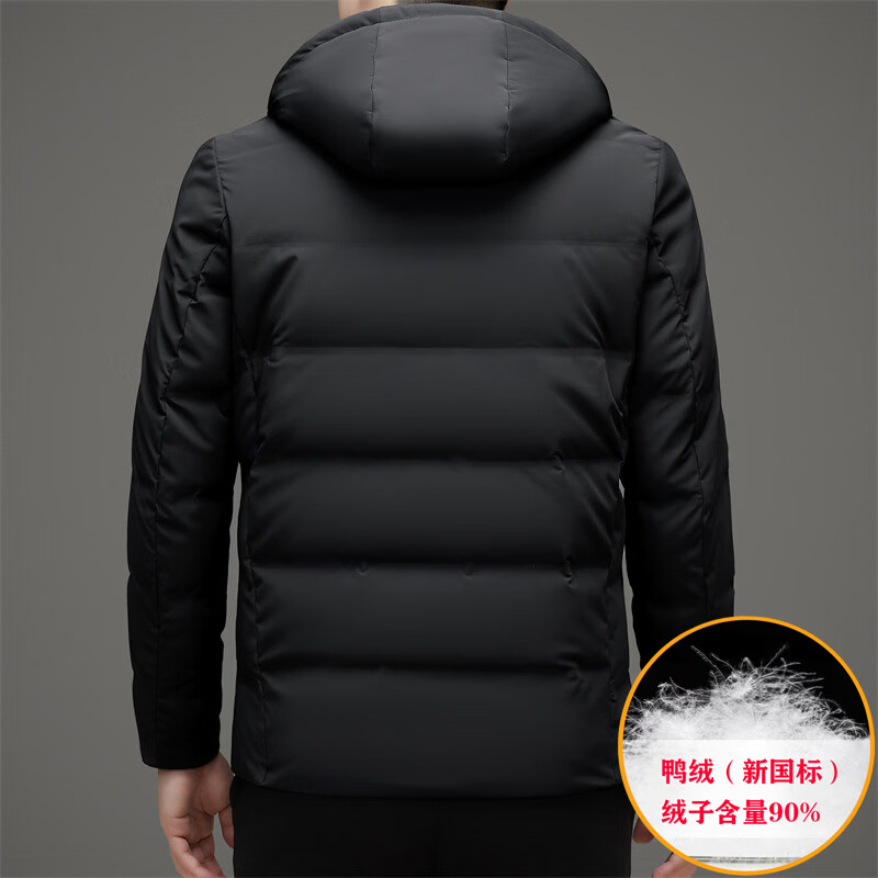 恒源祥羽绒服男连帽保暖防寒服冬季鸭绒外套男士商务休闲高档男装上衣服 黑色 M 170