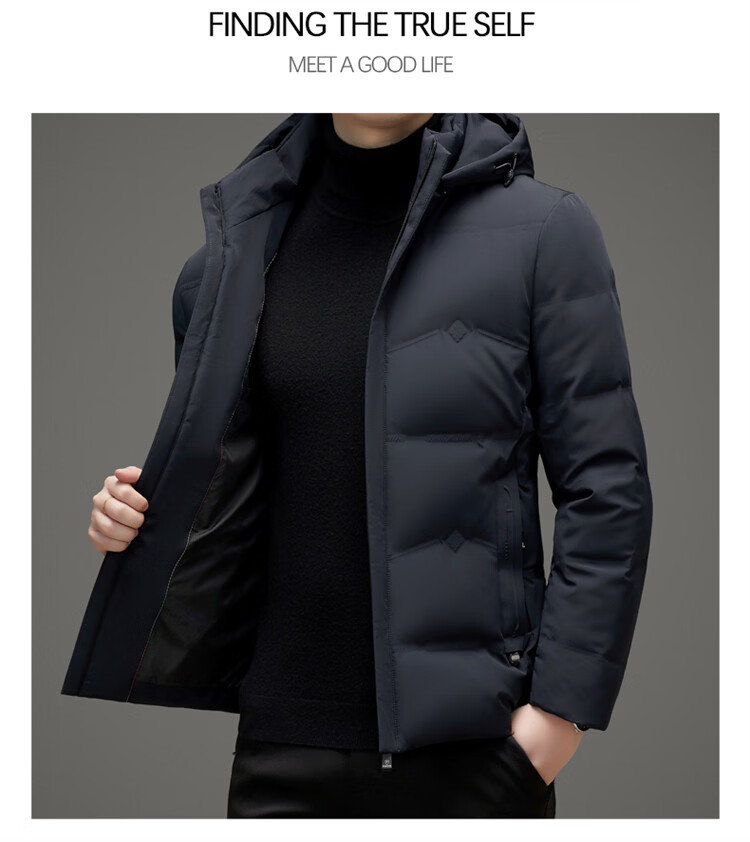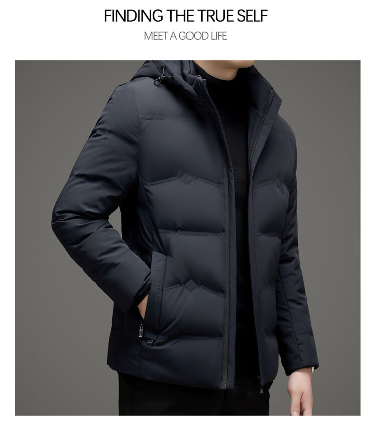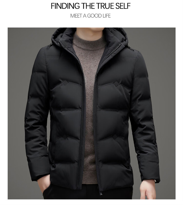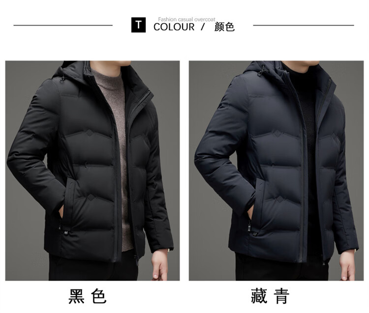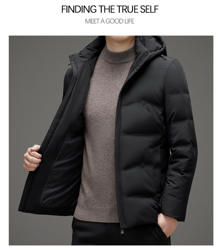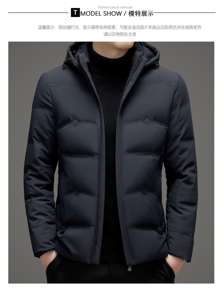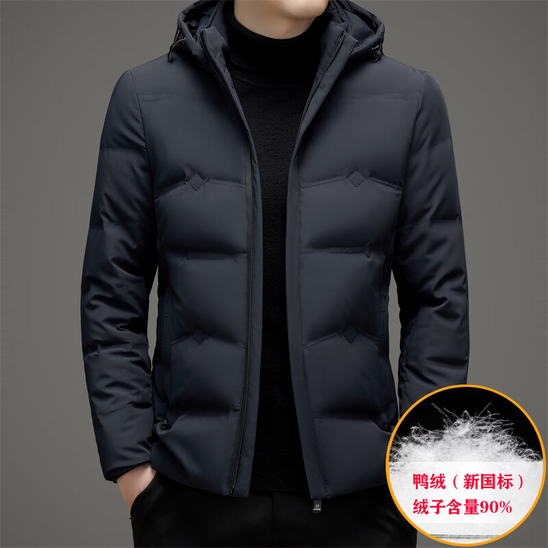恒源祥羽绒服男连帽保暖防寒服冬季鸭绒外套男士商务休闲高档男装上衣服 黑色 M 170