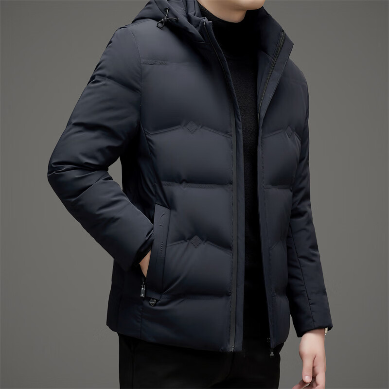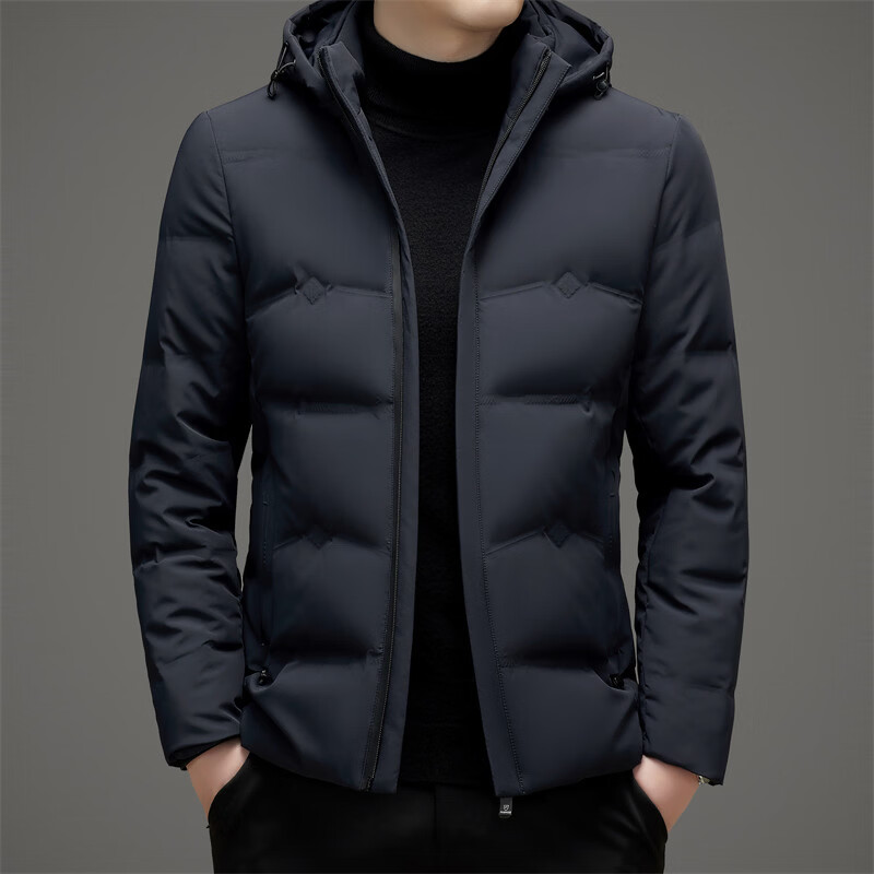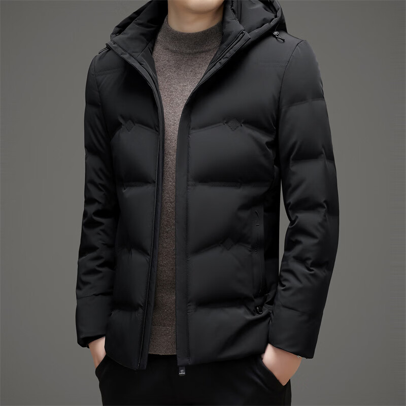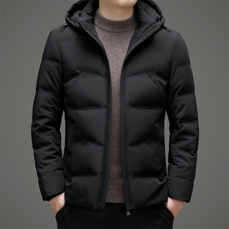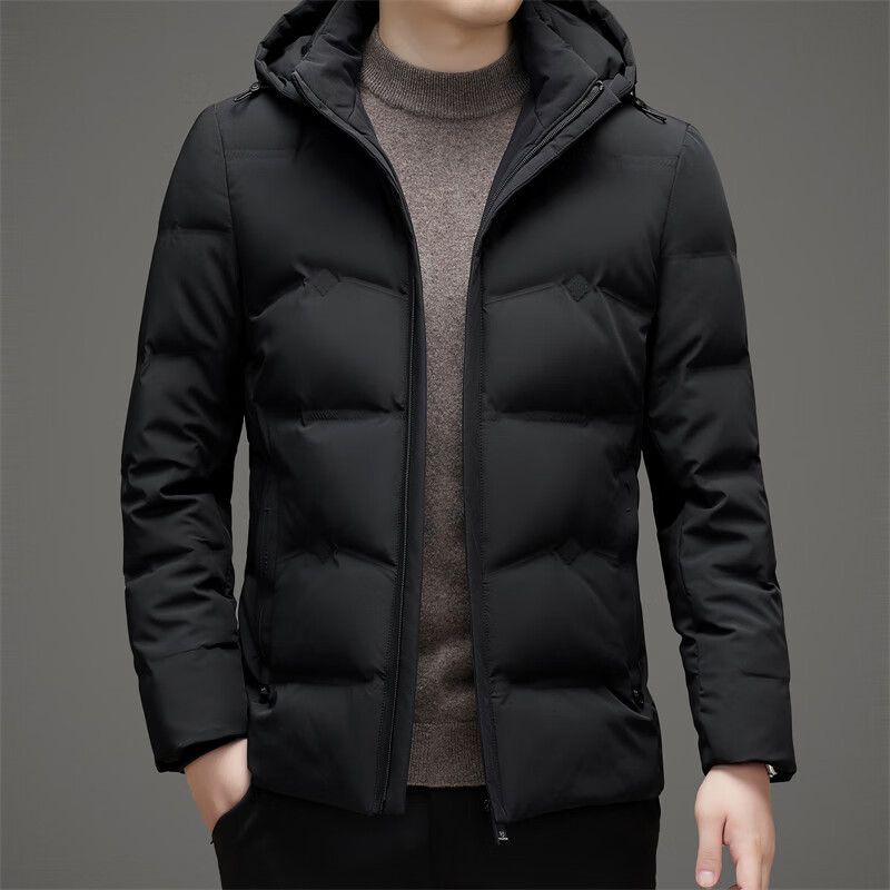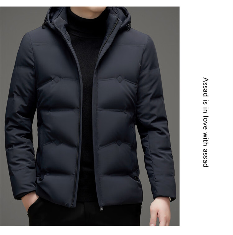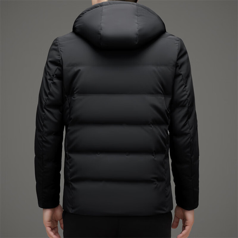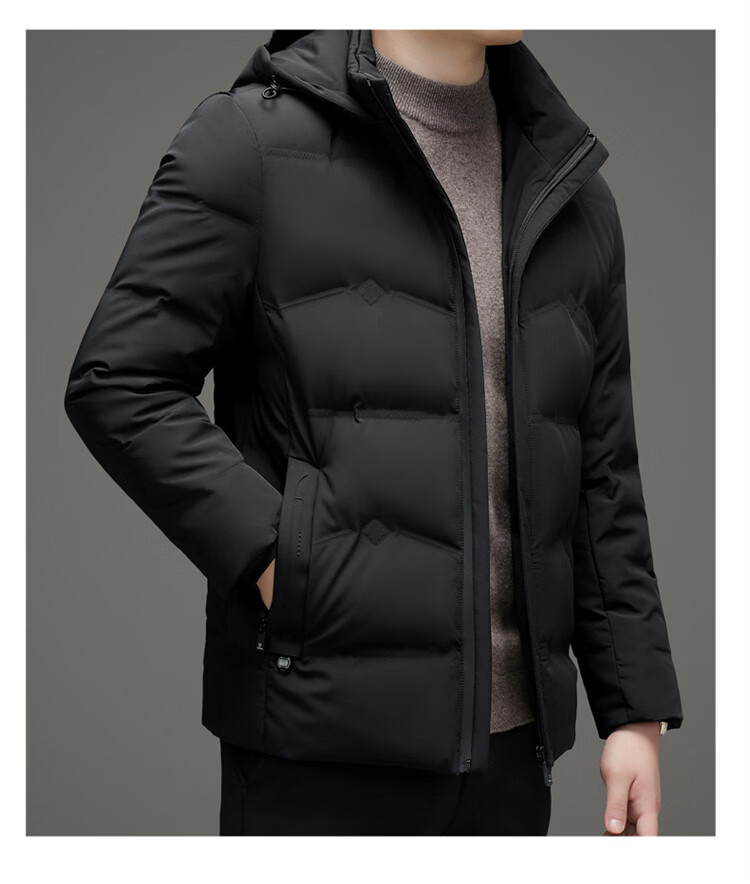 恒源祥羽绒服男连帽保暖防寒服冬季鸭绒外套男士商务休闲高档男装上衣服 黑色 M 170