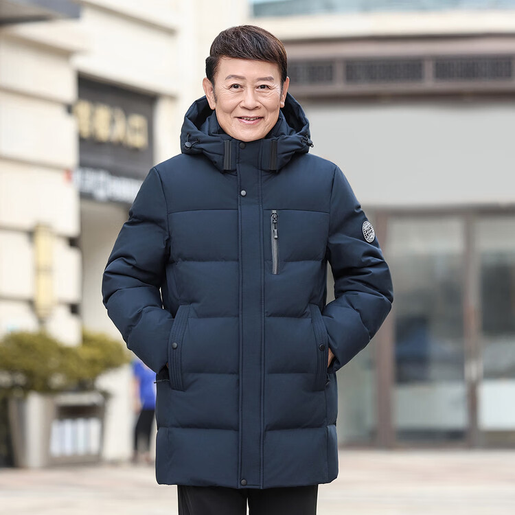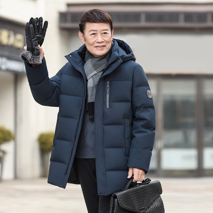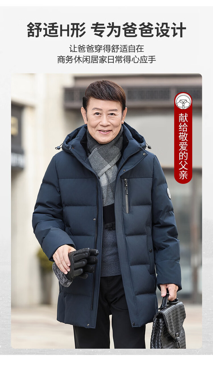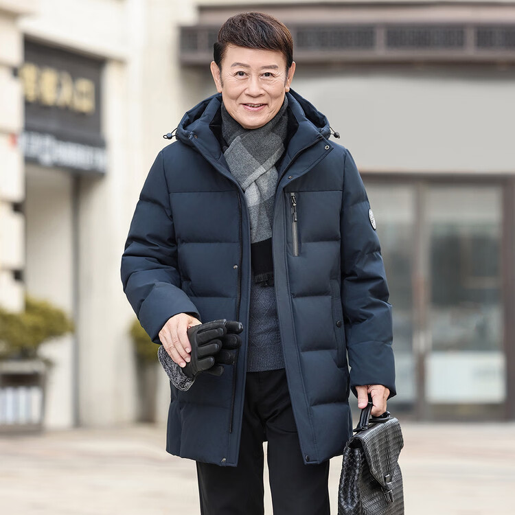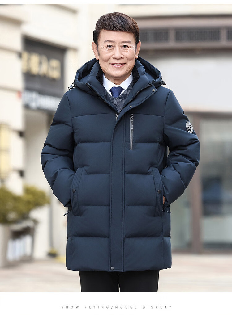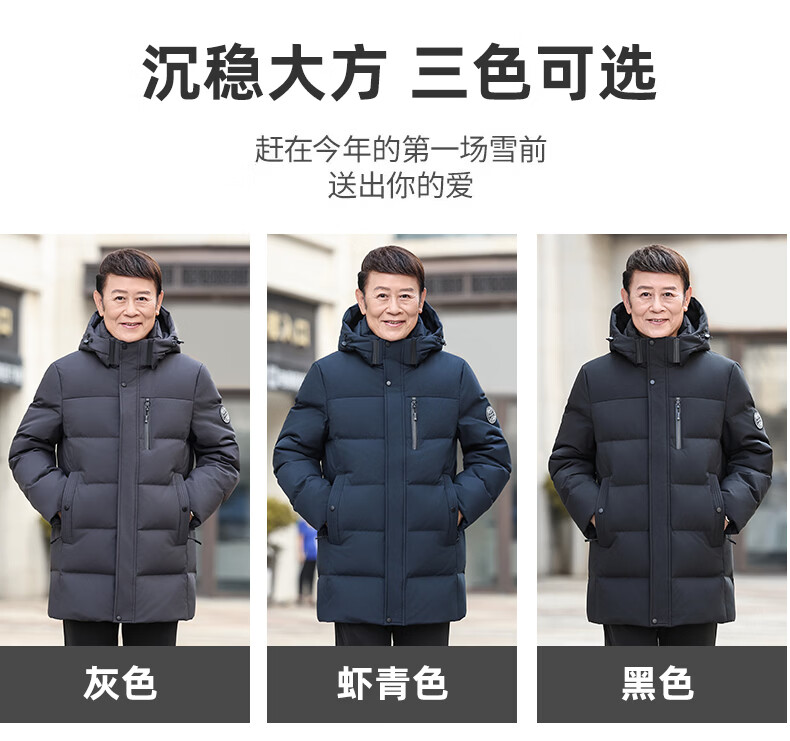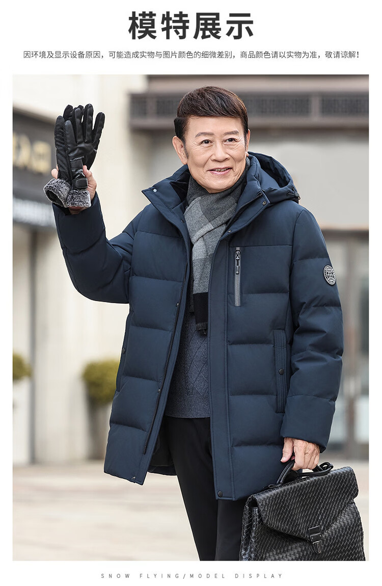 恒源祥爸爸羽绒服中长款加厚保暖2026冬季新款中老年人鸭绒男士外套 虾青色 L 175