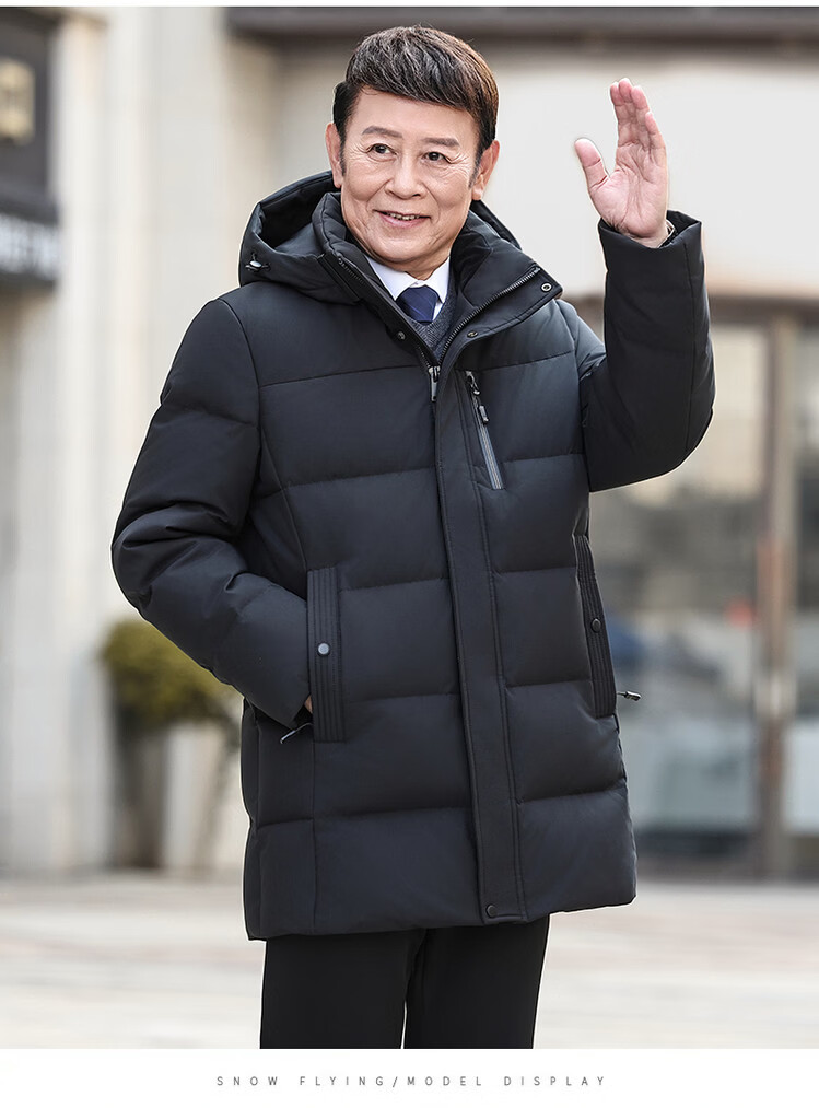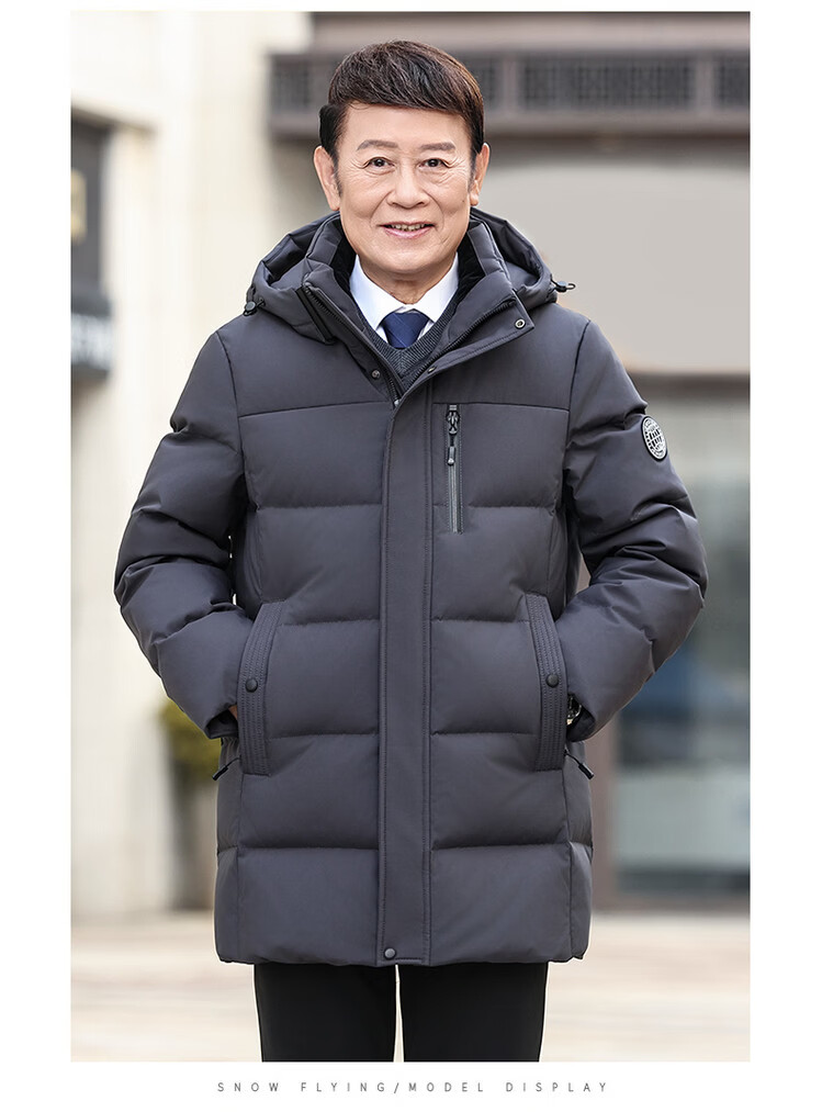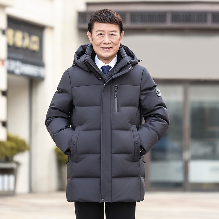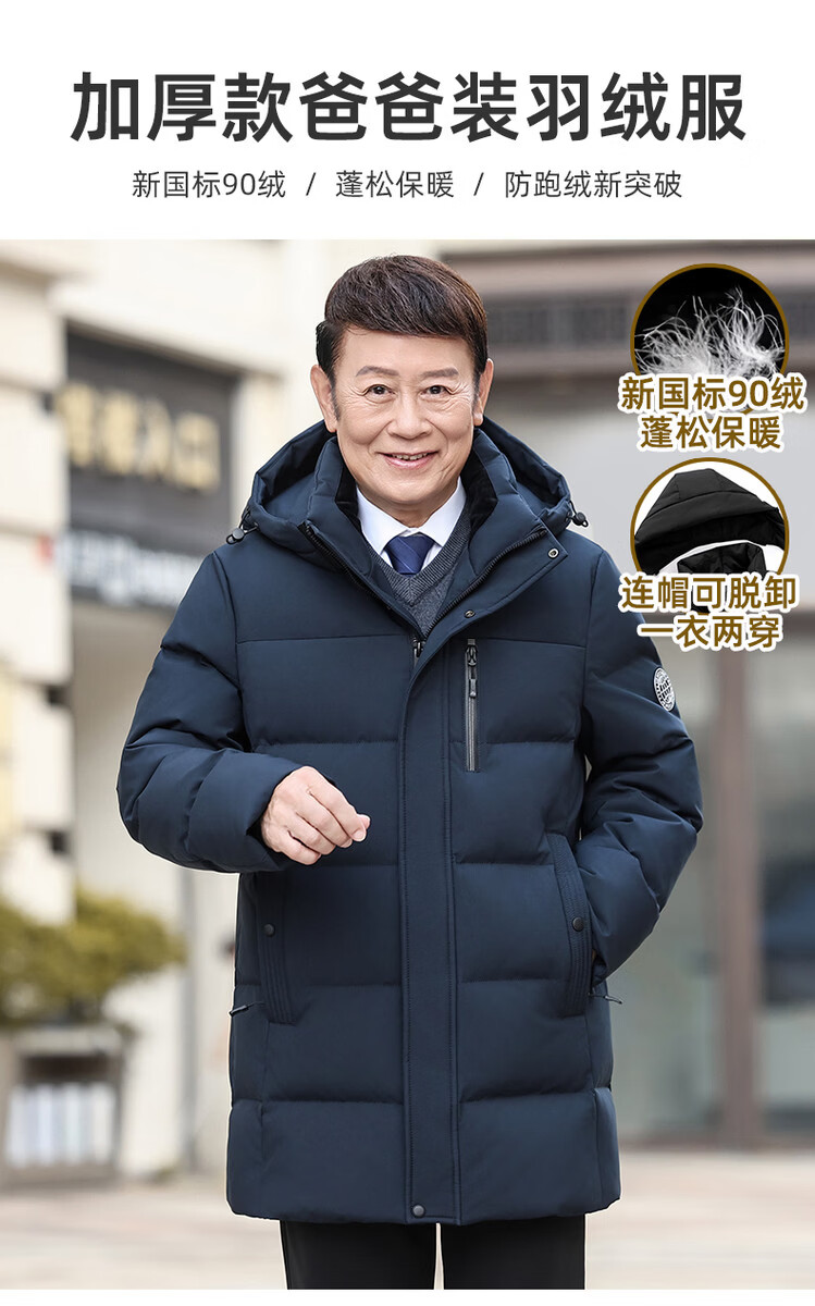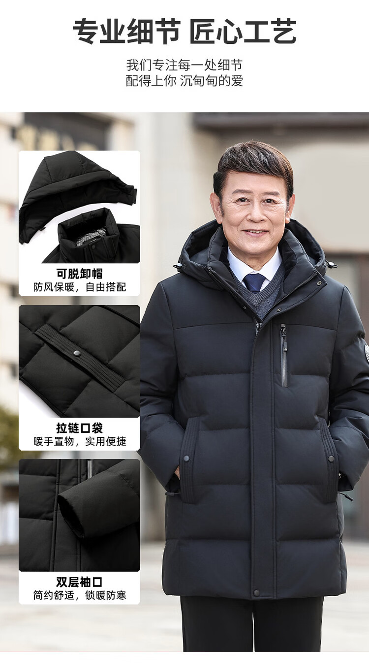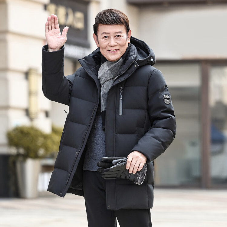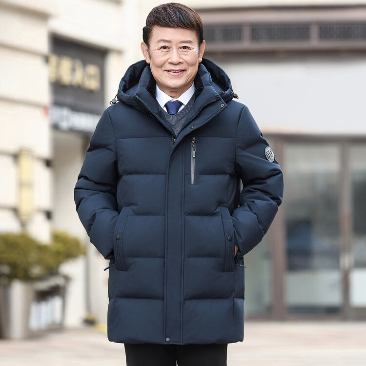 恒源祥爸爸羽绒服中长款加厚保暖2026冬季新款中老年人鸭绒男士外套 虾青色 L 175
