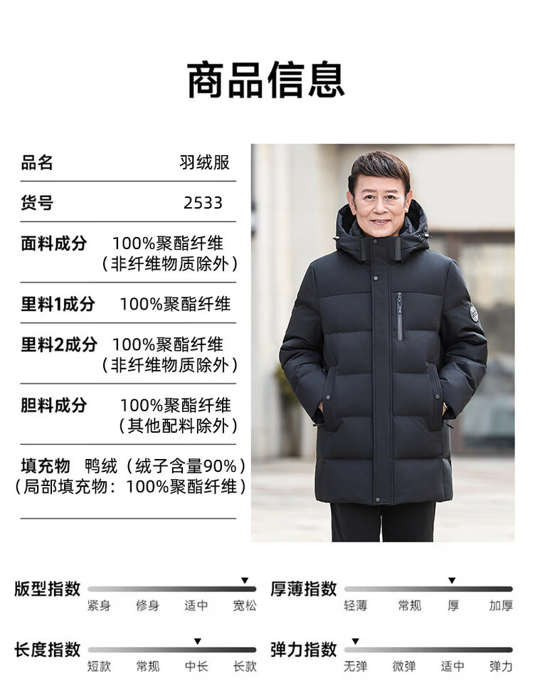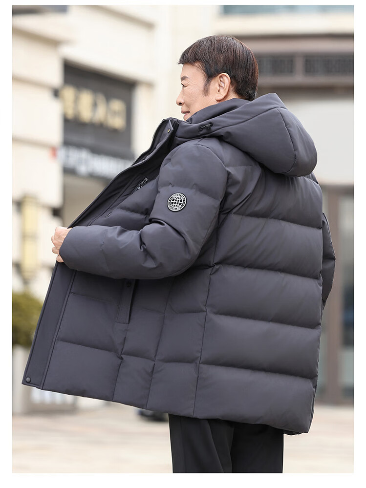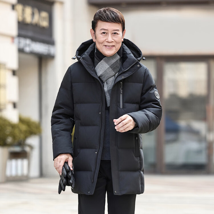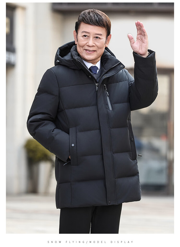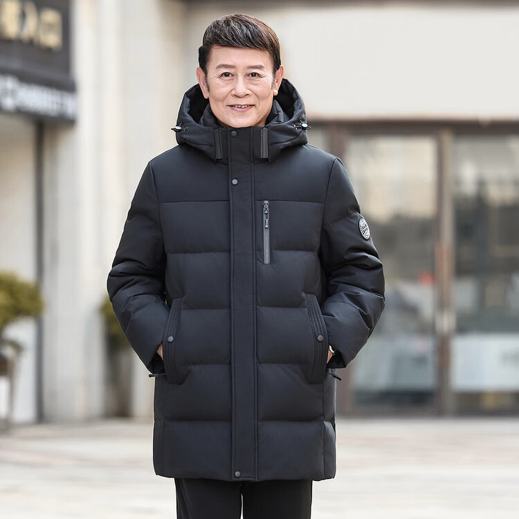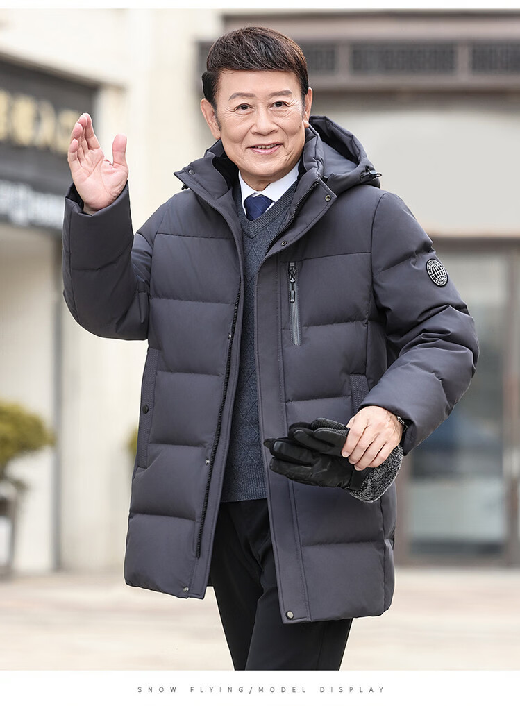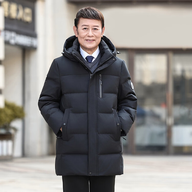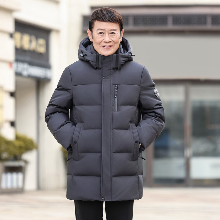 恒源祥爸爸羽绒服中长款加厚保暖2026冬季新款中老年人鸭绒男士外套 虾青色 L 175