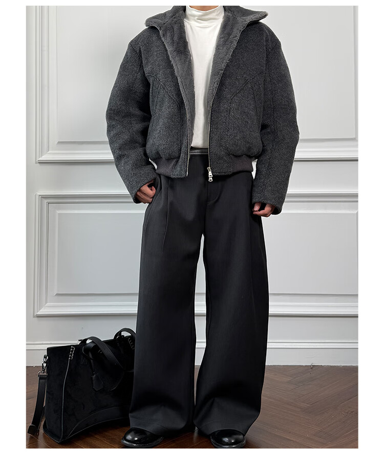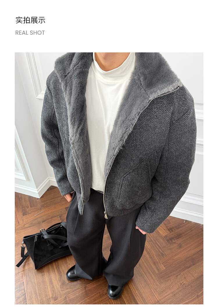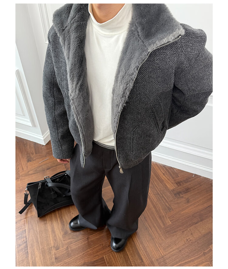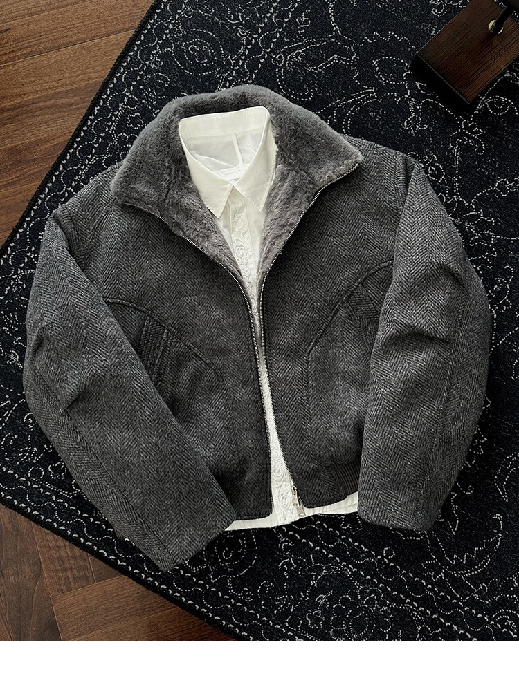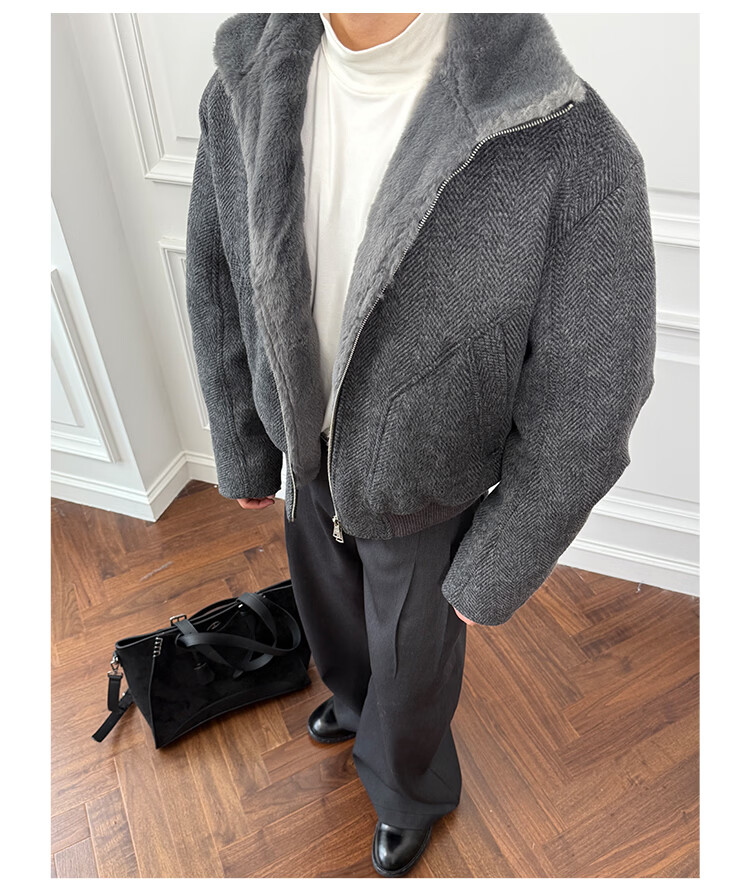 CATSSTAC snowy herringbone wool down jacket dark gray M