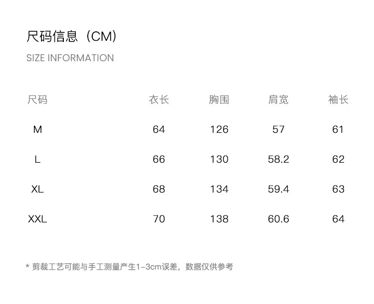 China (cm) 165 / 88-90 170 / 96-98 175 / 108-110 180 / 118-122 185 / 126-130
