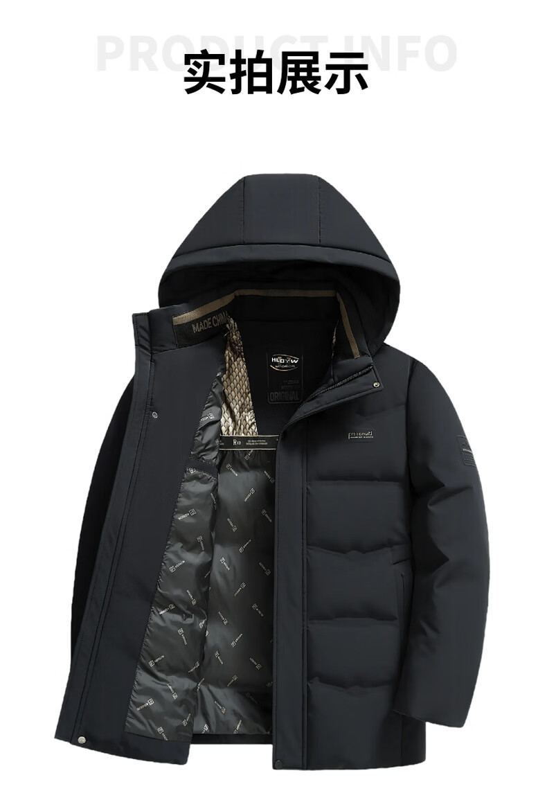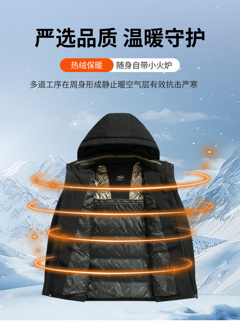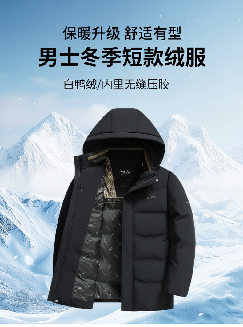 海澜之家(HLA)中年冬季加厚羽绒服爸爸装休闲上衣男士保暖外套中老年冬装 黑色 L 【体重90-110斤】