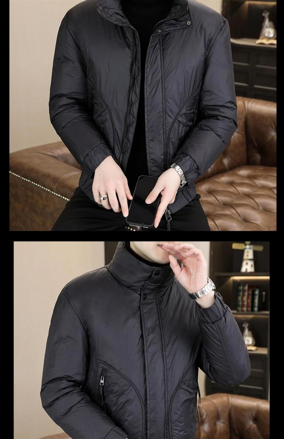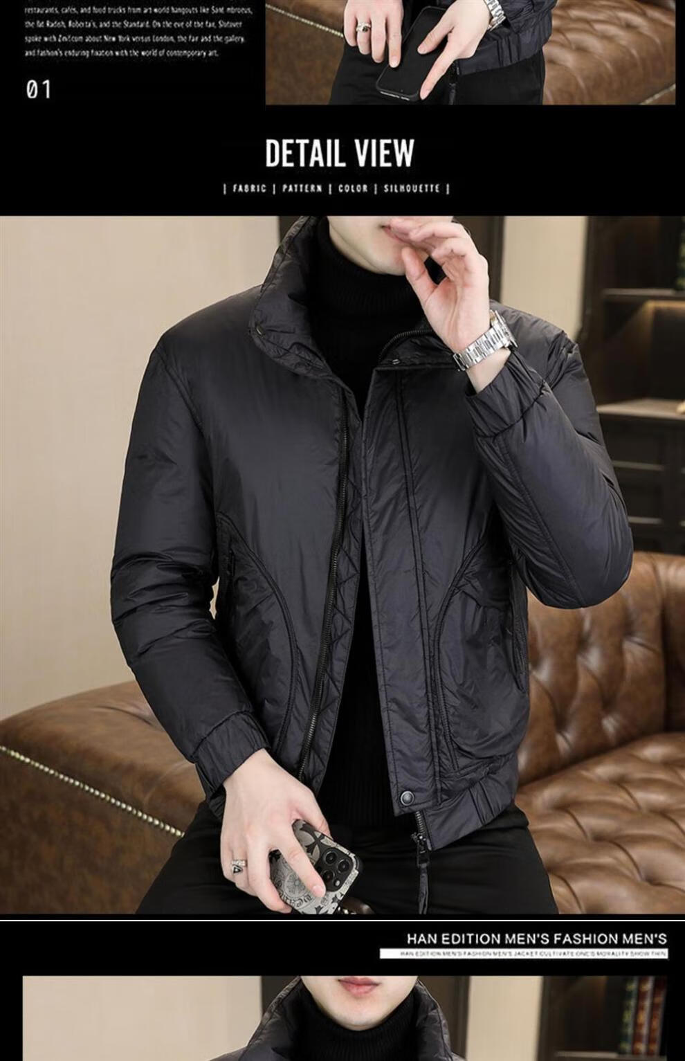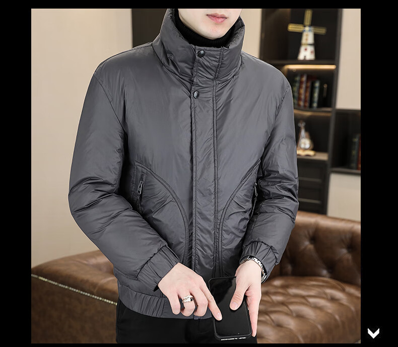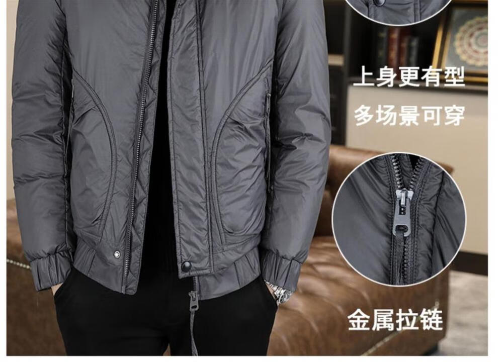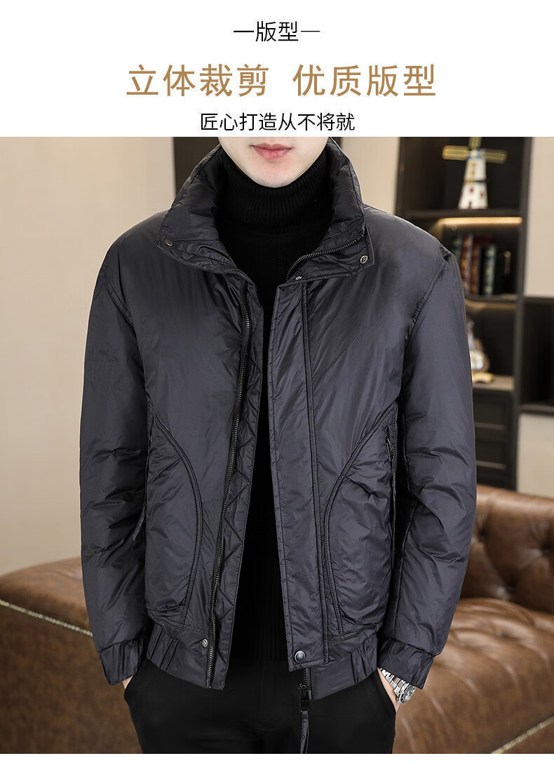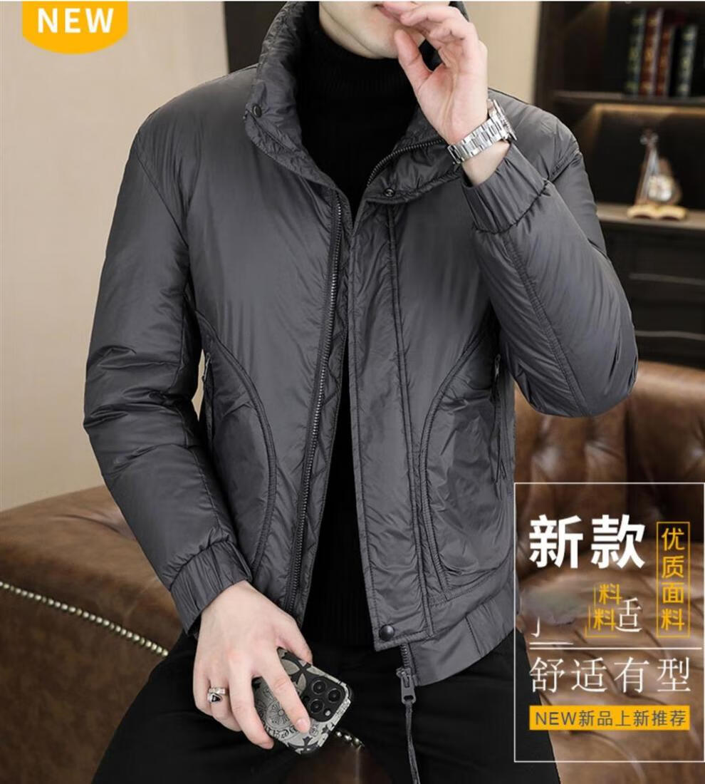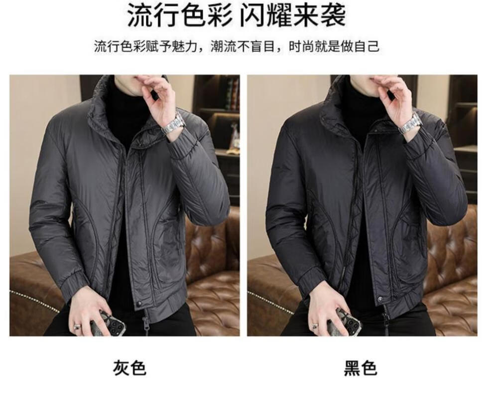 ROMON stand collar down jacket men's winter lightweight short white duck down winter jacket casual large size warm and cold-proof clothing 1293 black M