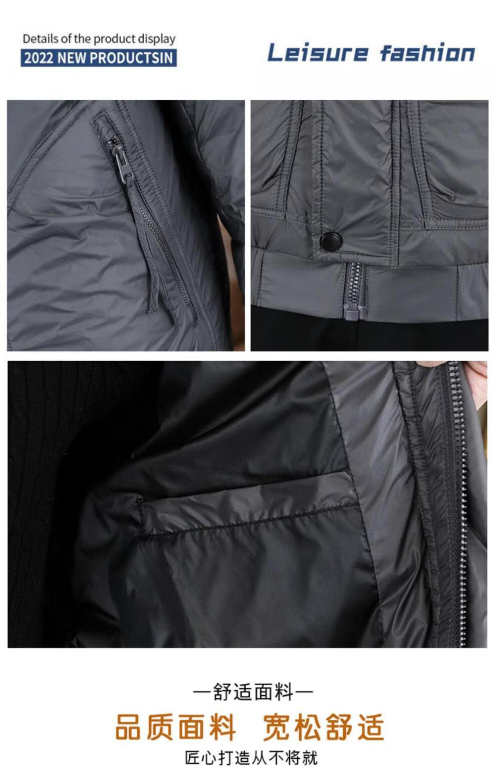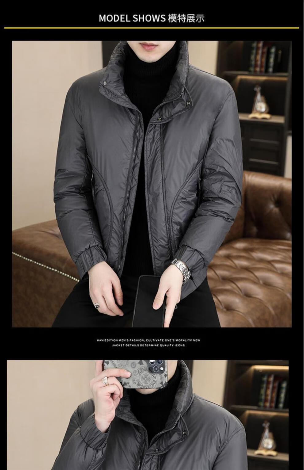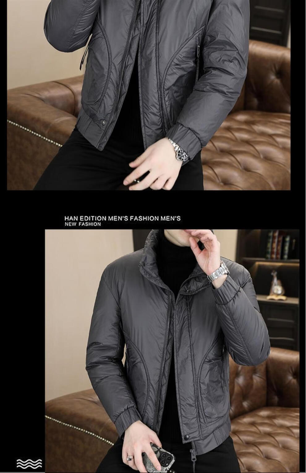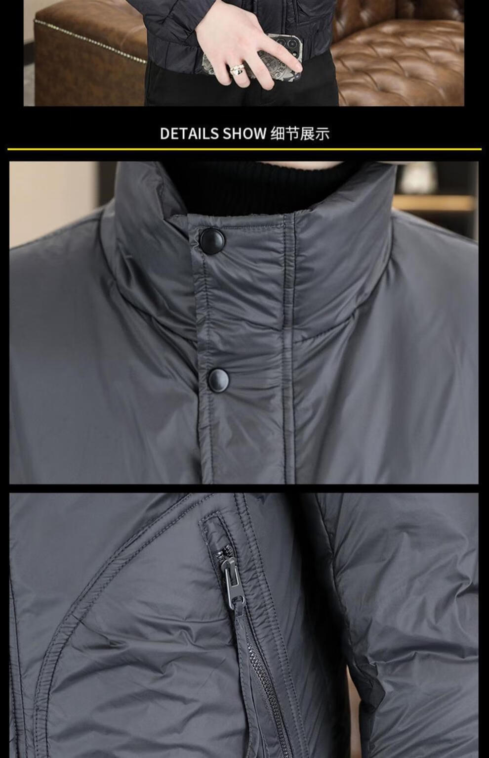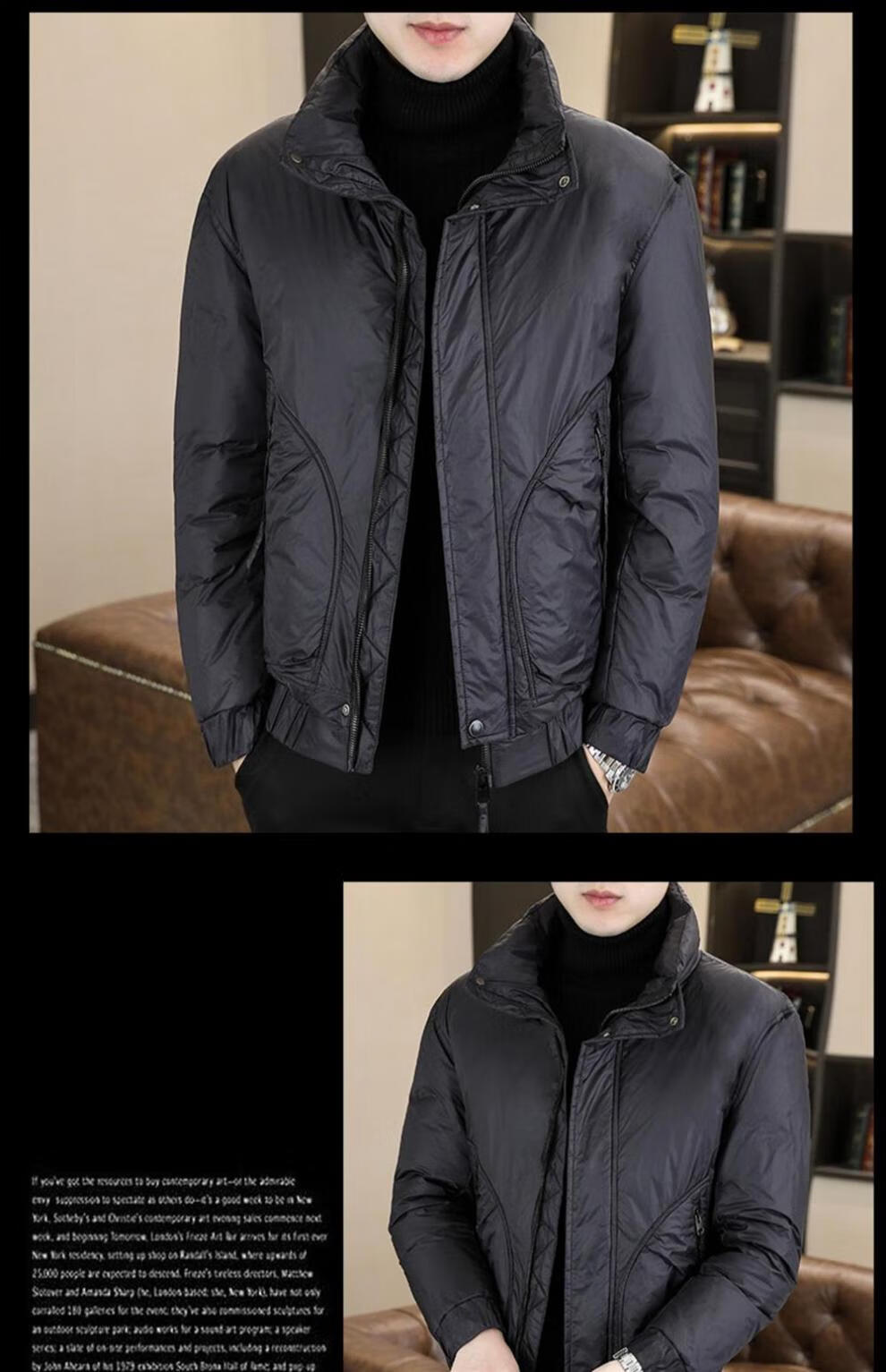 ROMON stand collar down jacket men's winter lightweight short white duck down winter jacket casual large size warm and cold-proof clothing 1293 black M