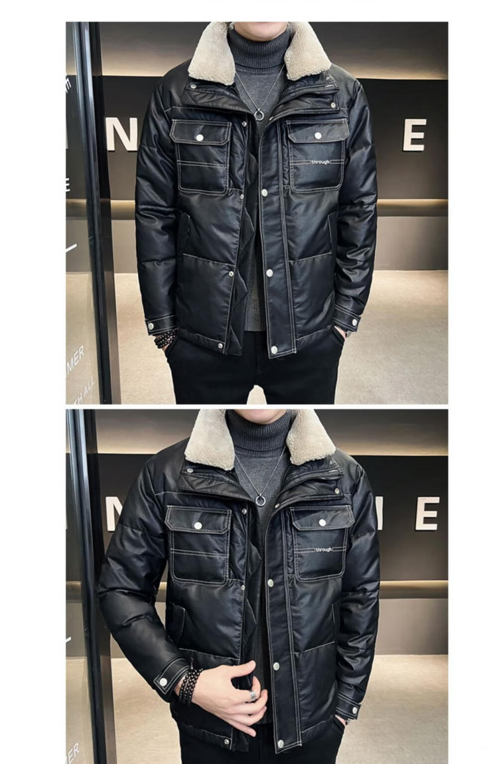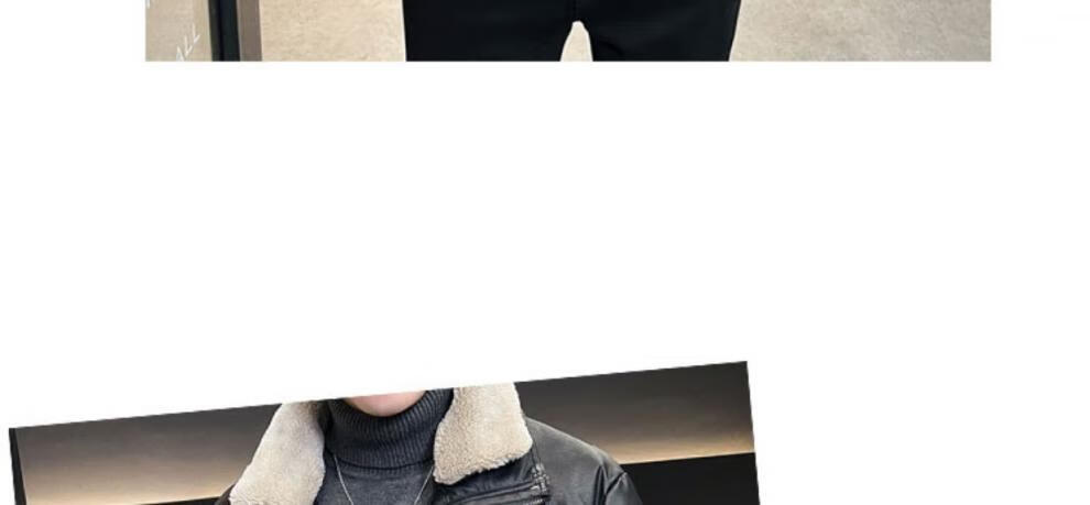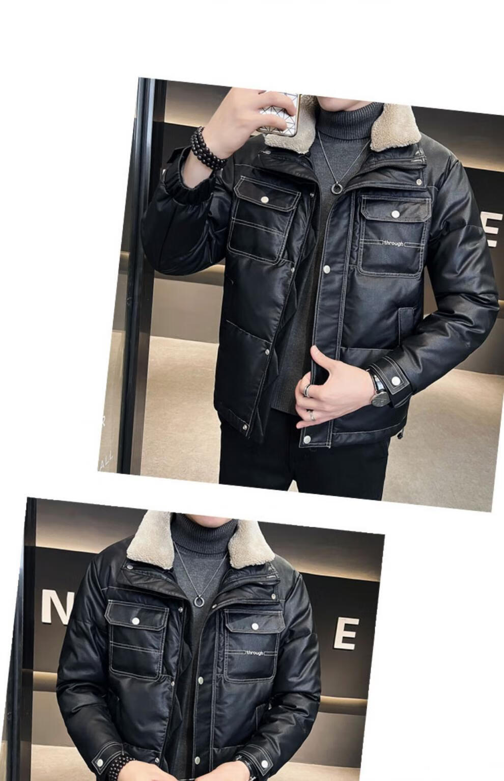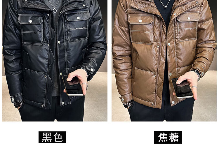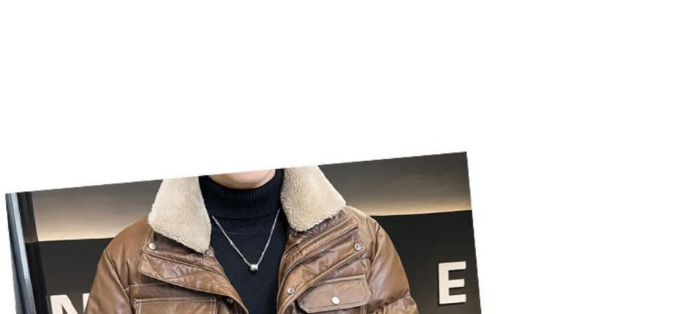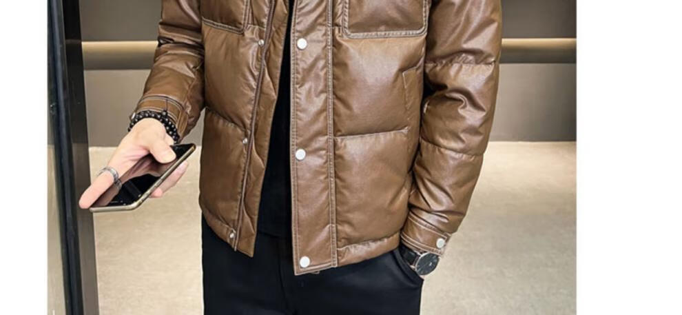 ROMON кожаный пуховик мужской зимний 2025 новый тонкий толстый красивый короткий воротник из овечьего меха мужская куртка черный L