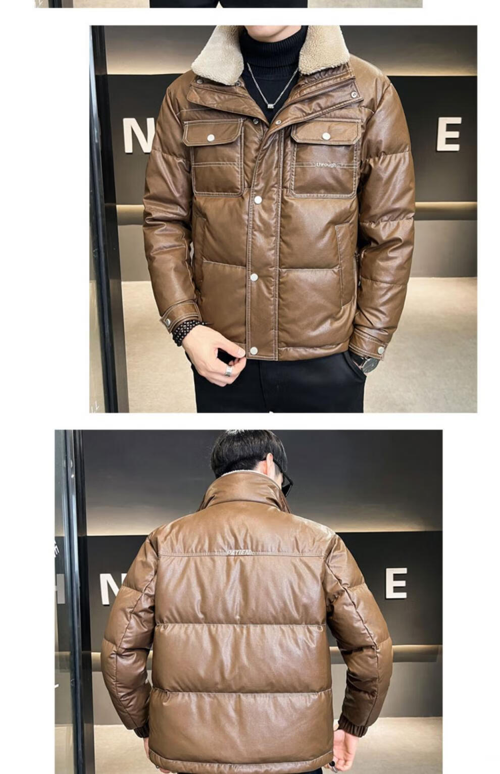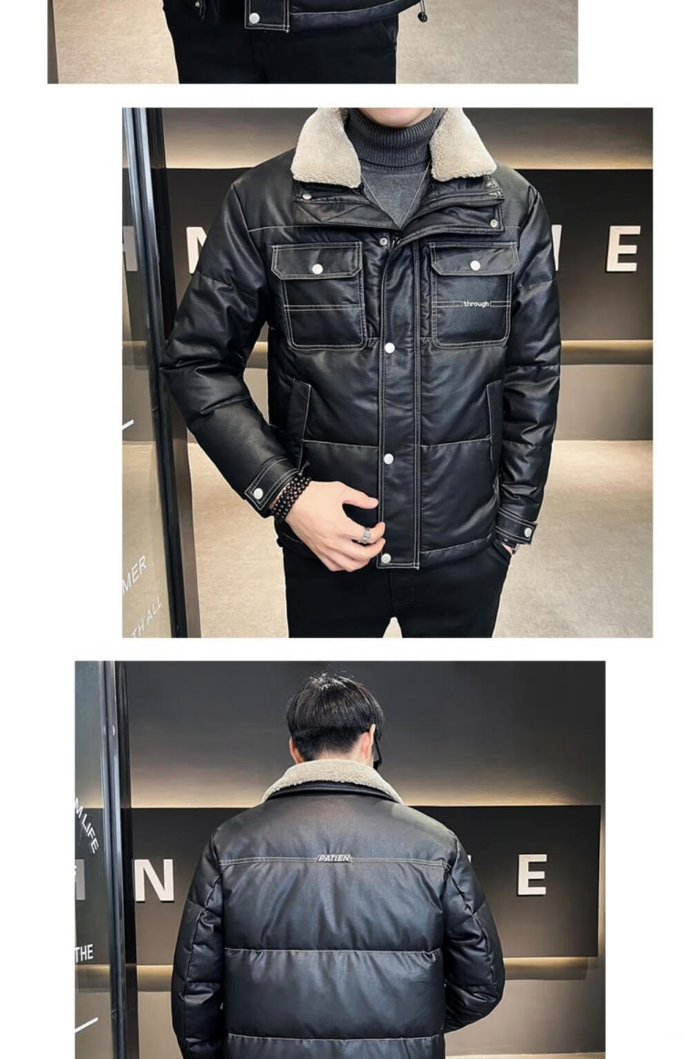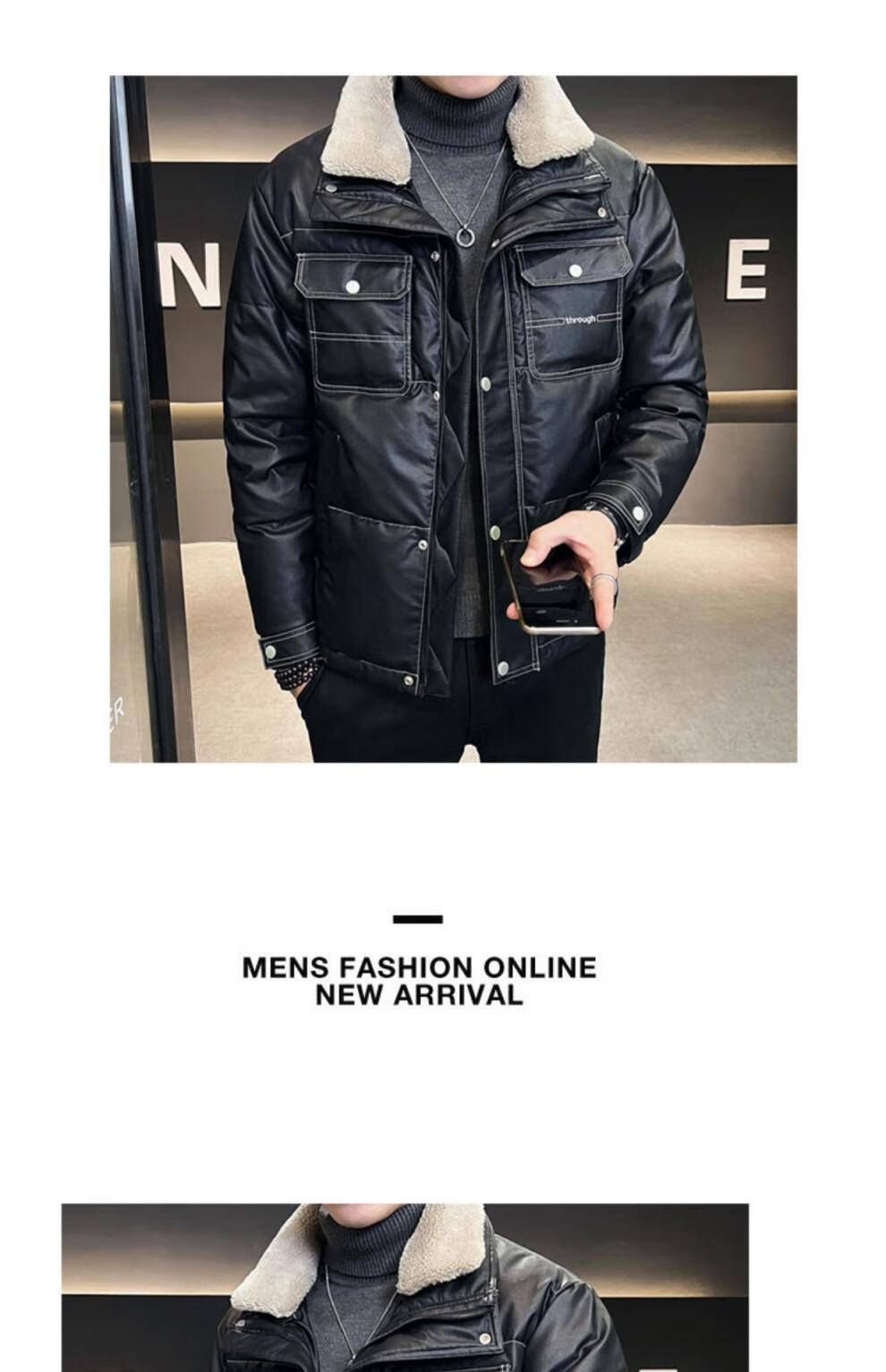 ROMON кожаный пуховик мужской зимний 2025 новый тонкий толстый красивый короткий воротник из овечьего меха мужская куртка черный L