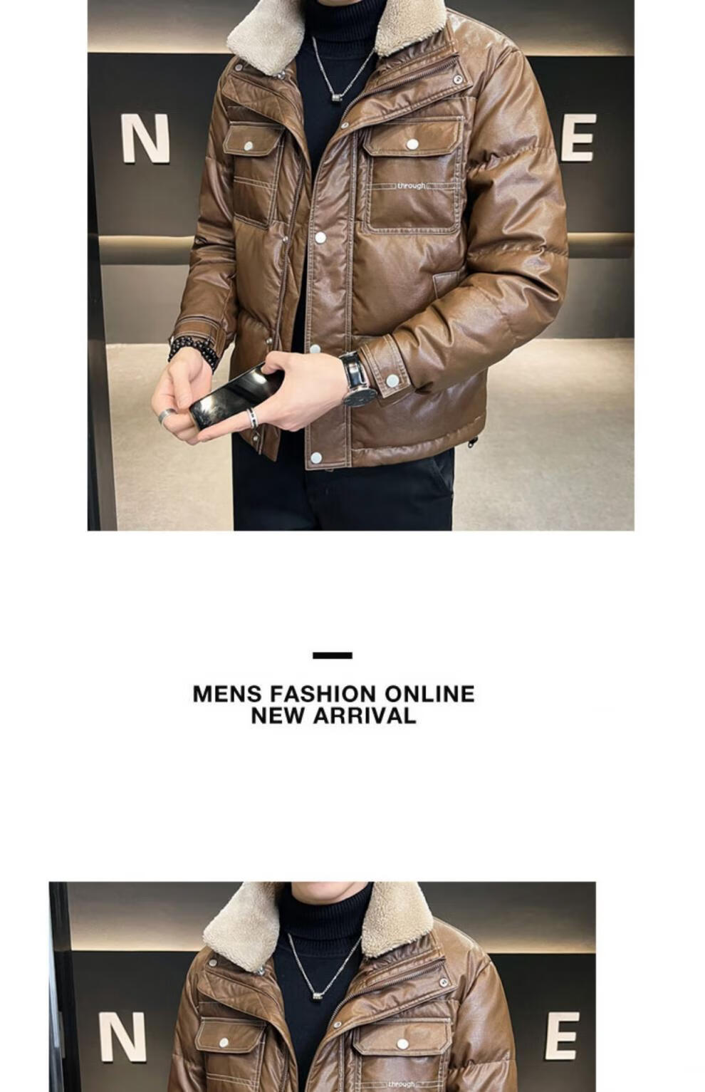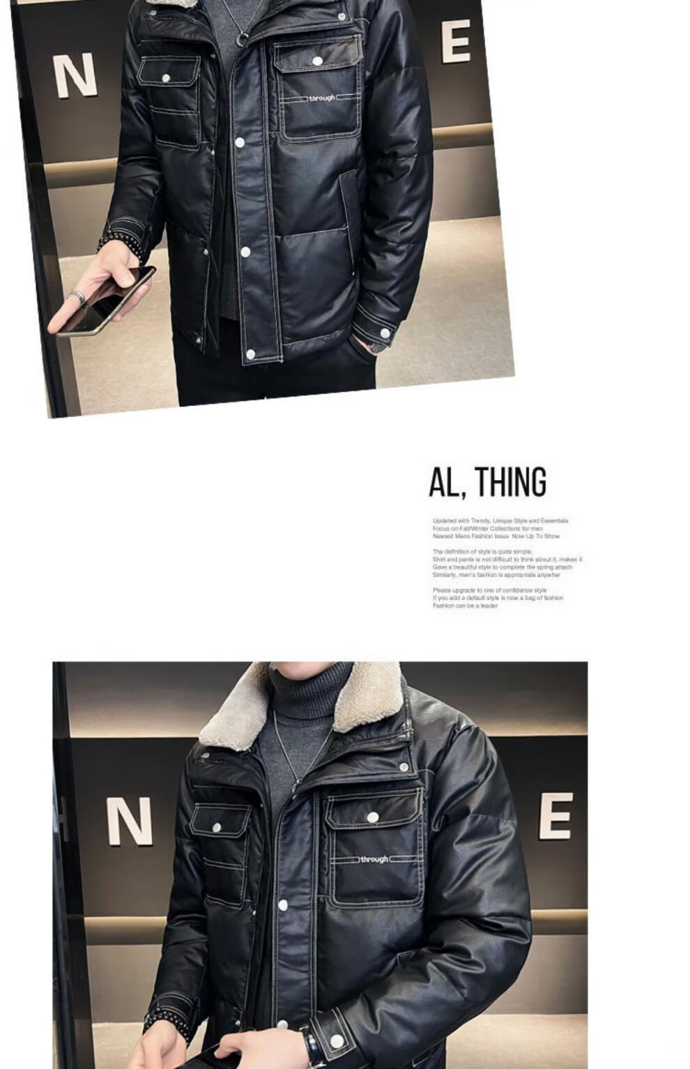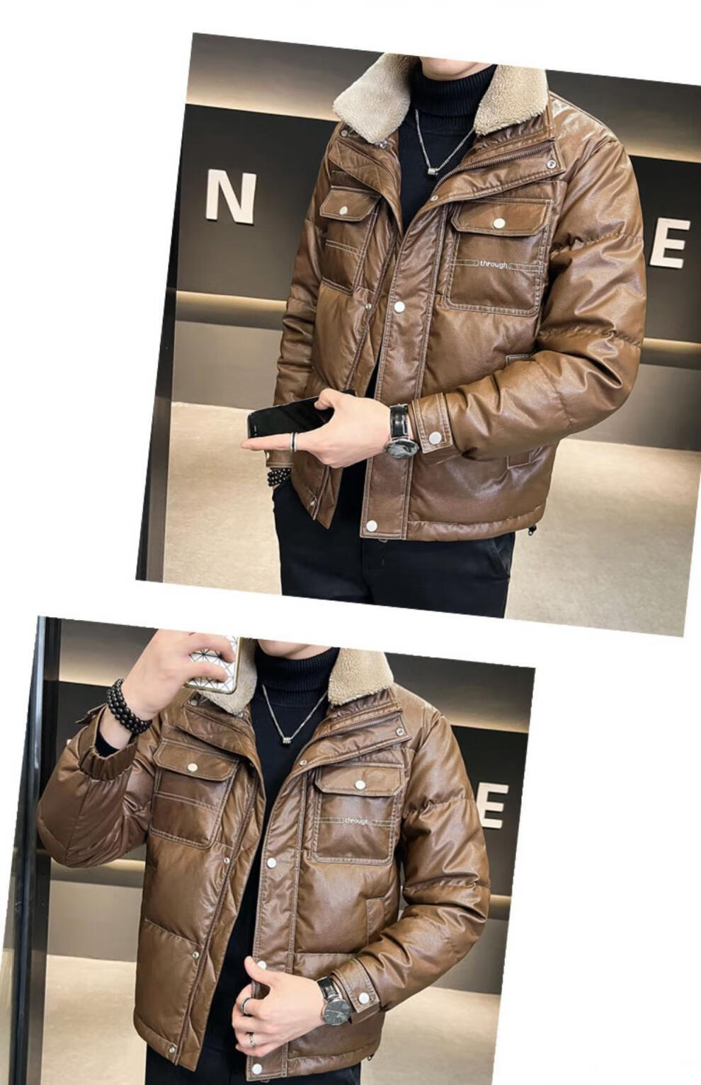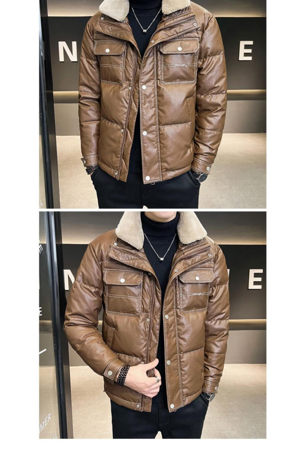 ROMON кожаный пуховик мужской зимний 2025 новый тонкий толстый красивый короткий воротник из овечьего меха мужская куртка черный L