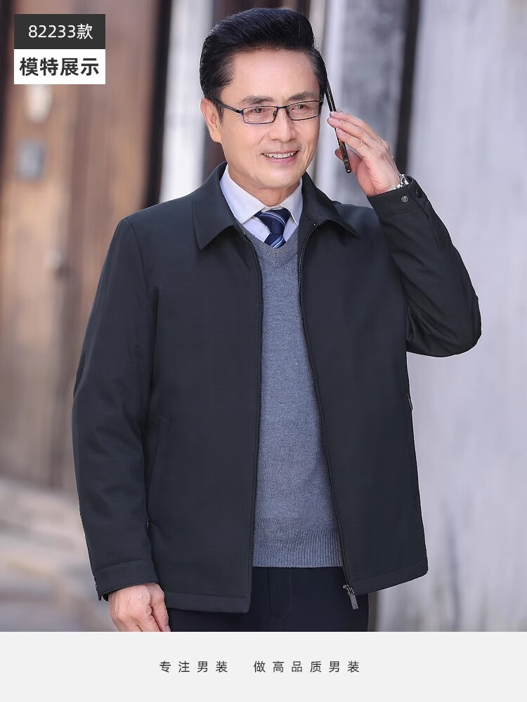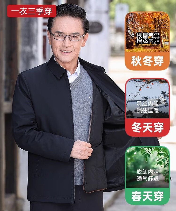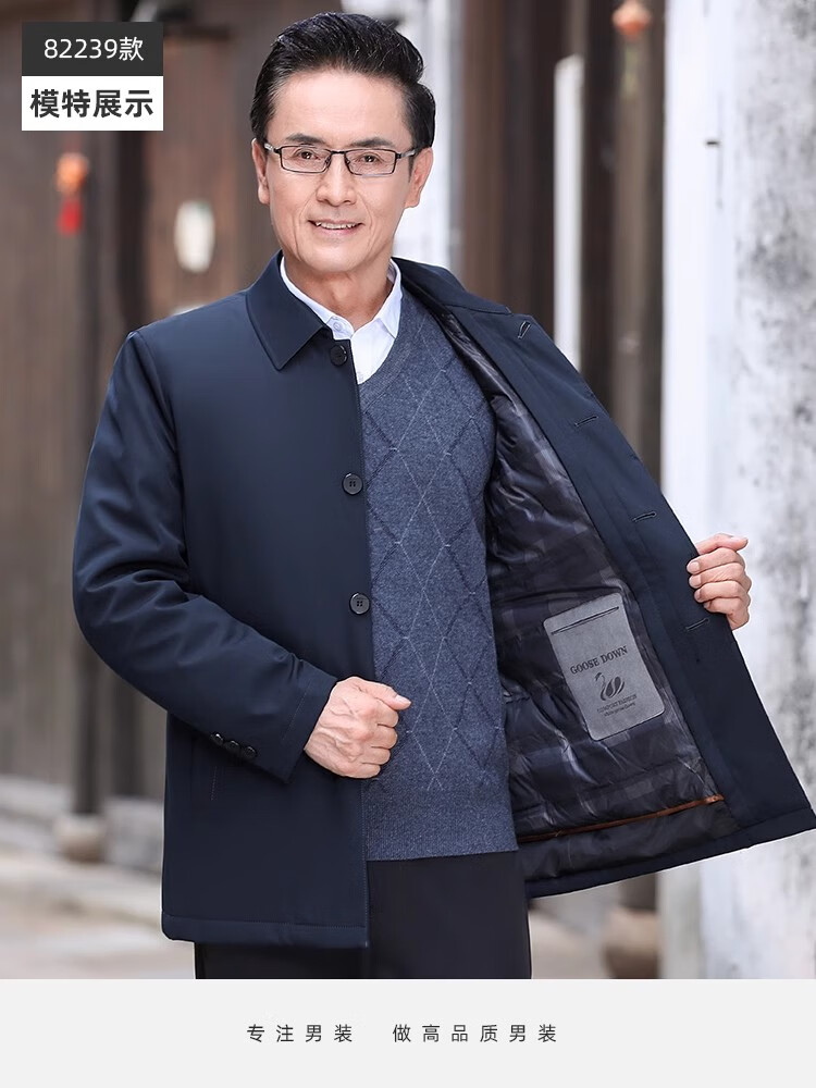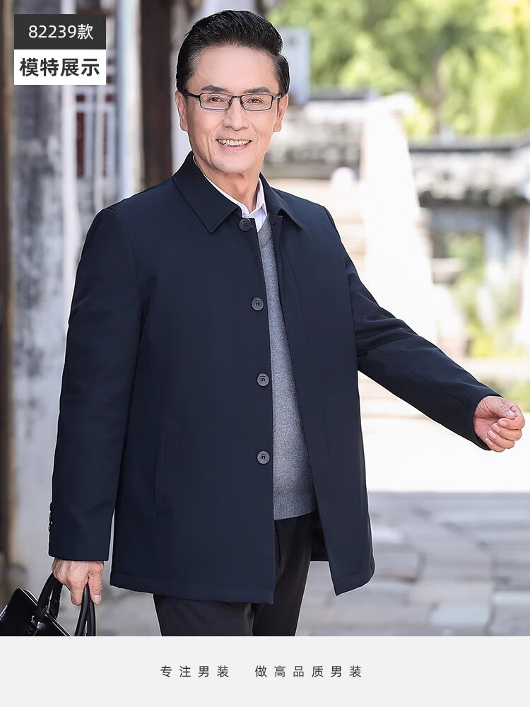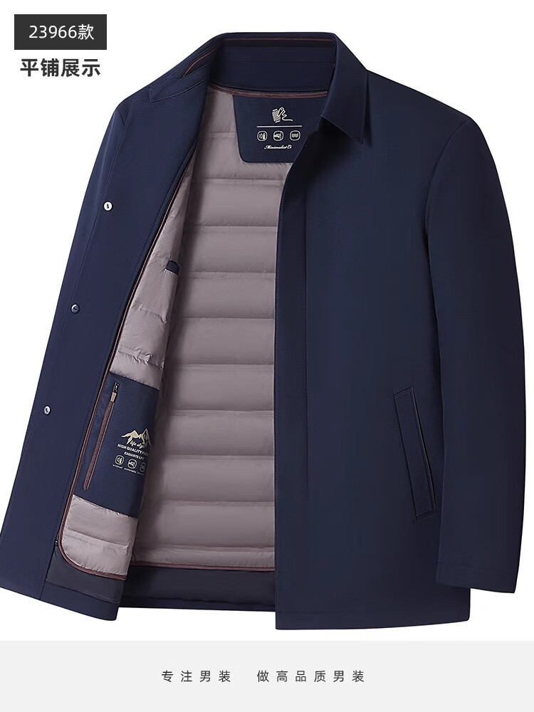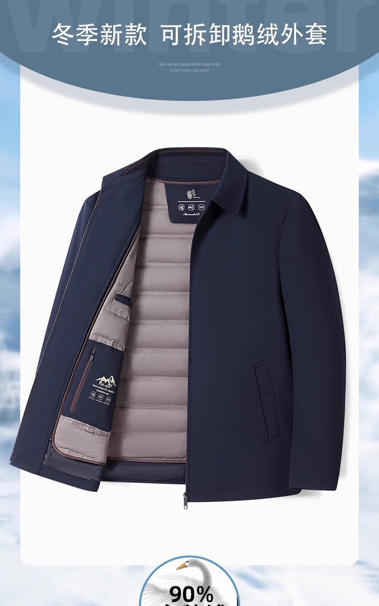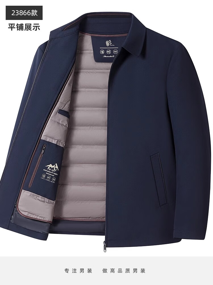 罗蒙(ROMON)中老年爸爸冬装轻薄翻领羽绒衣男士中年秋冬季加厚鹅绒外套 LYC-23866黑色【可拆内胆】 拉炼 炼 款 M 170/ 【90-120斤】