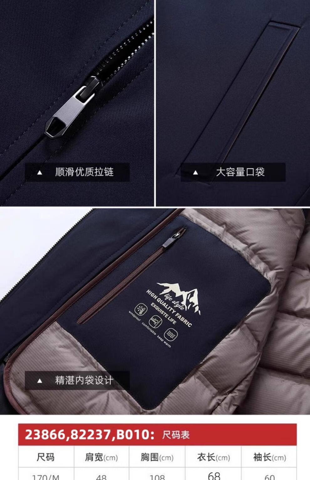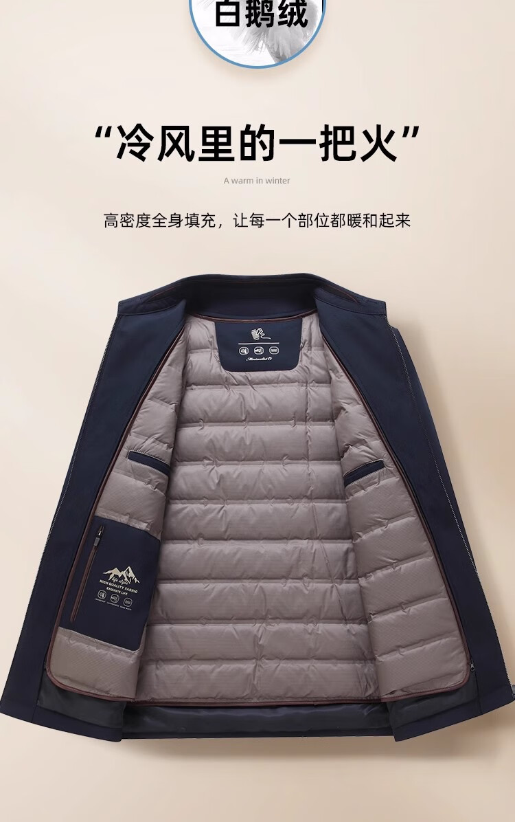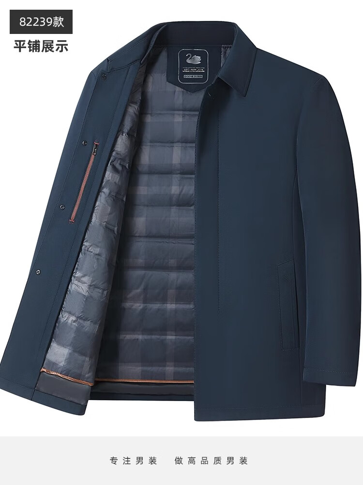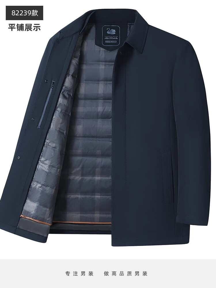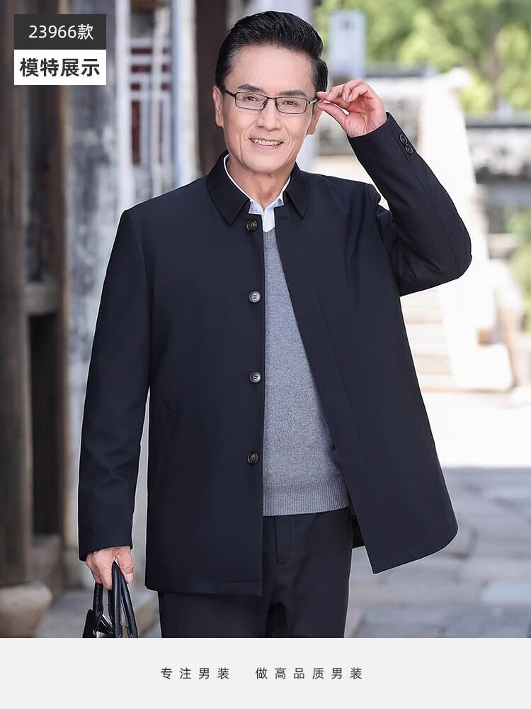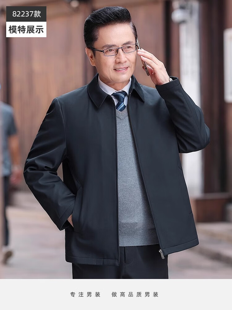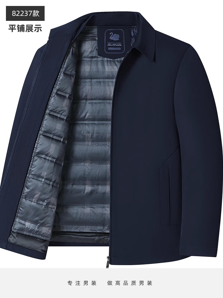 罗蒙(ROMON)中老年爸爸冬装轻薄翻领羽绒衣男士中年秋冬季加厚鹅绒外套 LYC-23866黑色【可拆内胆】 拉炼 炼 款 M 170/ 【90-120斤】