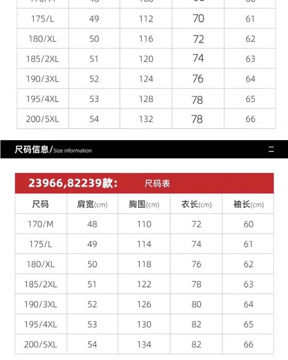 China (cm) 160-165/84-86 165-170 / 88-90 167-172 / 92-96 168-173 / 98-102 170-176 / 106-110