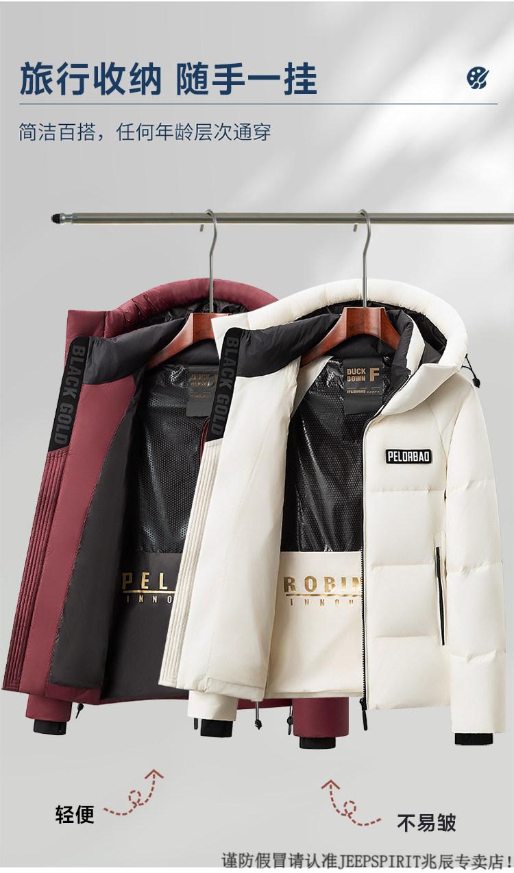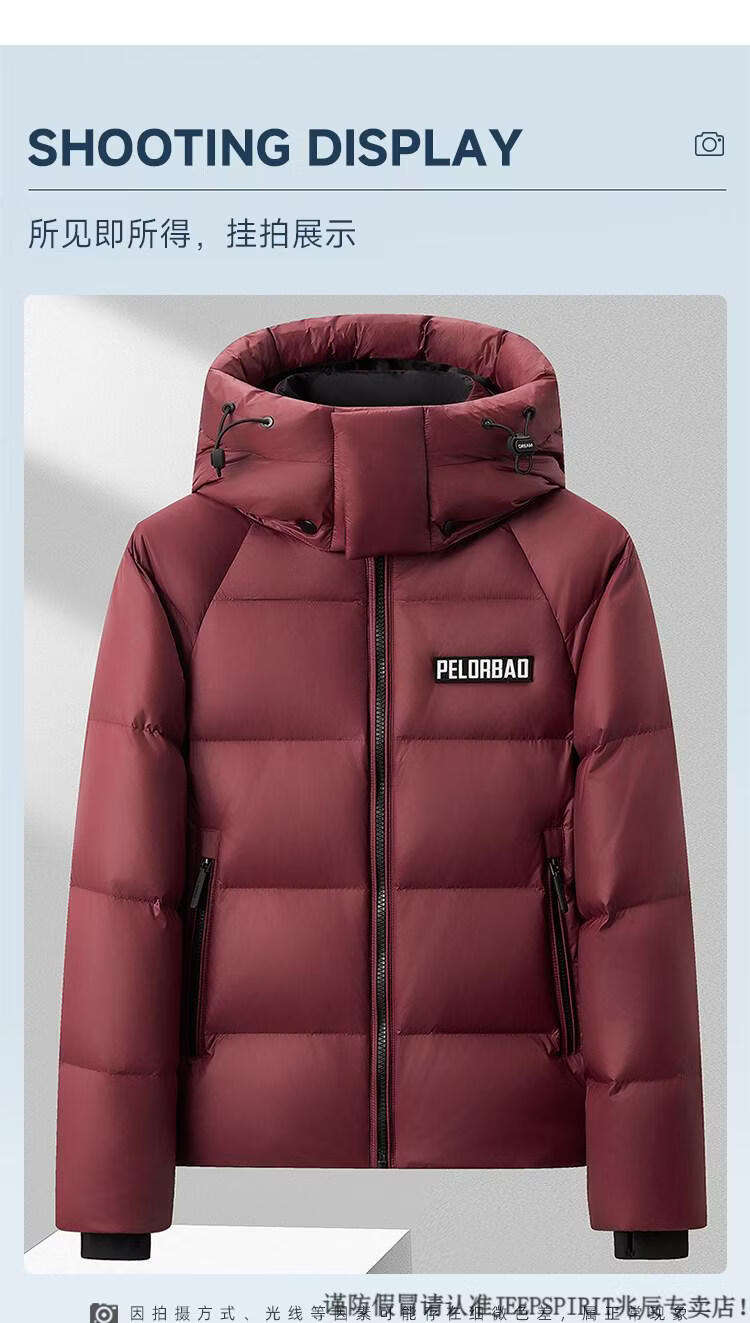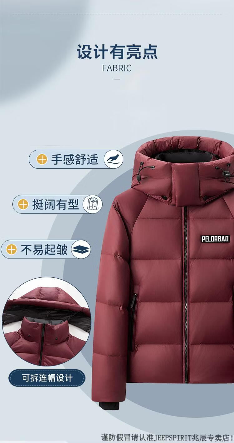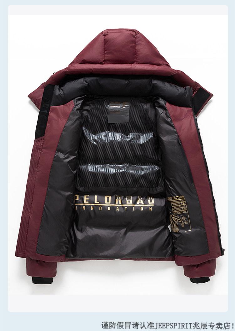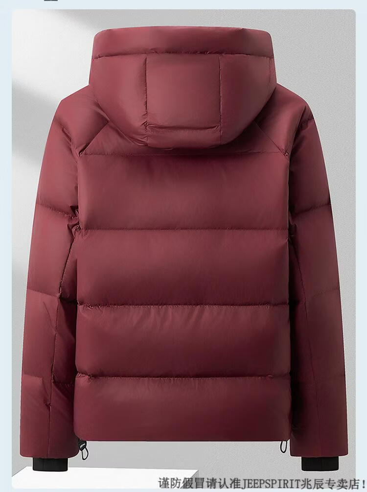 JEEP SPIRIT鹅绒羽绒服男冬季新款加厚短款连帽美式高充绒量青年面包服外套潮 红色 M 170