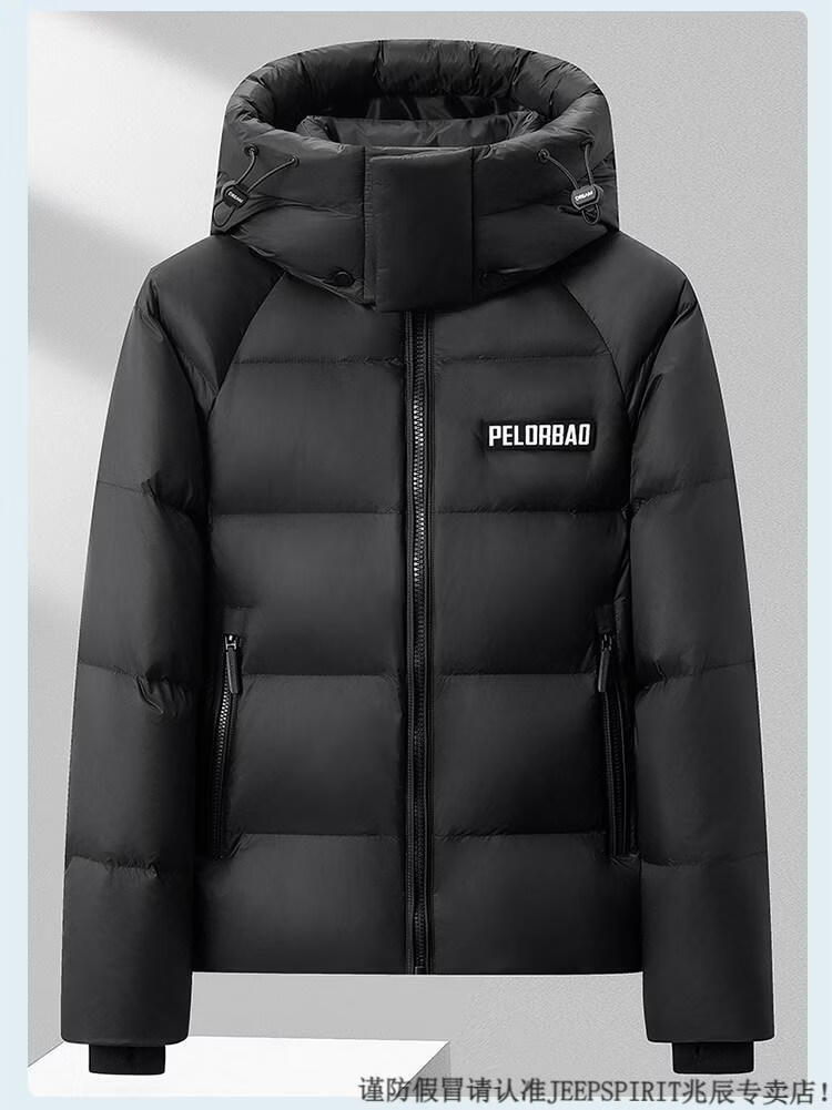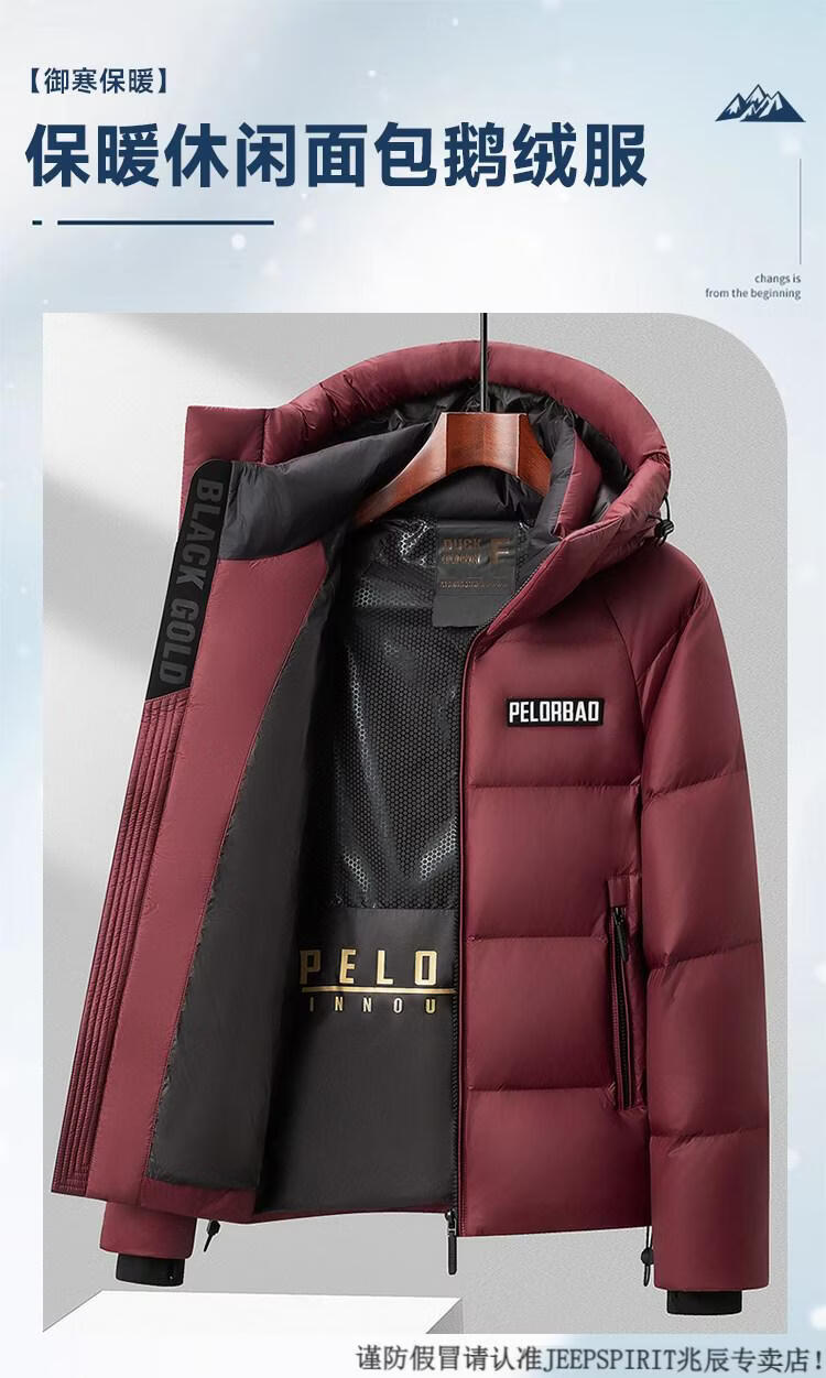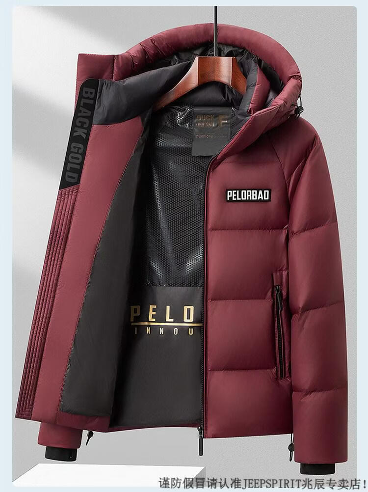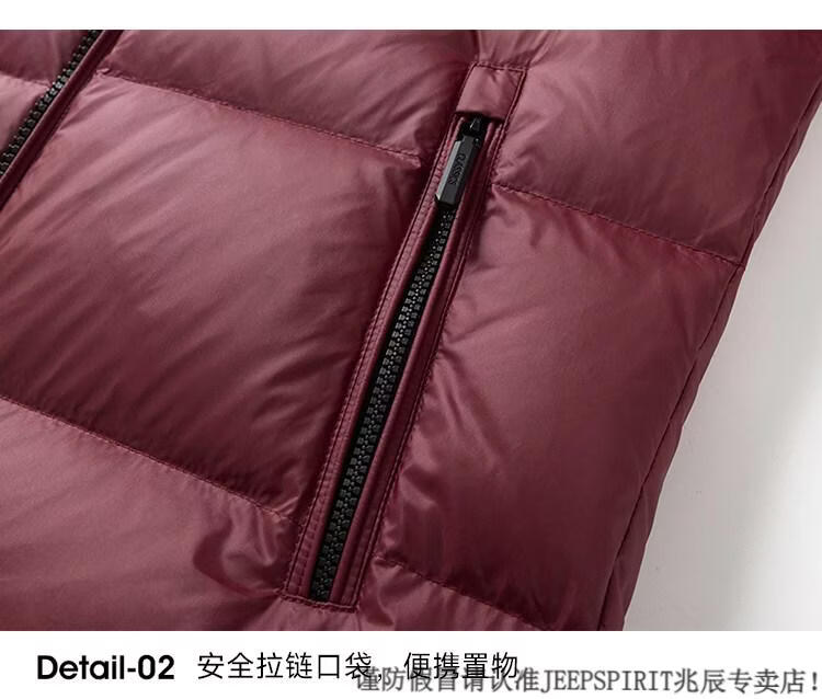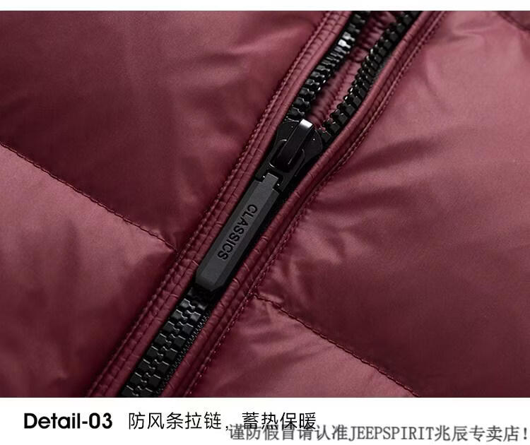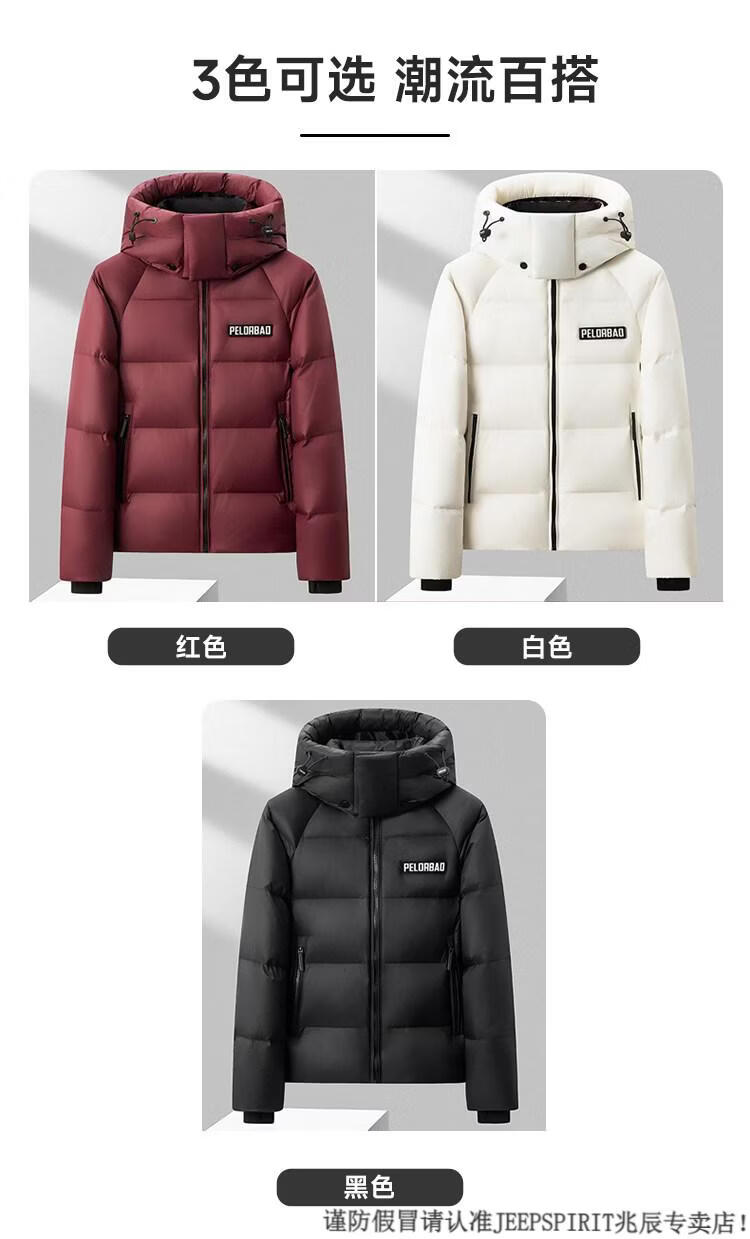 JEEP SPIRIT鹅绒羽绒服男冬季新款加厚短款连帽美式高充绒量青年面包服外套潮 红色 M 170