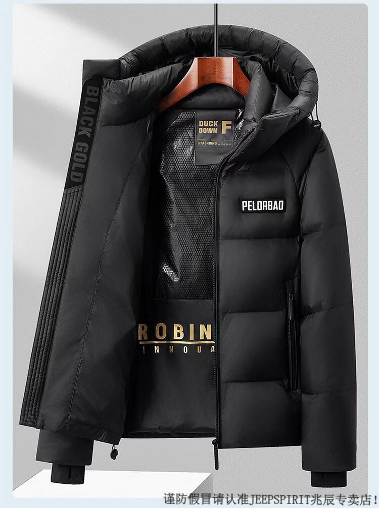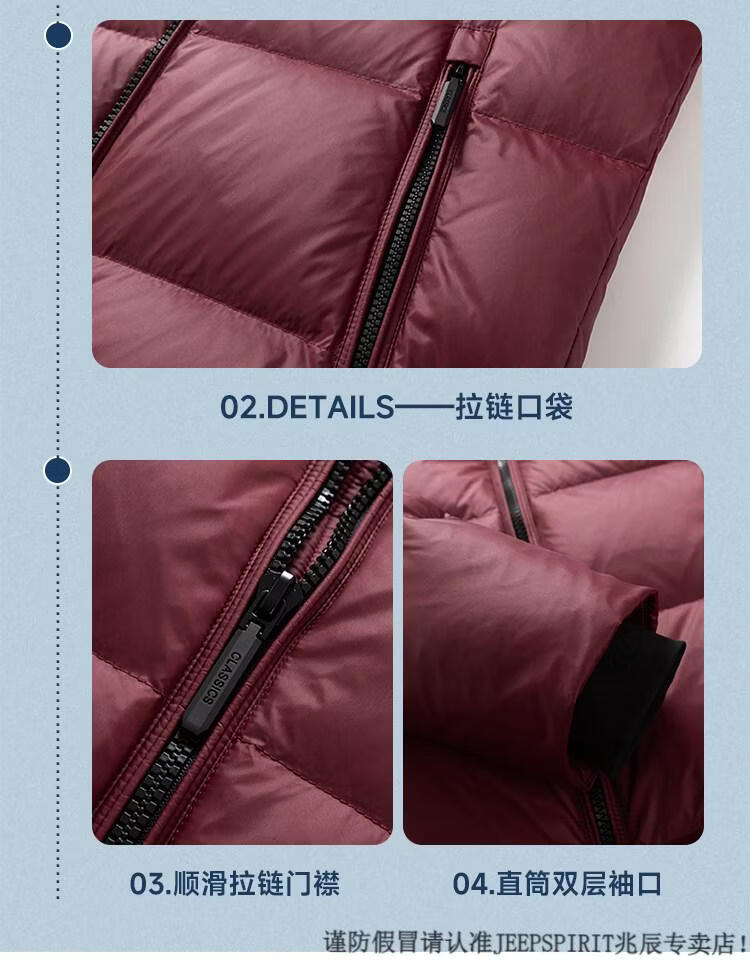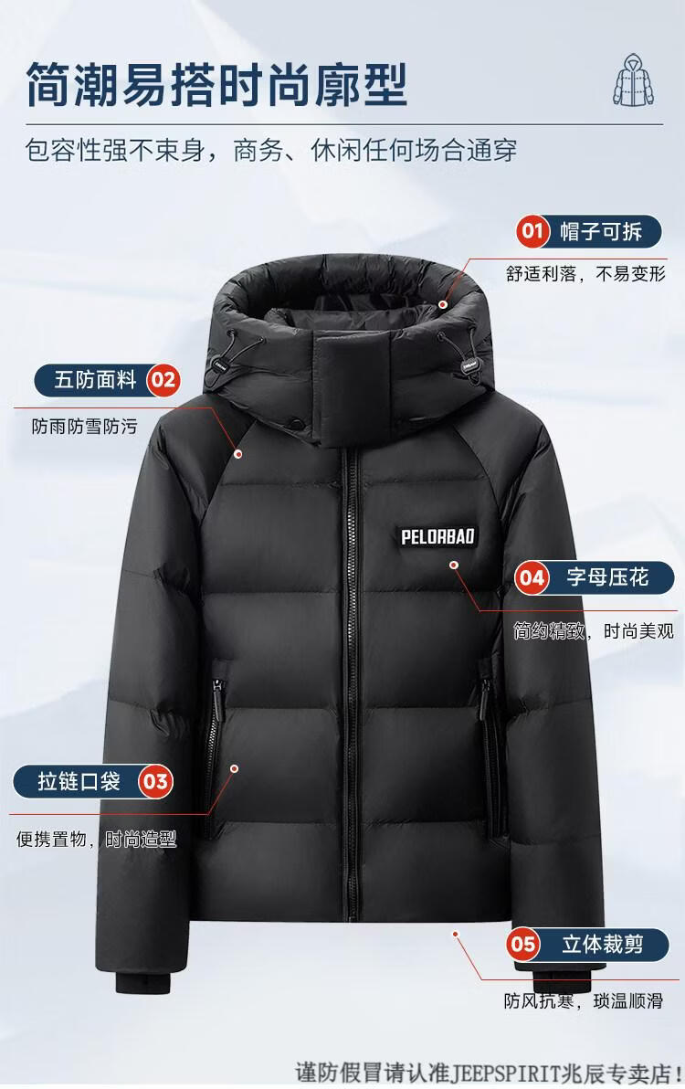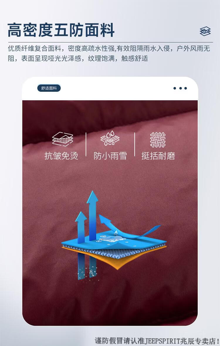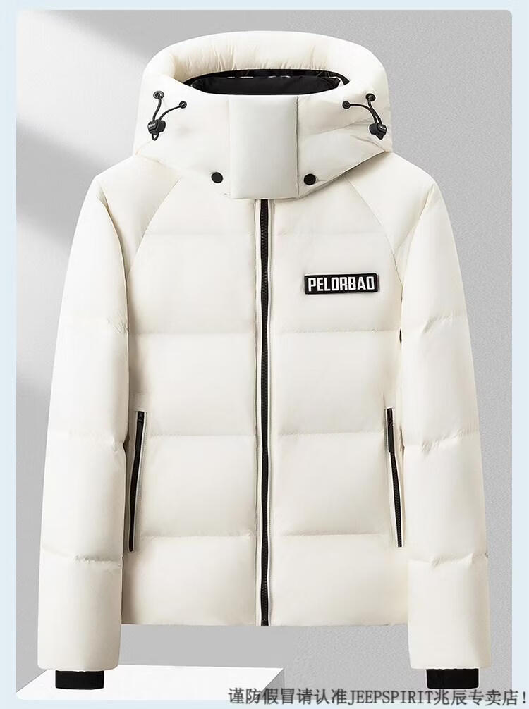 JEEP SPIRIT鹅绒羽绒服男冬季新款加厚短款连帽美式高充绒量青年面包服外套潮 红色 M 170