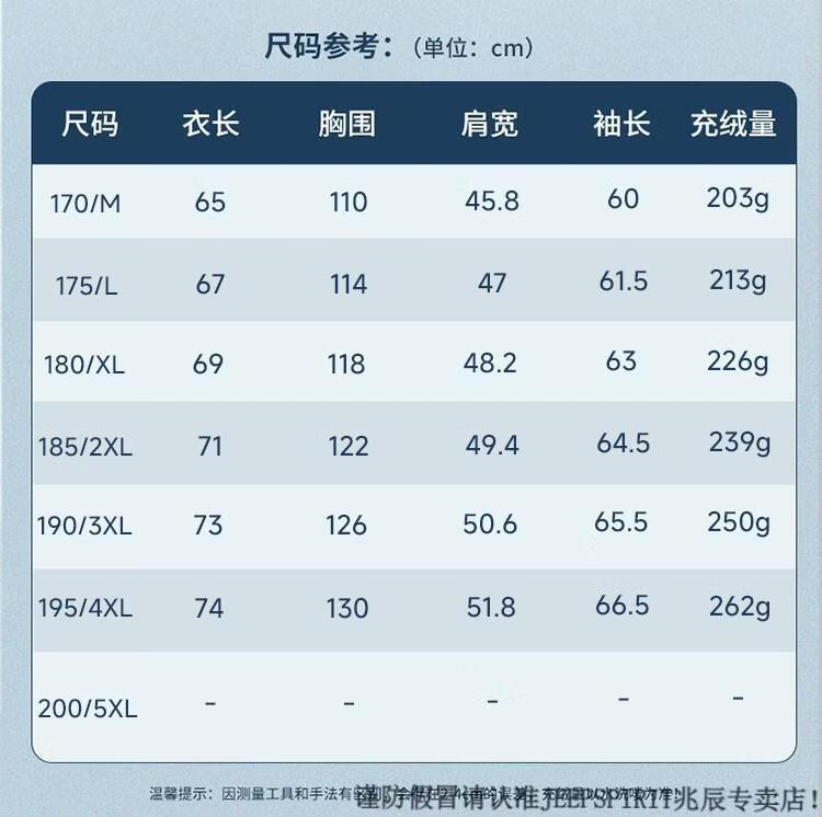 China (cm) 165 / 88-90 170 / 96-98 175 / 108-110 180 / 118-122 185 / 126-130