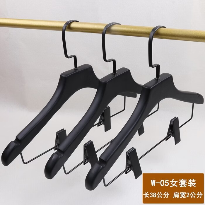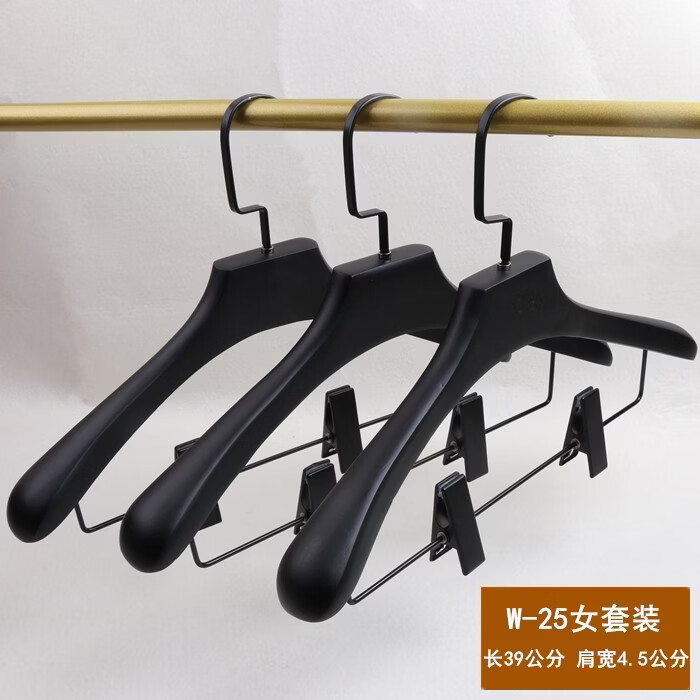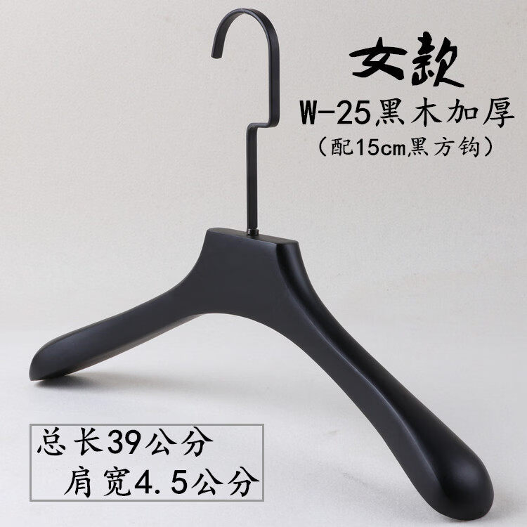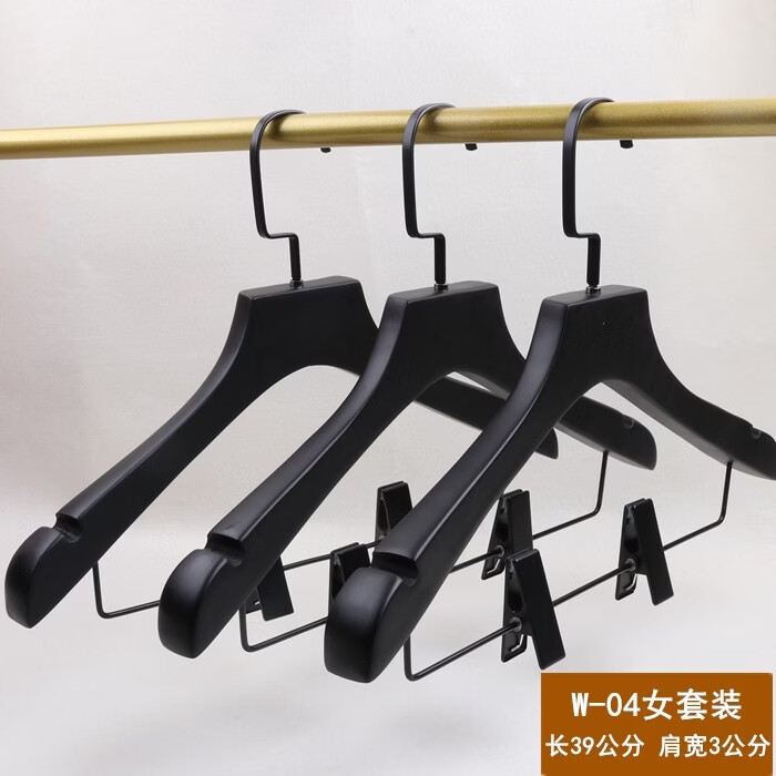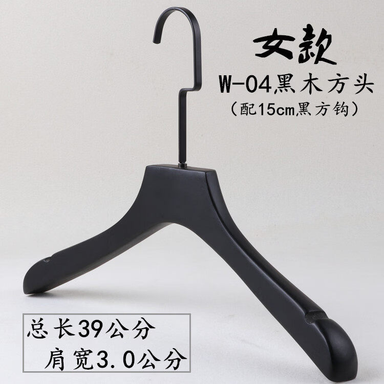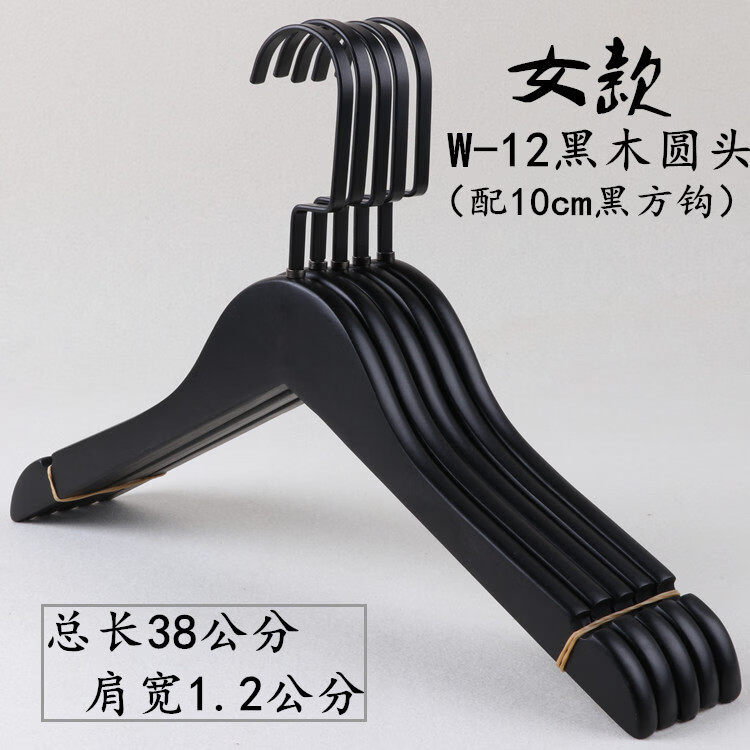 Shantou Lincun Clothing Store Men's and Women's Non-Slip Wooden Clothes Support Trouser Clips Custom Wedding Dress Wholesale Black Solid Wood Clothes Hanger Black_W-04 Women's Black Wood 1 pc