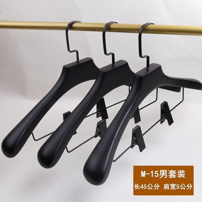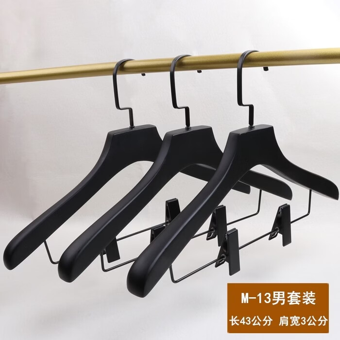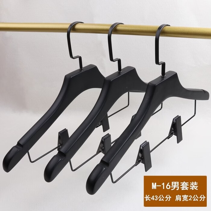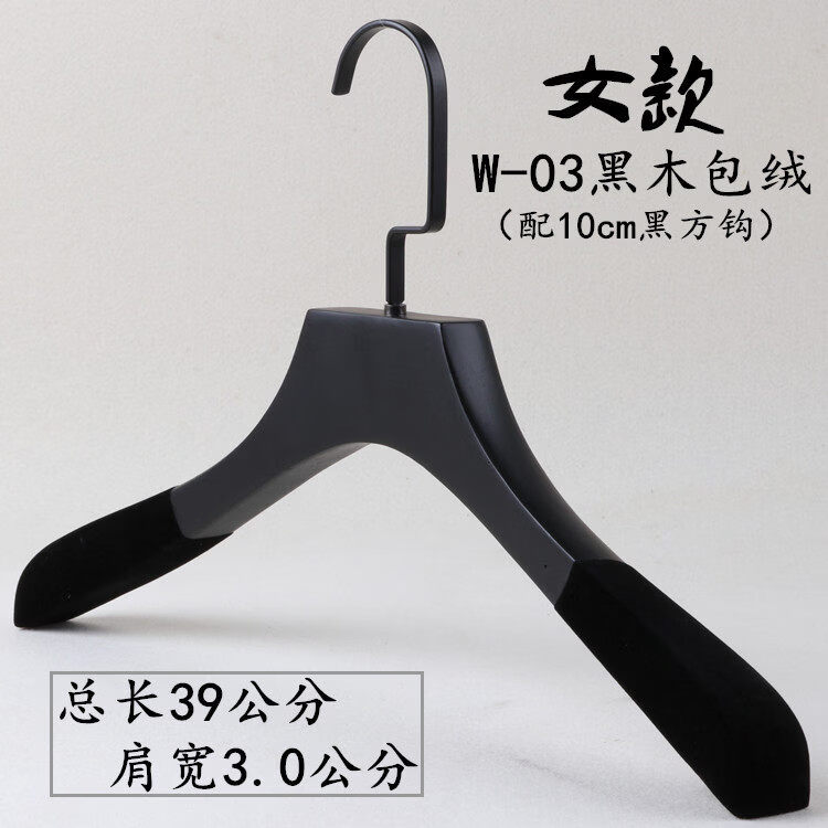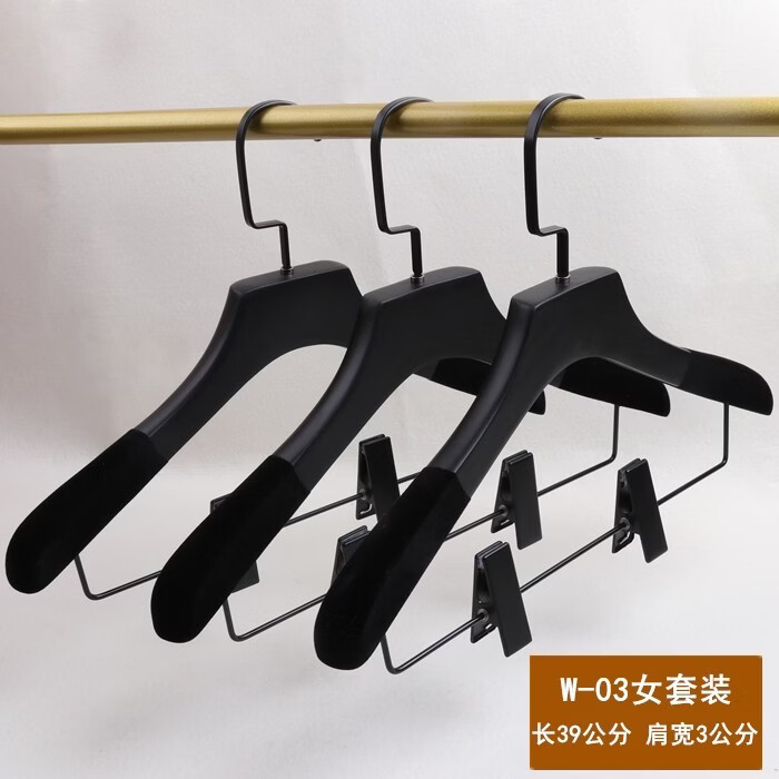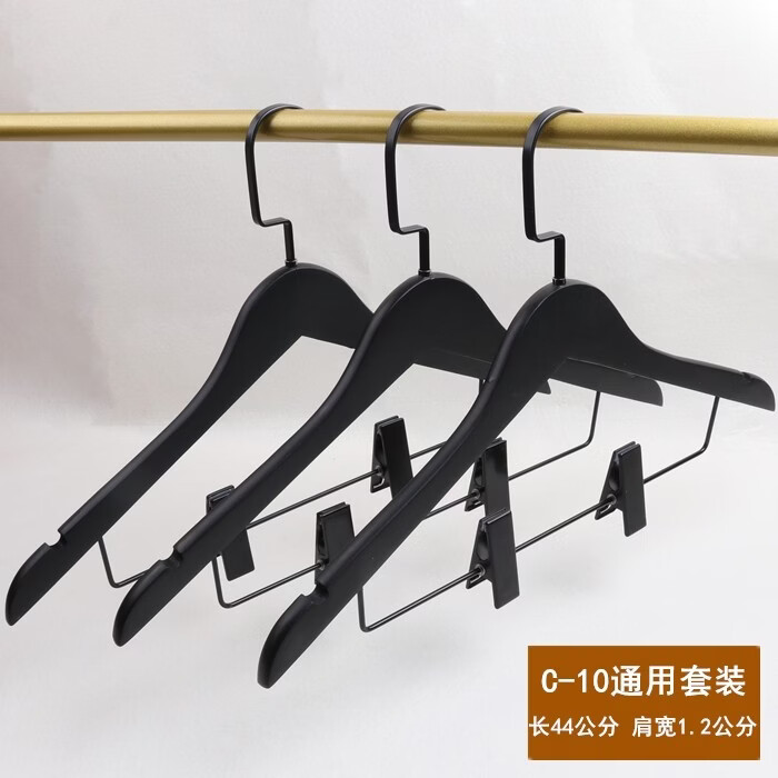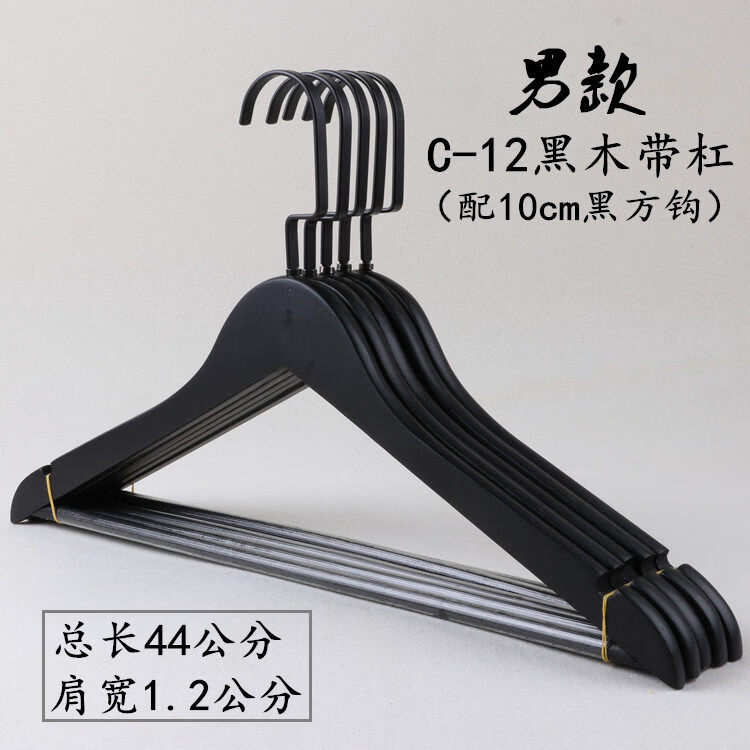 Shantou Lincun Clothing Store Men's and Women's Non-Slip Wooden Clothes Support Trouser Clips Custom Wedding Dress Wholesale Black Solid Wood Clothes Hanger Black_W-04 Women's Black Wood 1 pc