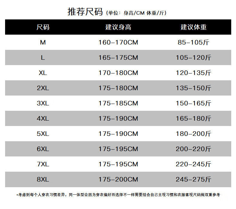 China (cm) 160-165/84-86 165-170 / 88-90 167-172 / 92-96 168-173 / 98-102 170-176 / 106-110