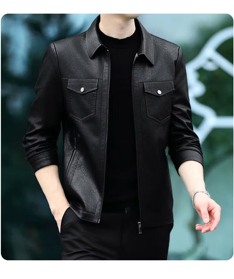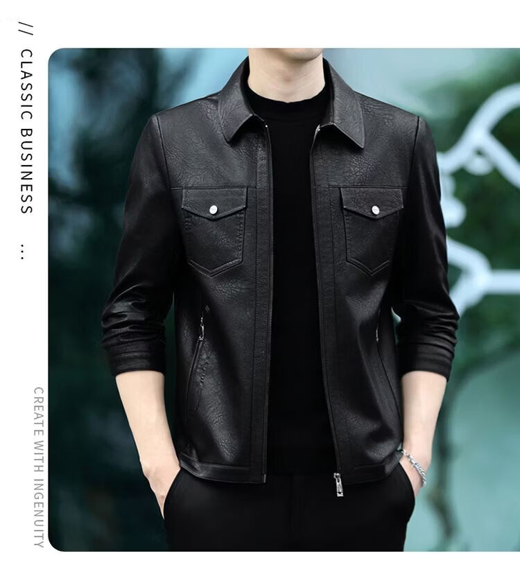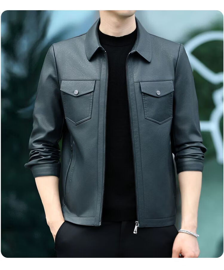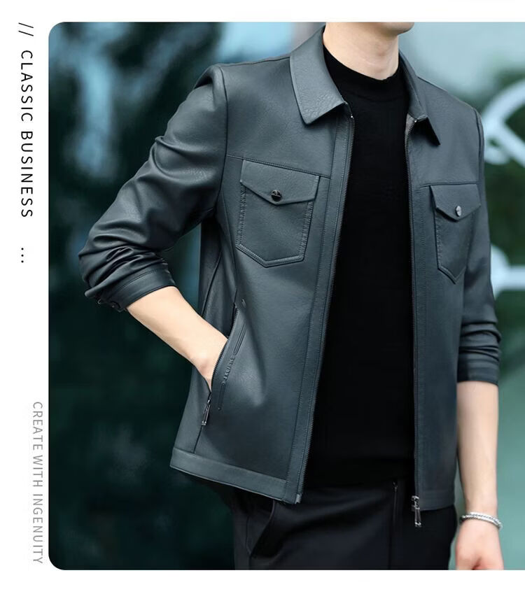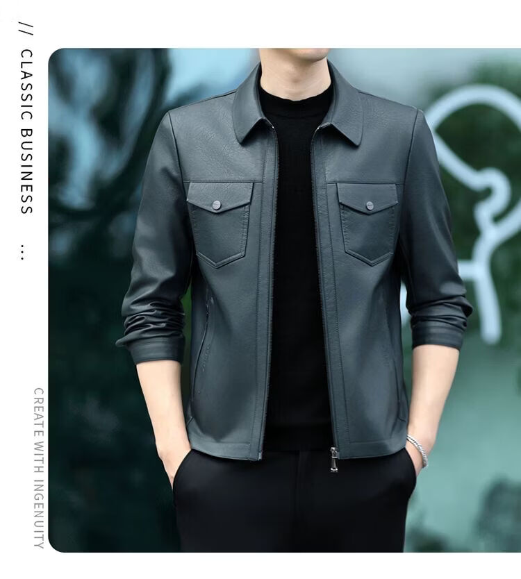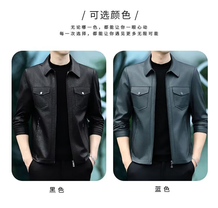 JEEP SPIRIT海宁真皮皮衣男翻领皮夹克春秋冬季休闲短款薄款加厚纯皮外套 蓝色【春秋】 薄款 4XL 195(175-190斤)