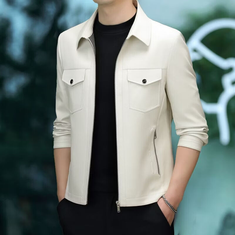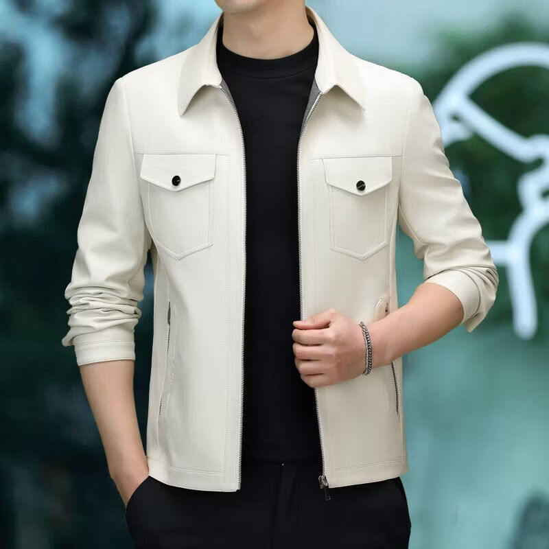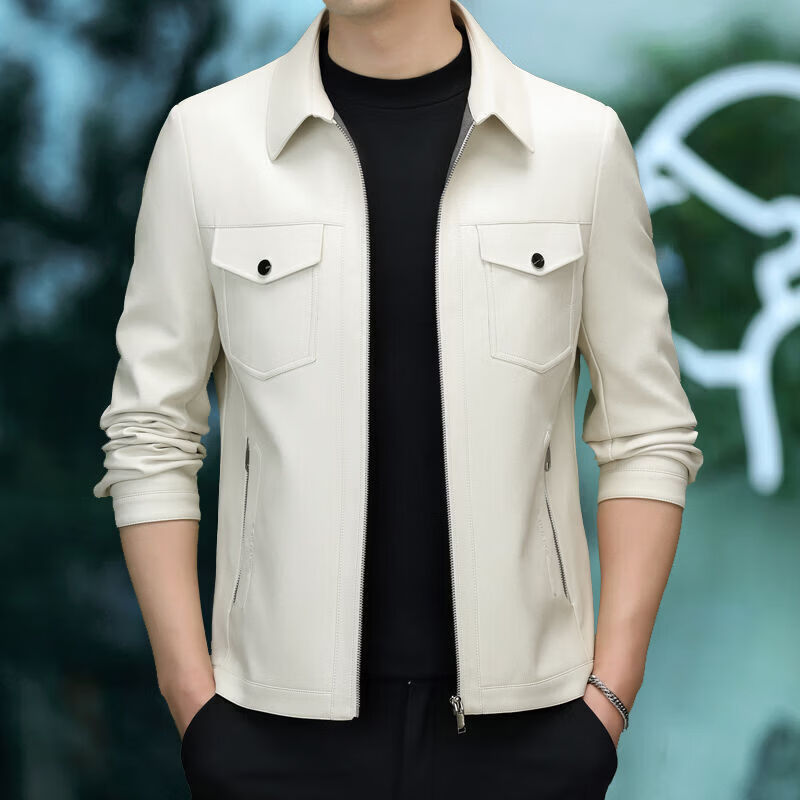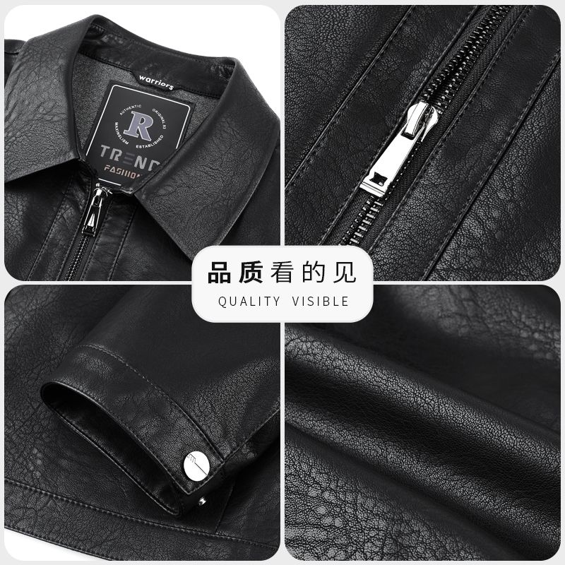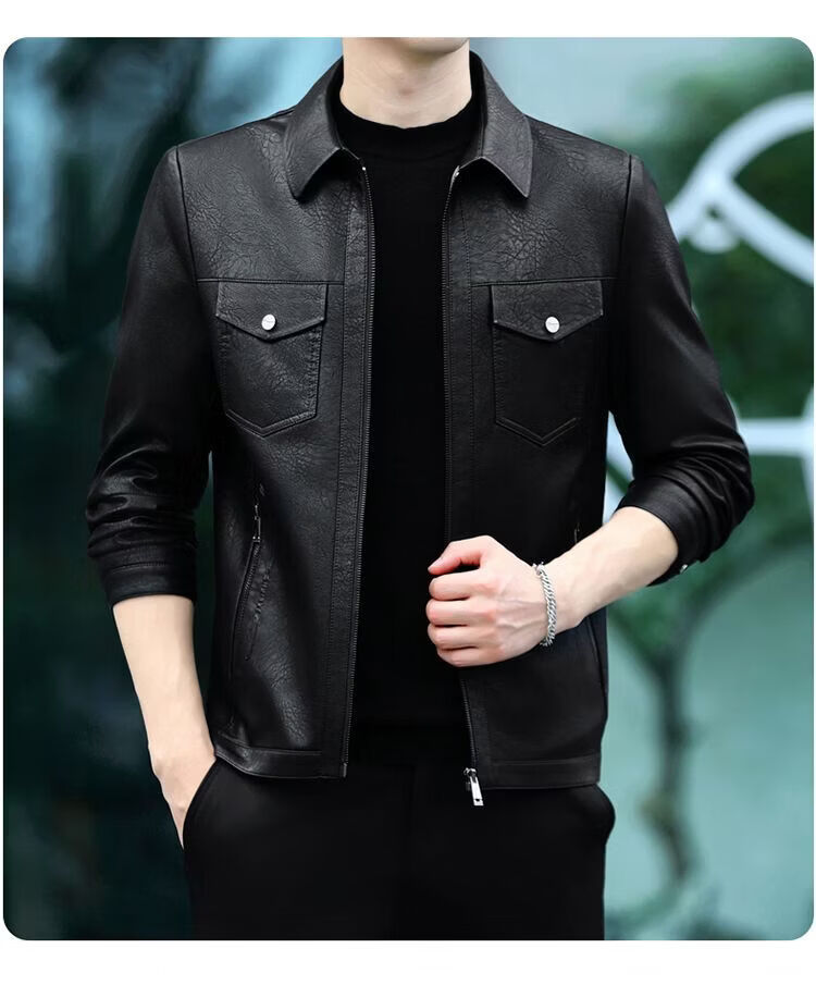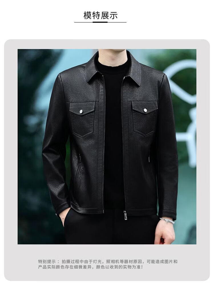 JEEP SPIRIT海宁真皮皮衣男翻领皮夹克春秋冬季休闲短款薄款加厚纯皮外套 蓝色【春秋】 薄款 4XL 195(175-190斤)