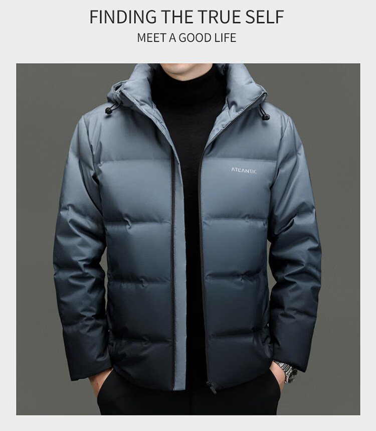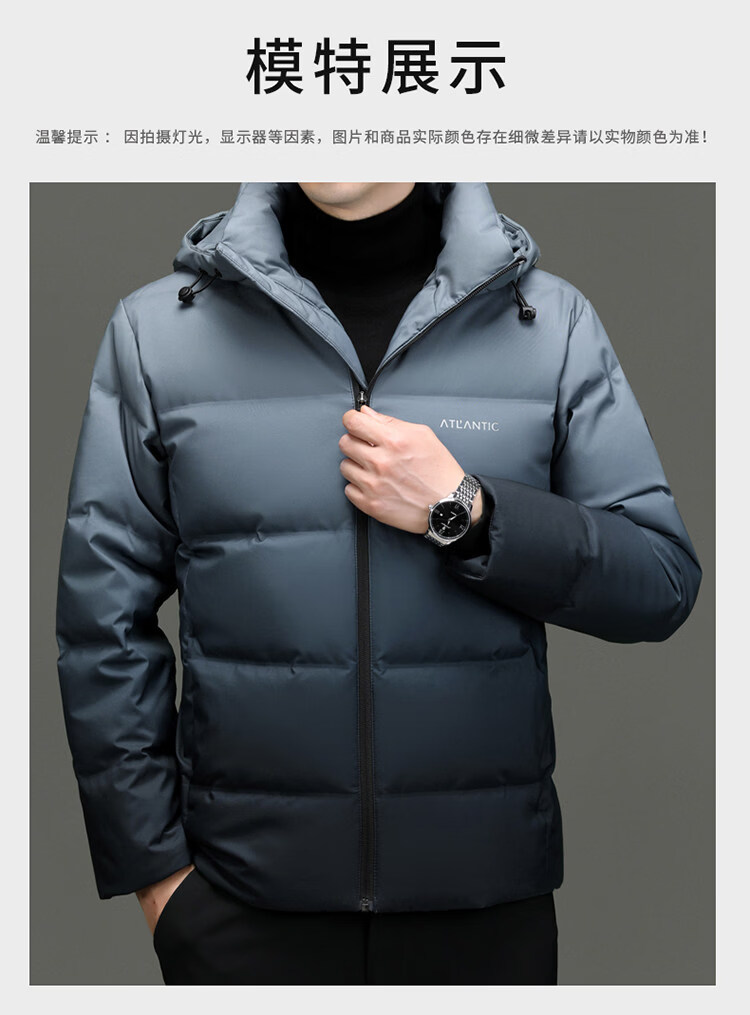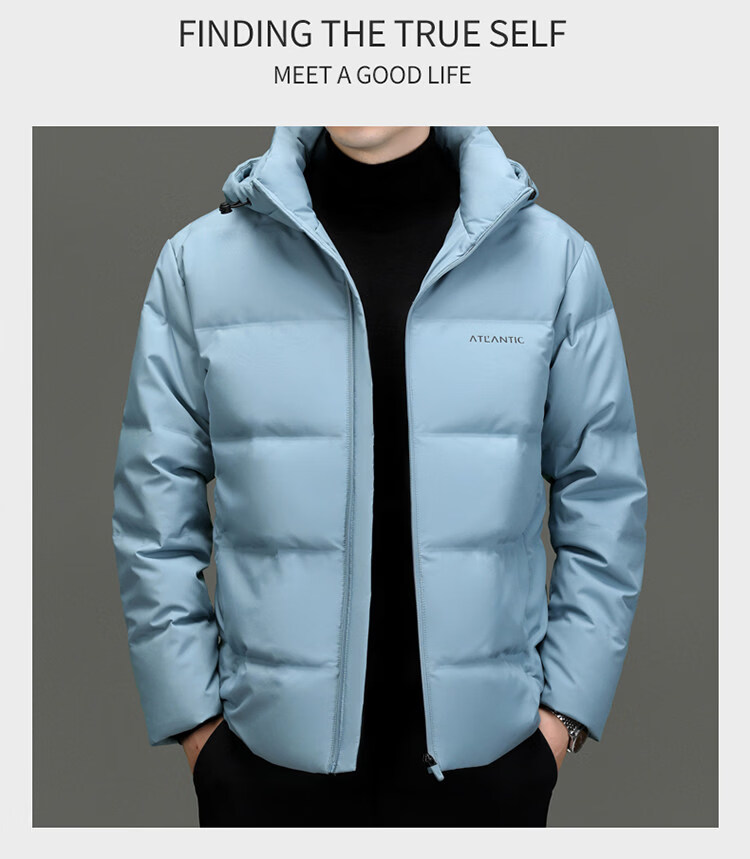 利郎(LILANZ)高端新款冬季羽绒服男90%鹅绒连帽可脱卸帽加厚保暖外套高档男装 浅蓝色 M 170【建议90-115斤】